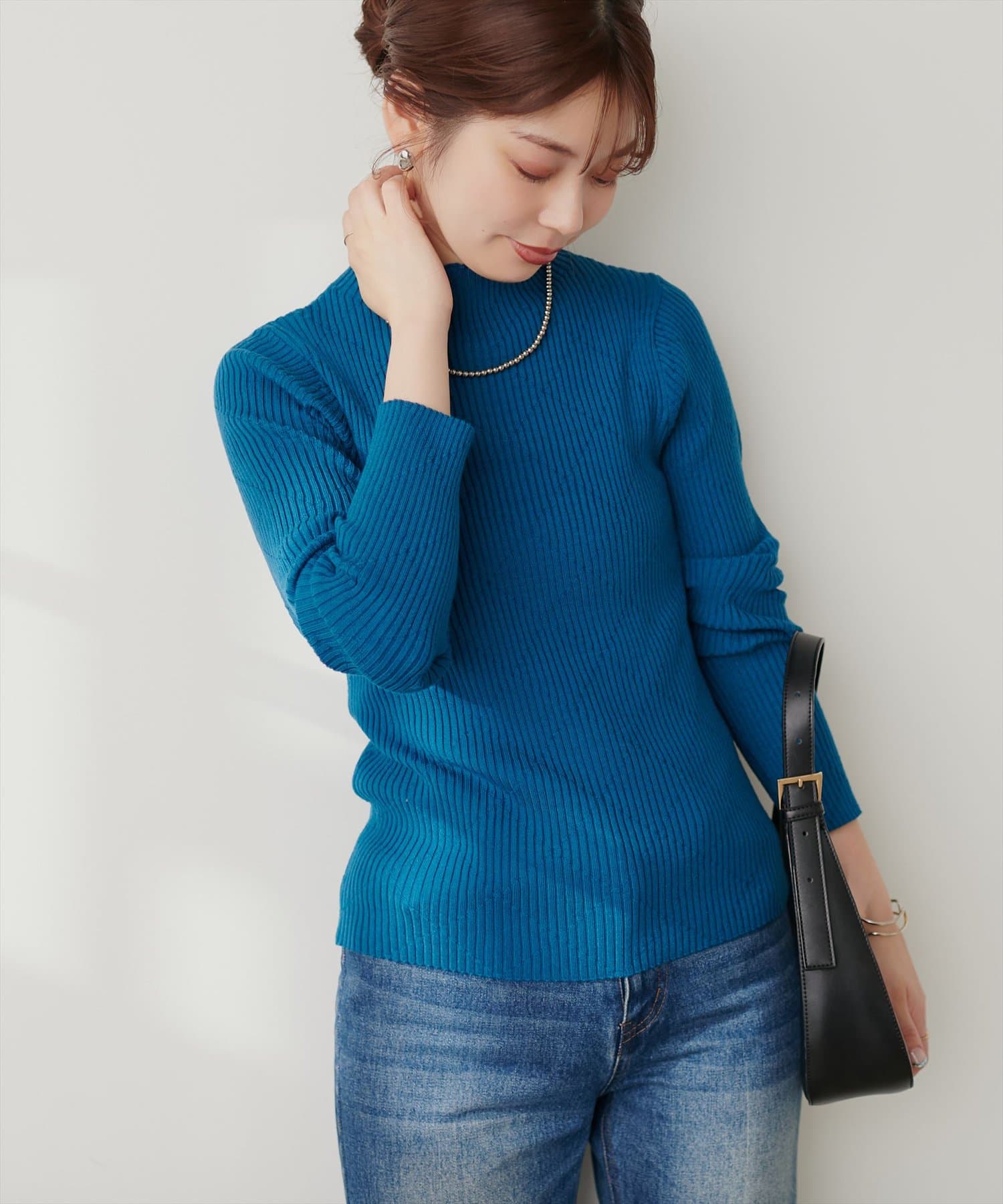 • natural couture(ナチュラルクチュール) ダイヤ柄プチハイリブニット