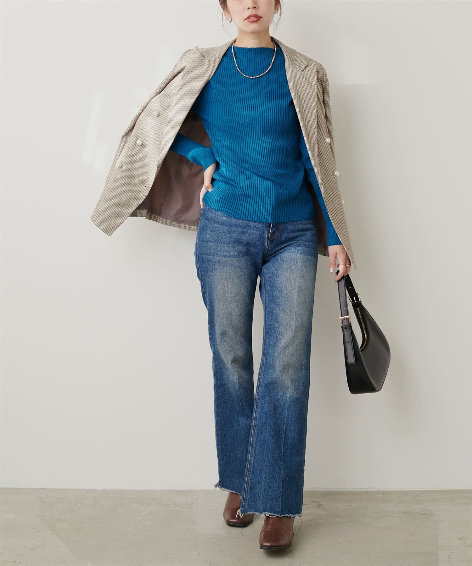 シンプルなデザインなので、ボトムスのテイストを選ばず着回しできます。