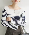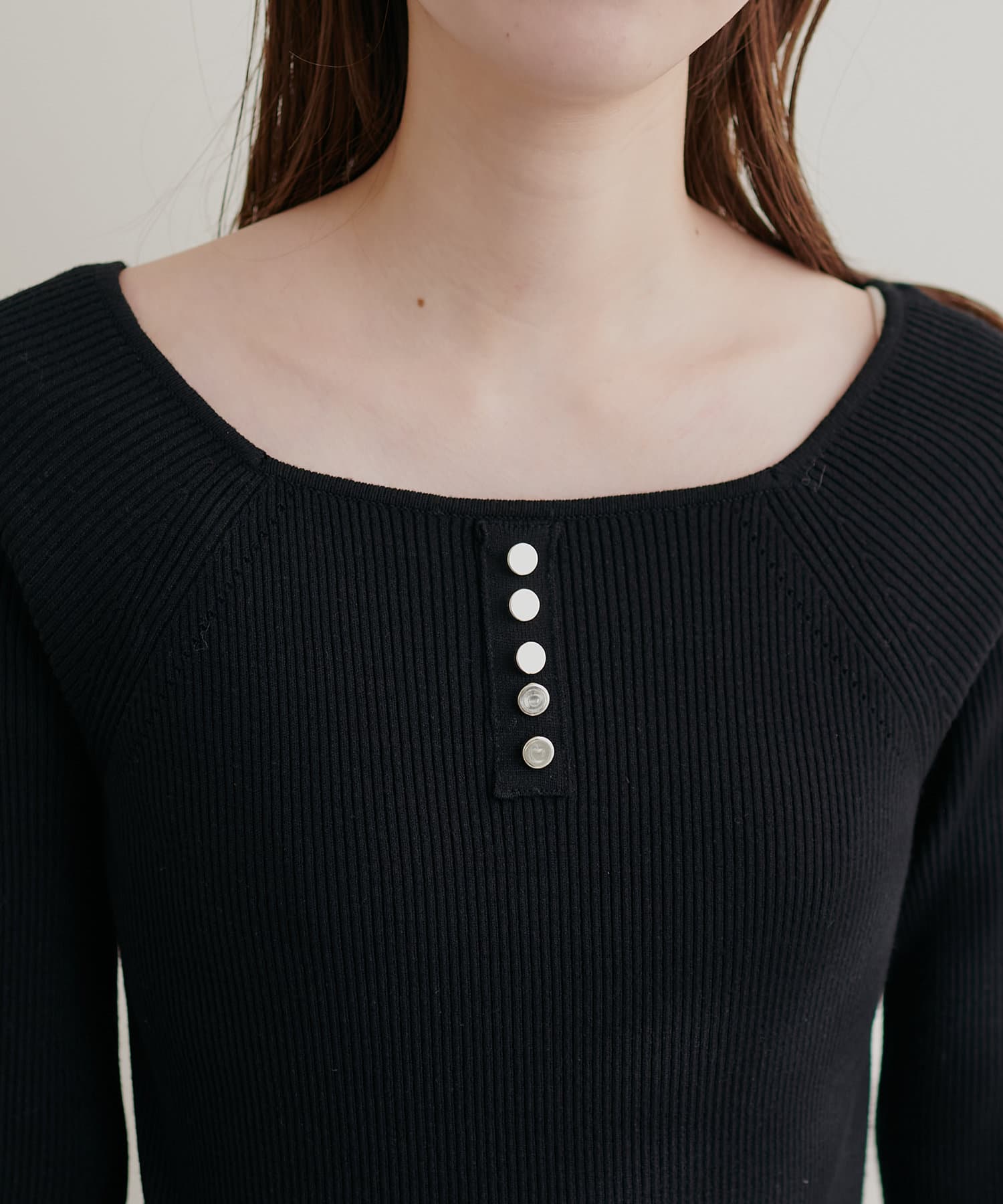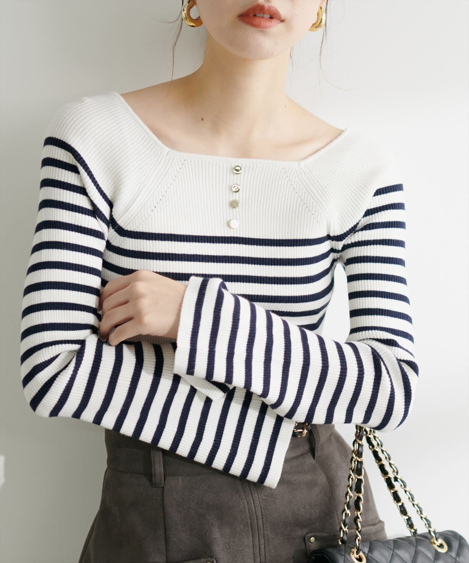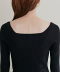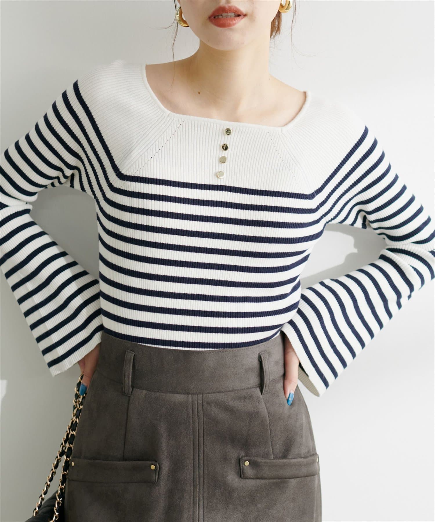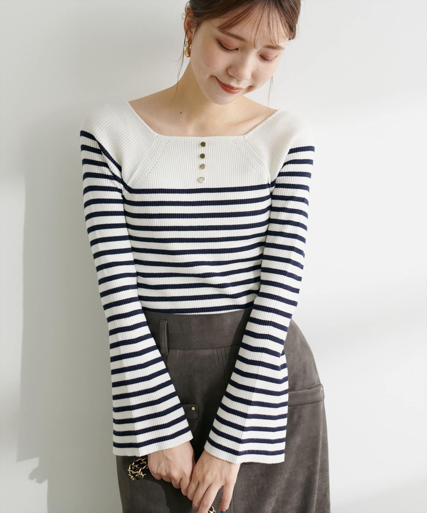 袖のデザインがポイントのオンオフ着回せるスクエアネックニット