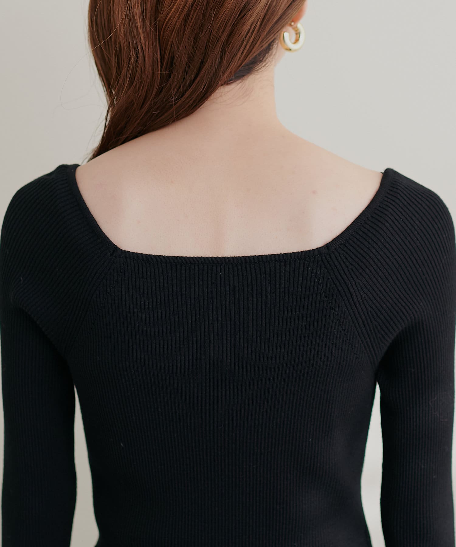 スクエアネックは、デコルテの抜け感が生まれるのですっきり着ていただけて女性らしい程よい肌見せに◎
