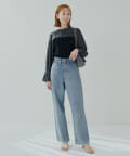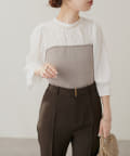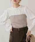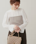 ブラウス部分のややとろみがかった生地とビスチェ部分のハイゲージニットになっている素材感の違いが高見えします。