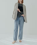 定番のデニムにインしてカジュアルダウンしたコーデも素敵です。