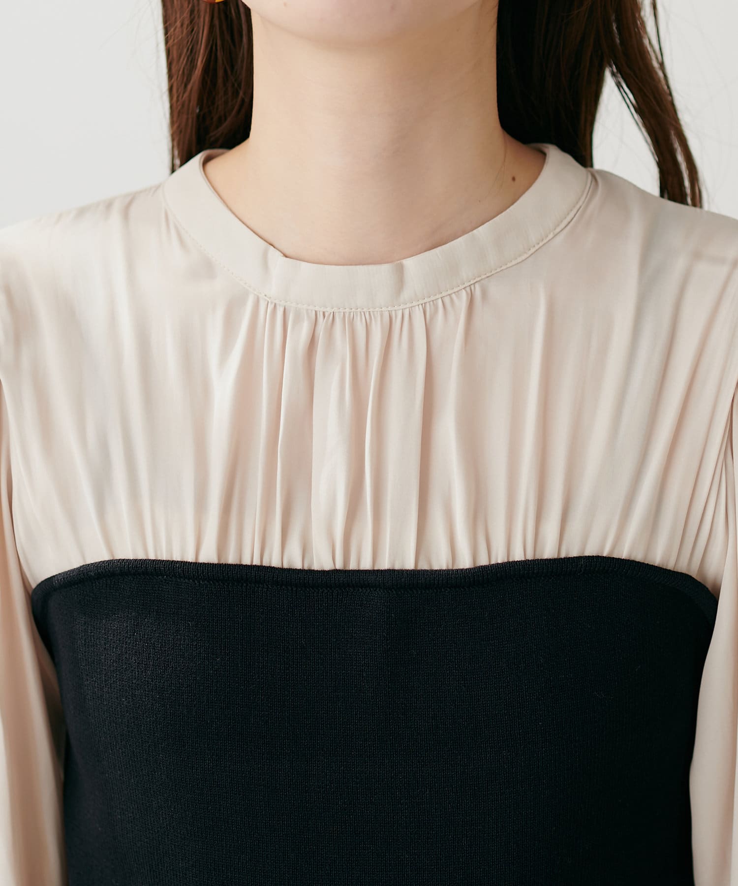 生地感:ニット部分はやや厚手、ブラウス部分はなめらか