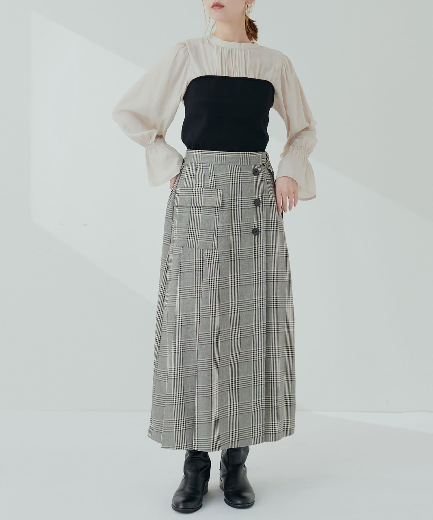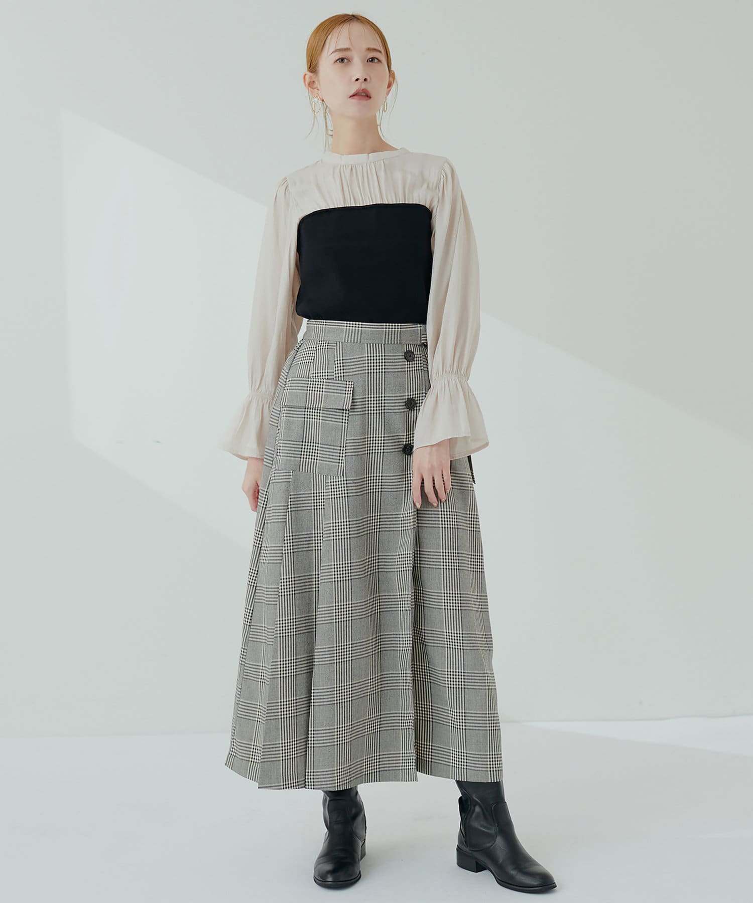 ボトムを選ばない万能なトップスですが、フェミニンな印象がお好きならスイートなロングスカート合わせがおすすめ◎