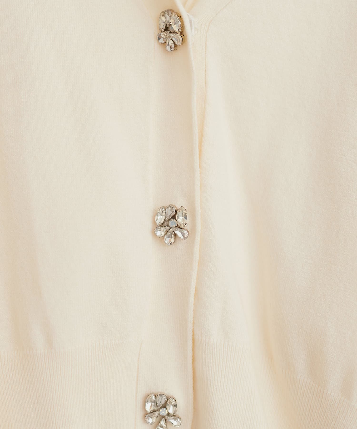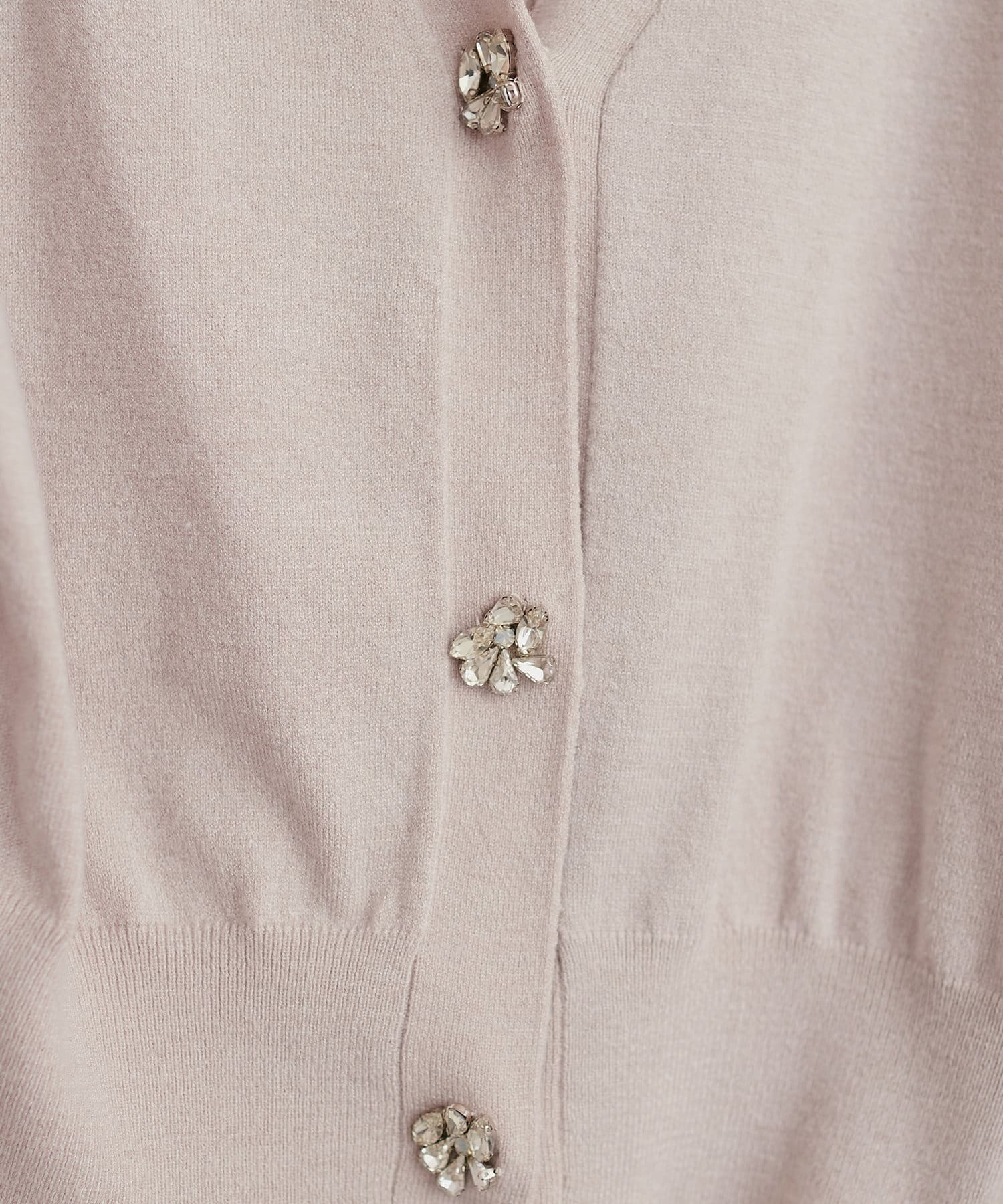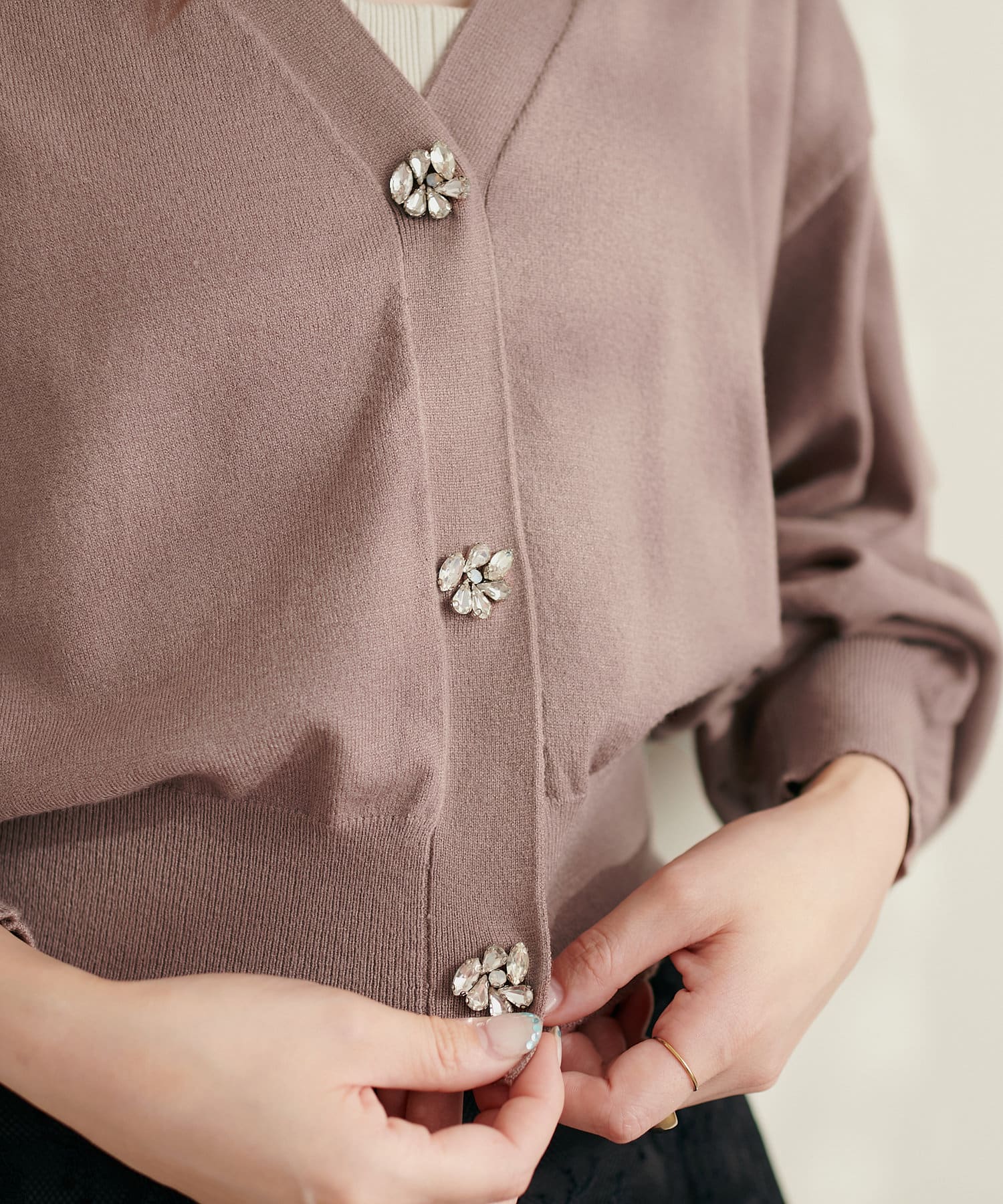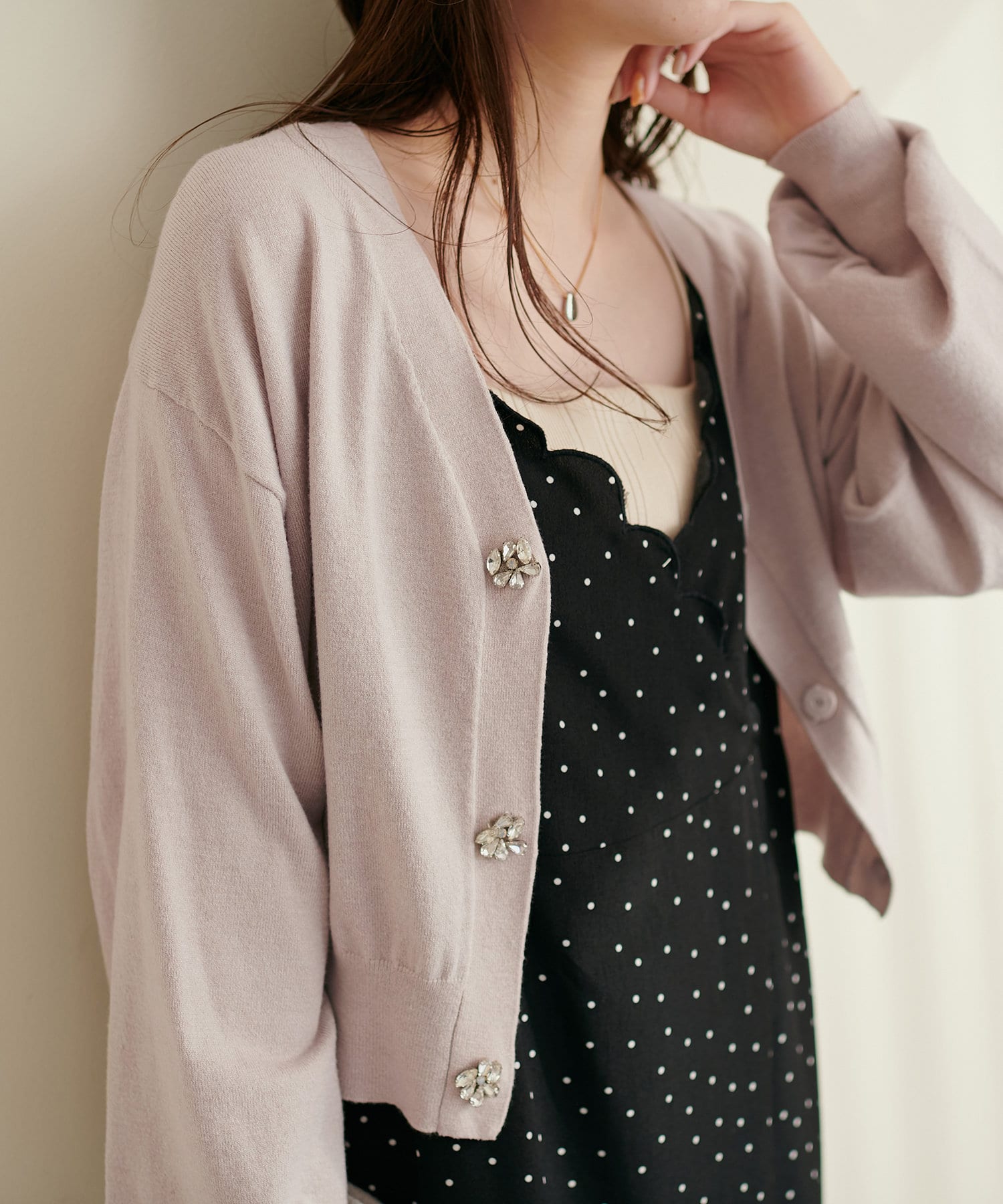 パッと目を惹く華やかなビジューがあしらわれたニットカーディガン。