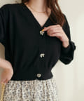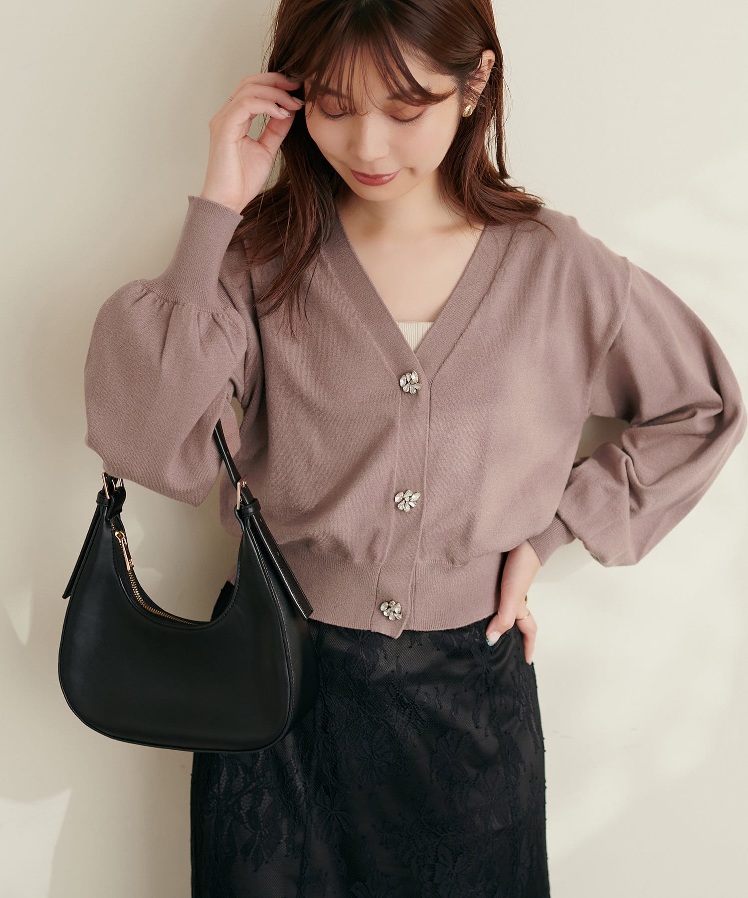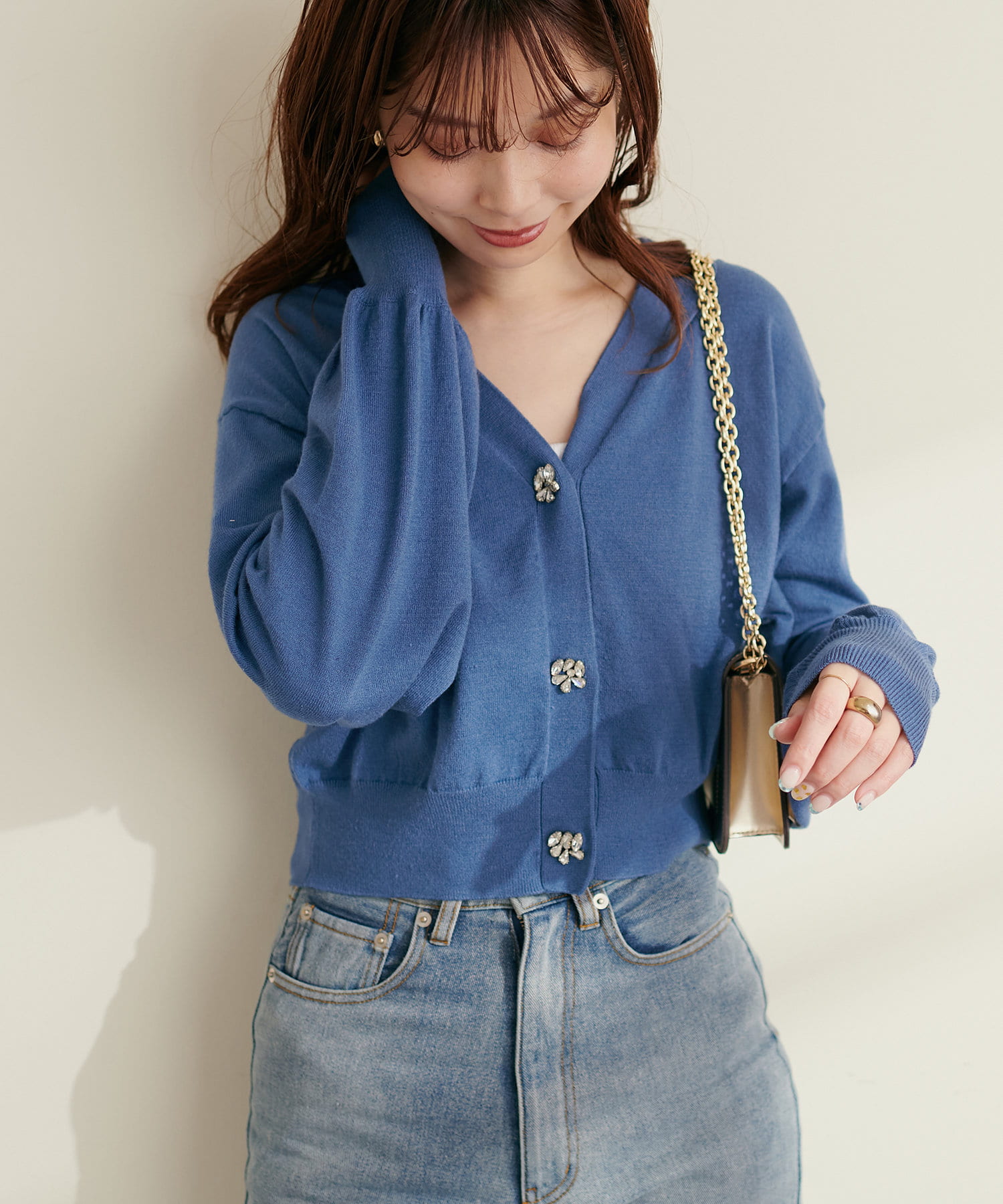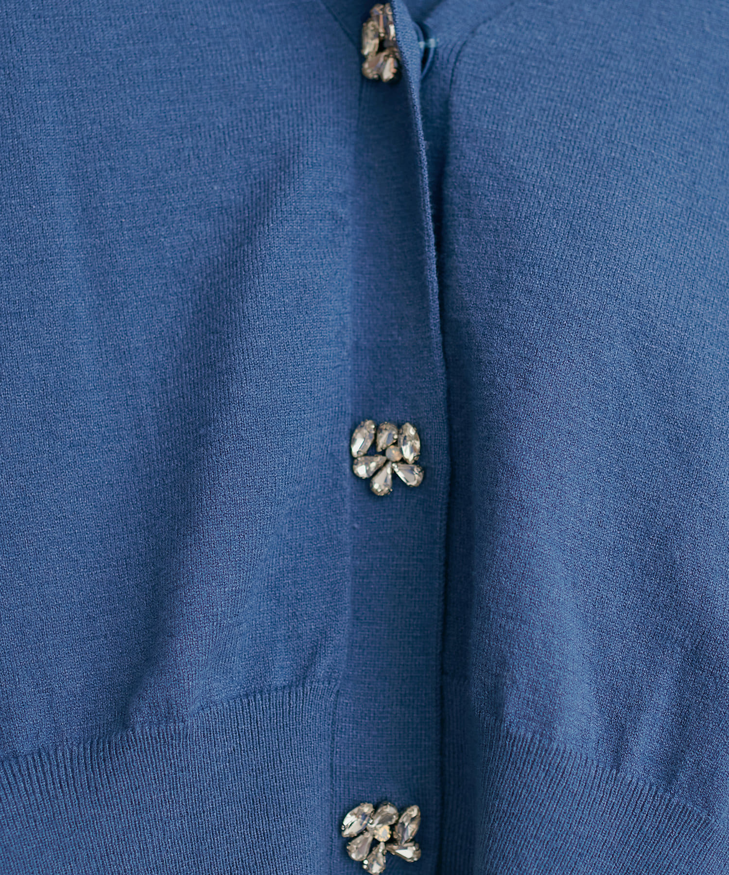 パッと目を惹く華やかなビジューがあしらわれたニットカーディガン。