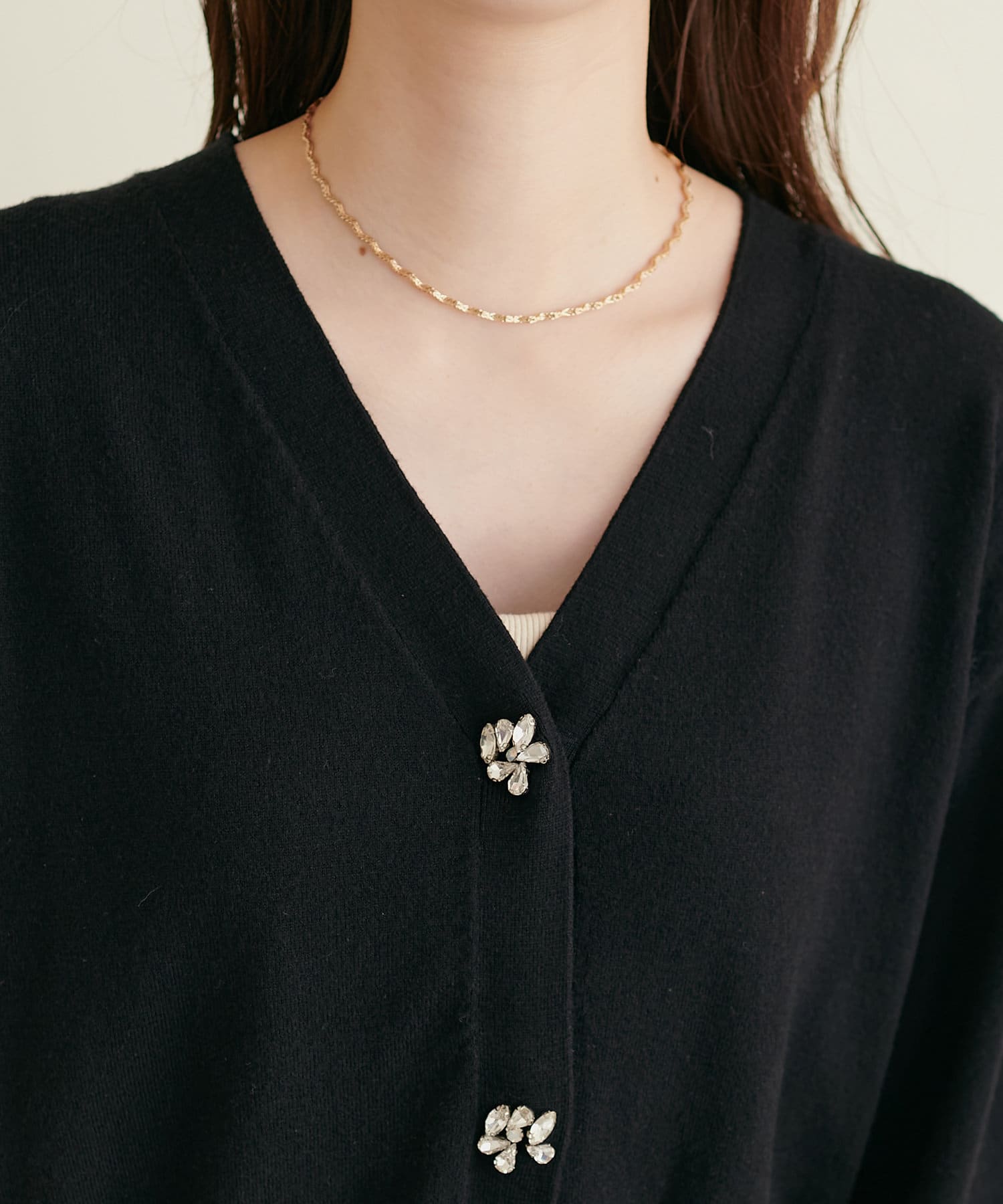 フロントの華やかなビジューが目を惹くニットカーディガン