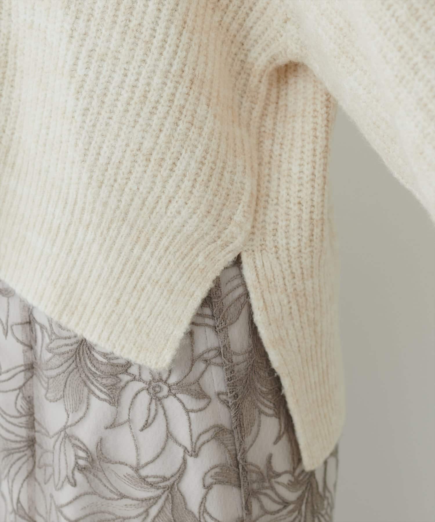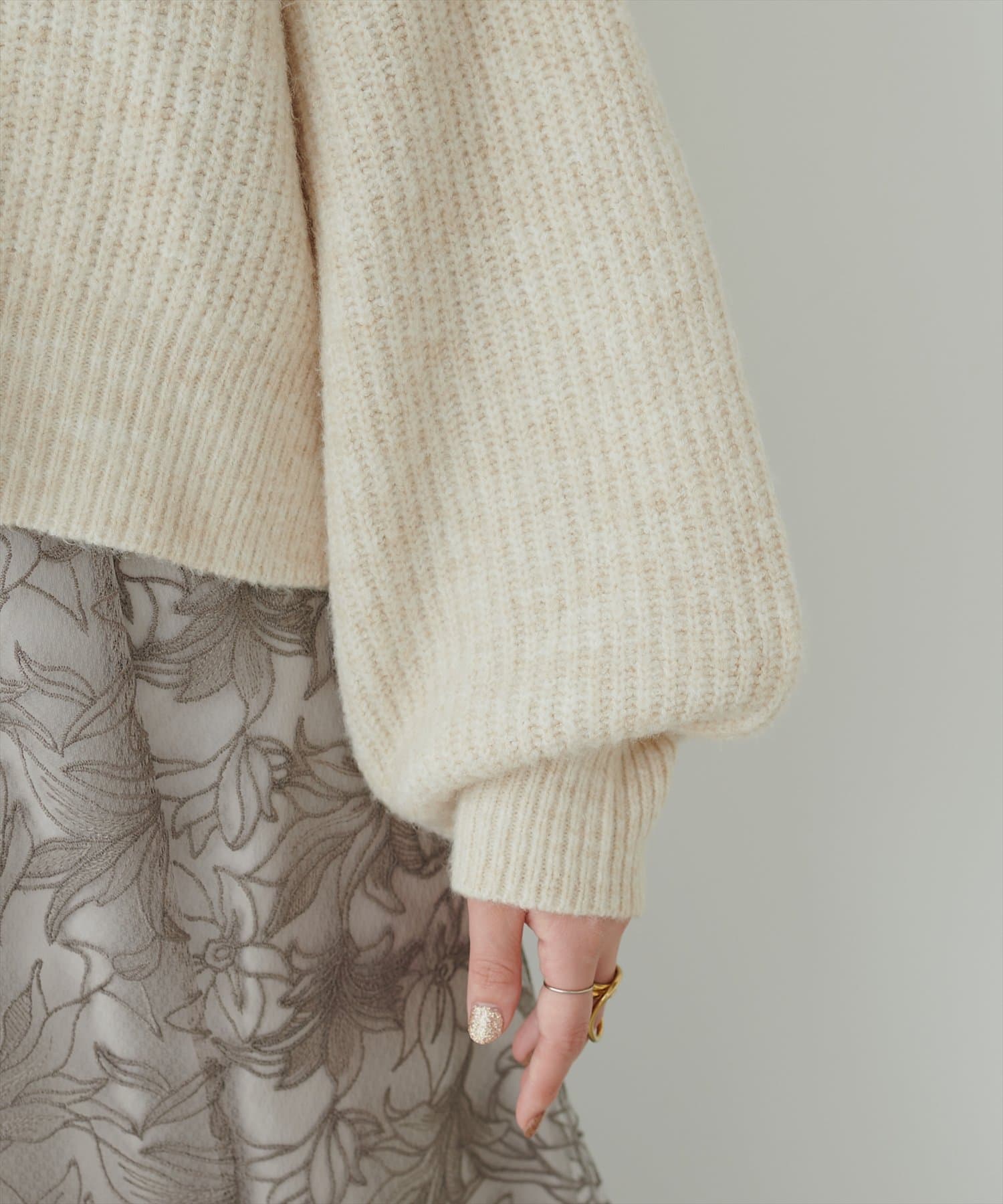 ざっくりとした畦編みとボリュームスリーブで大人可愛くきまる1着です。