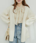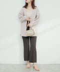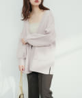 ゆるやかなVネックなので、フリルブラウスなどフロントにポイントのあるトップスと相性抜群。