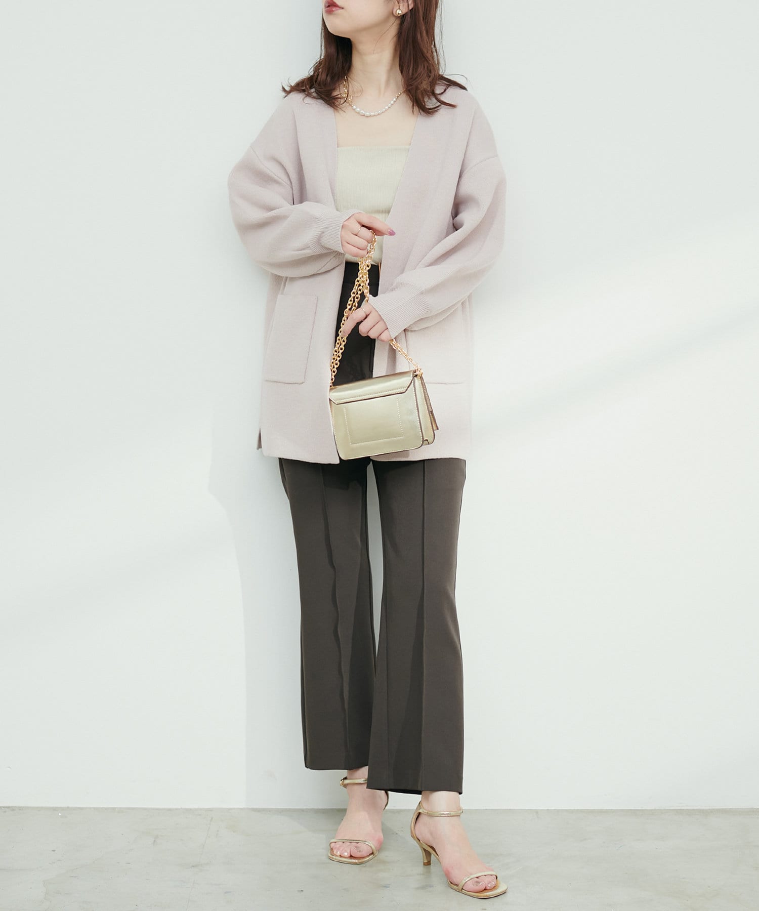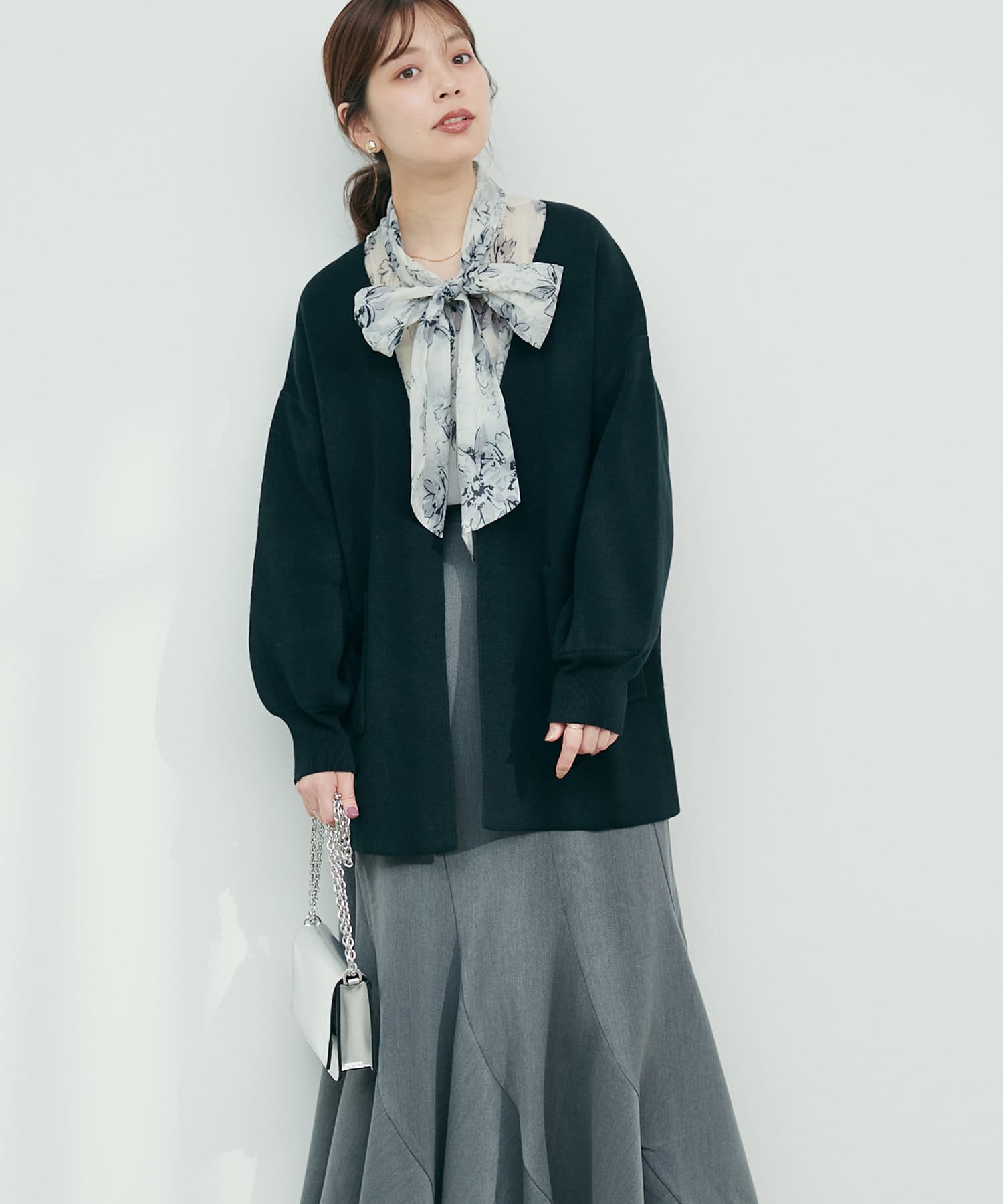 0331050050 WEB限定カラーあり/きれいめニットミドル丈カーディガン