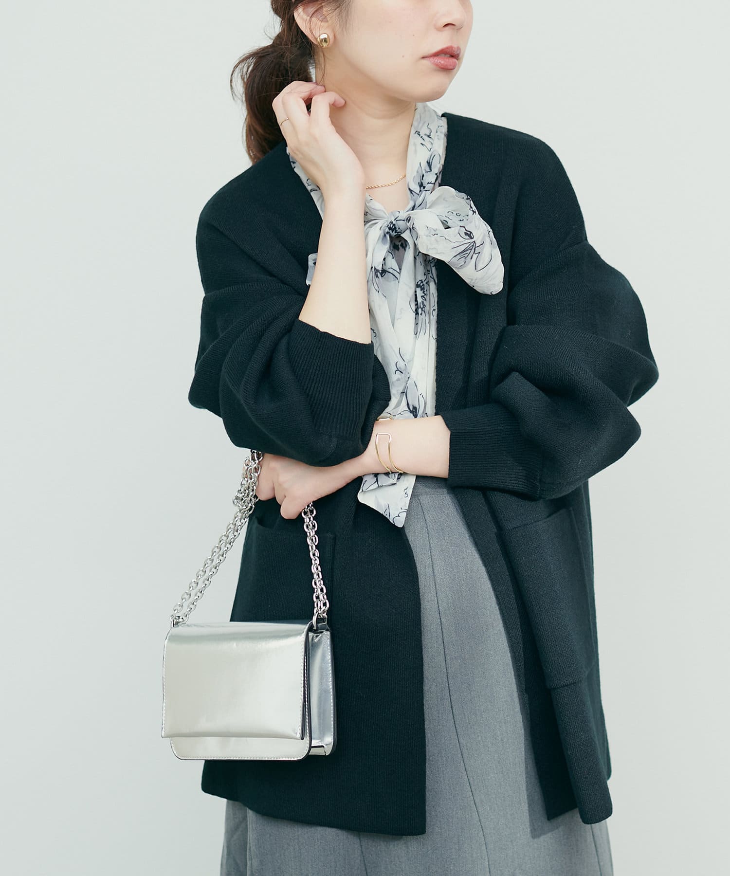 布帛のワンピースやブラウスに合わせると素材のバランスも◎