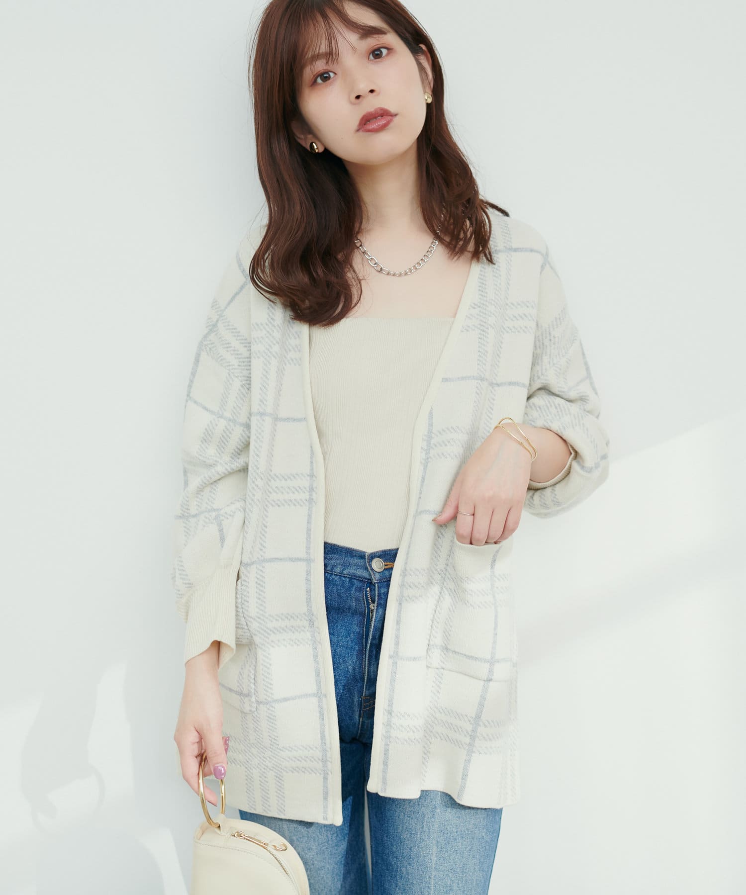 大人気「きれいめニットコーディガン」のミドル丈が登場