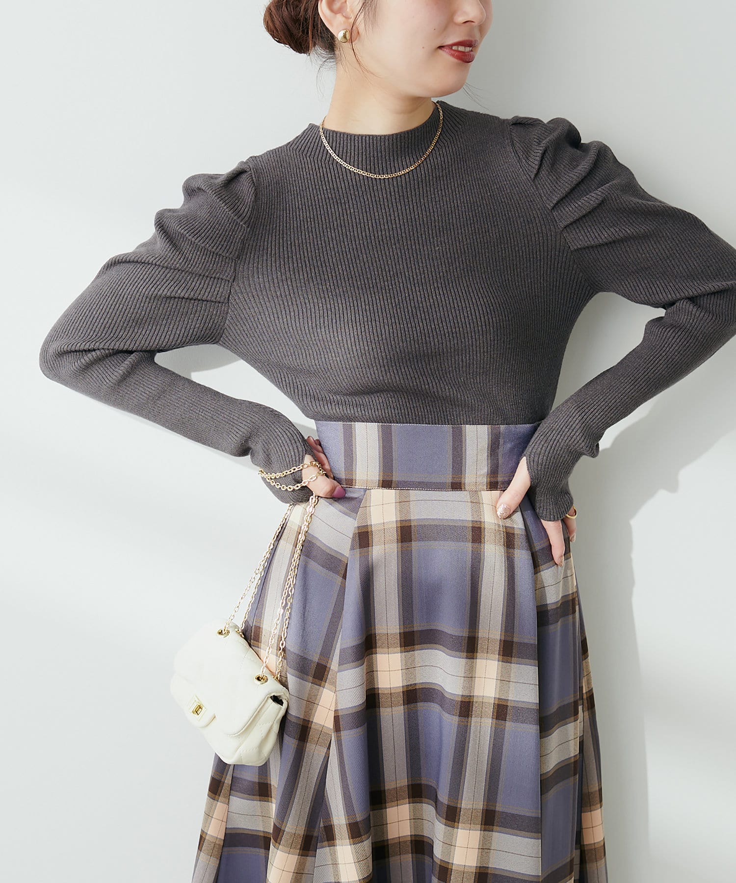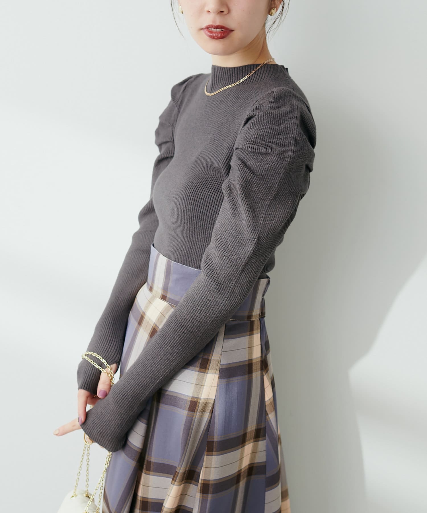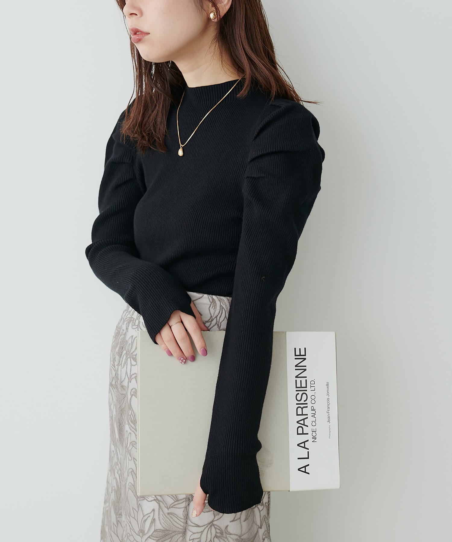 シンプルなリブニットにタックデザインを取り入れたリブニット。