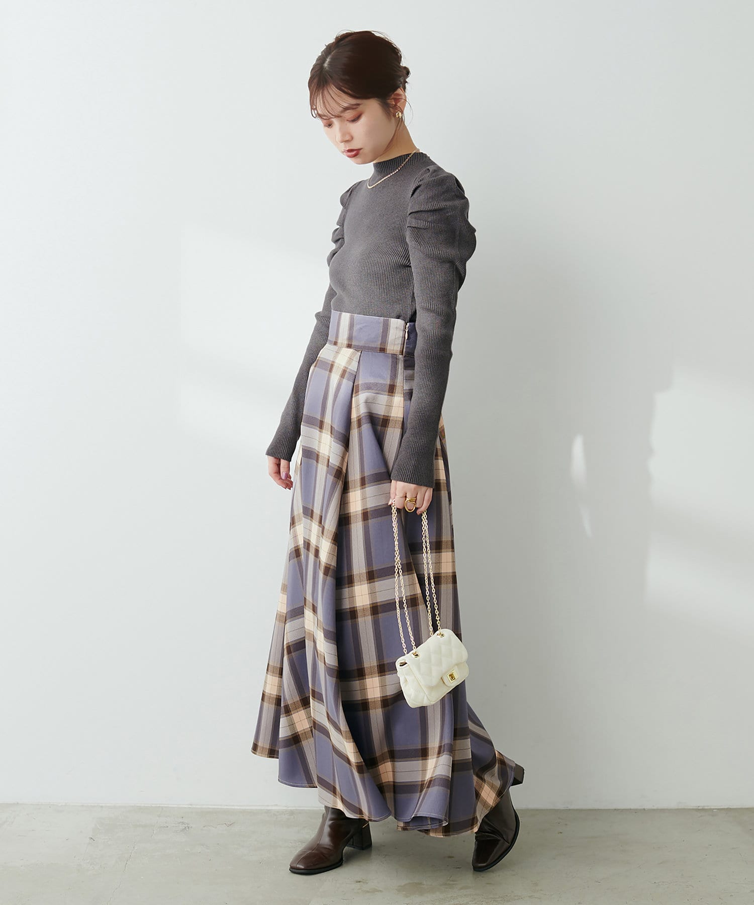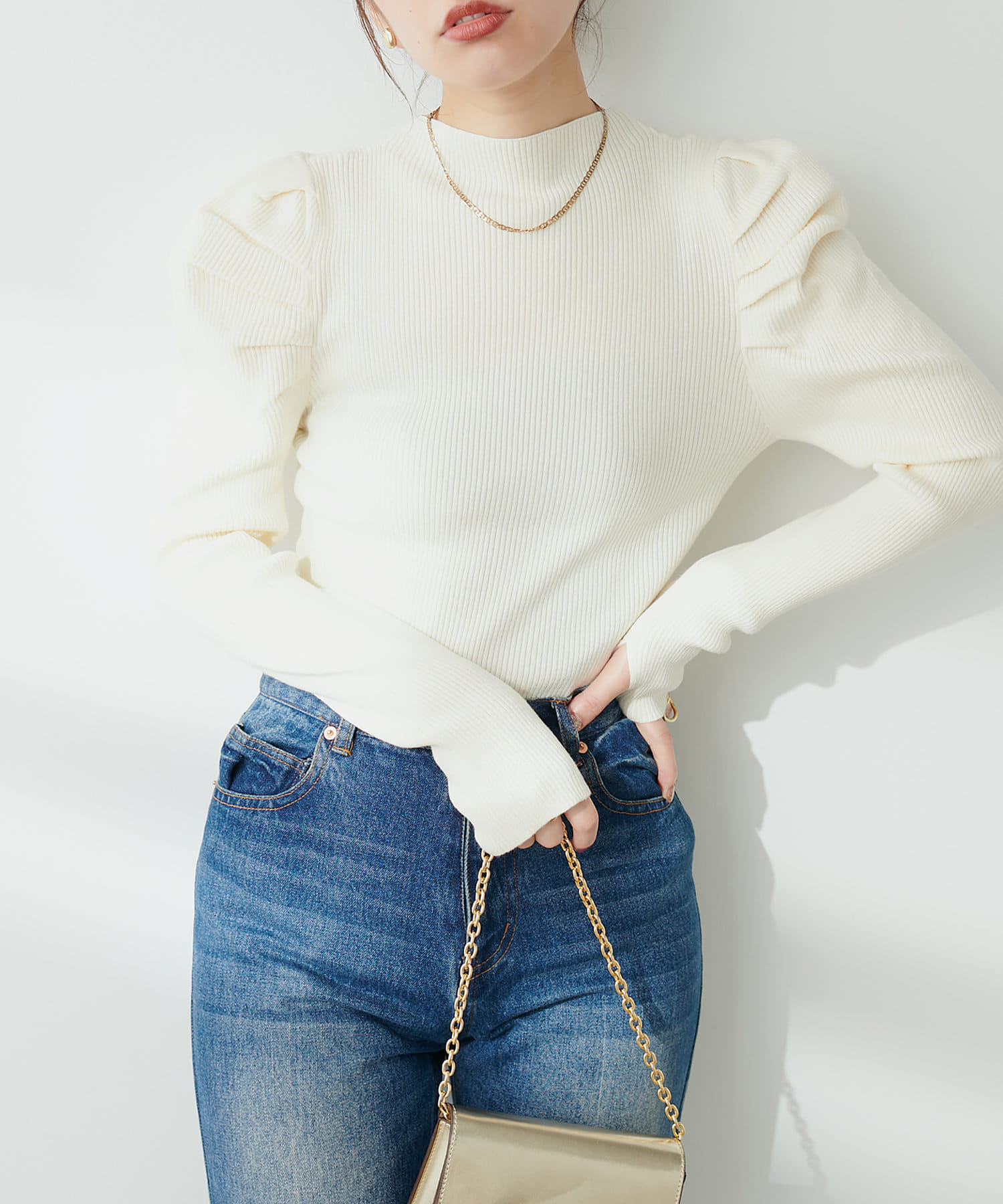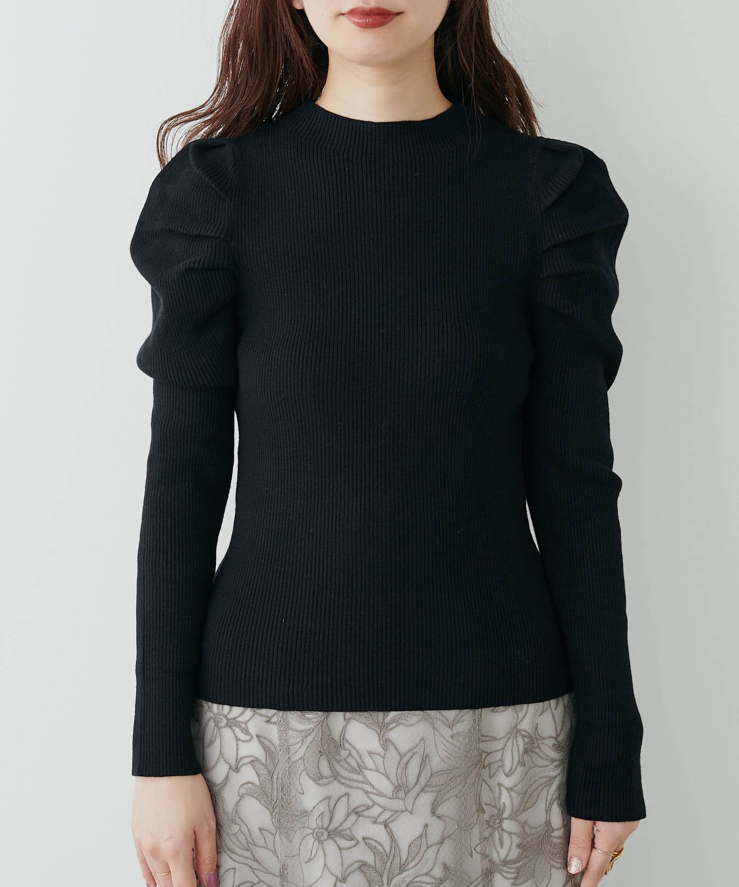 シンプルなリブニットにタックデザインを取り入れたリブニット。