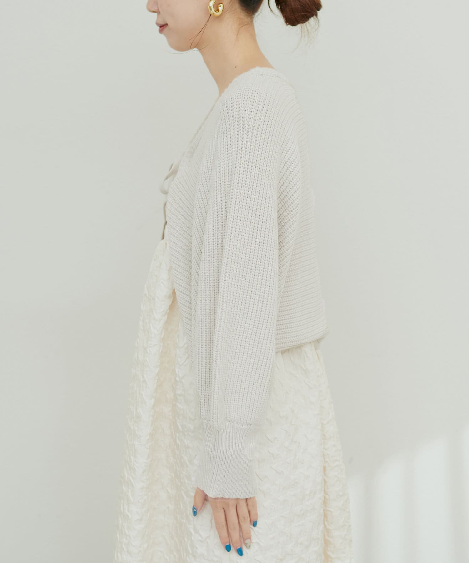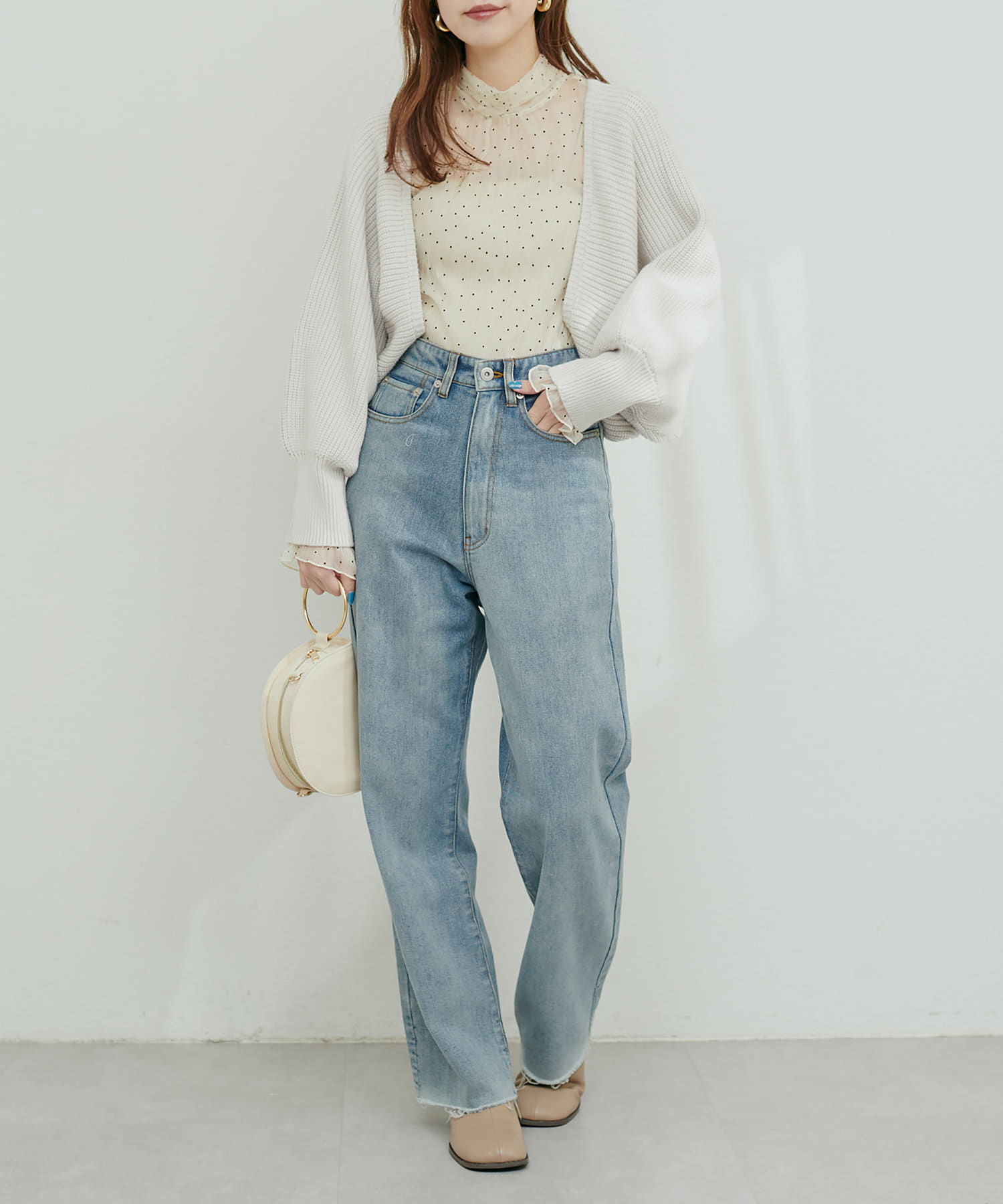 袖はゆったりとボリュームがあり、ショート丈を引き立てます。