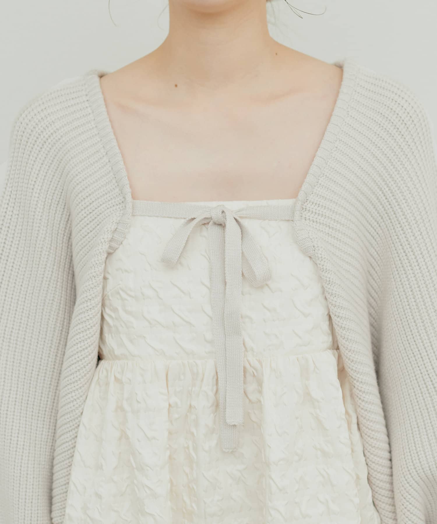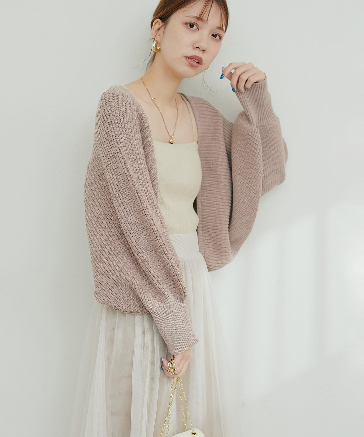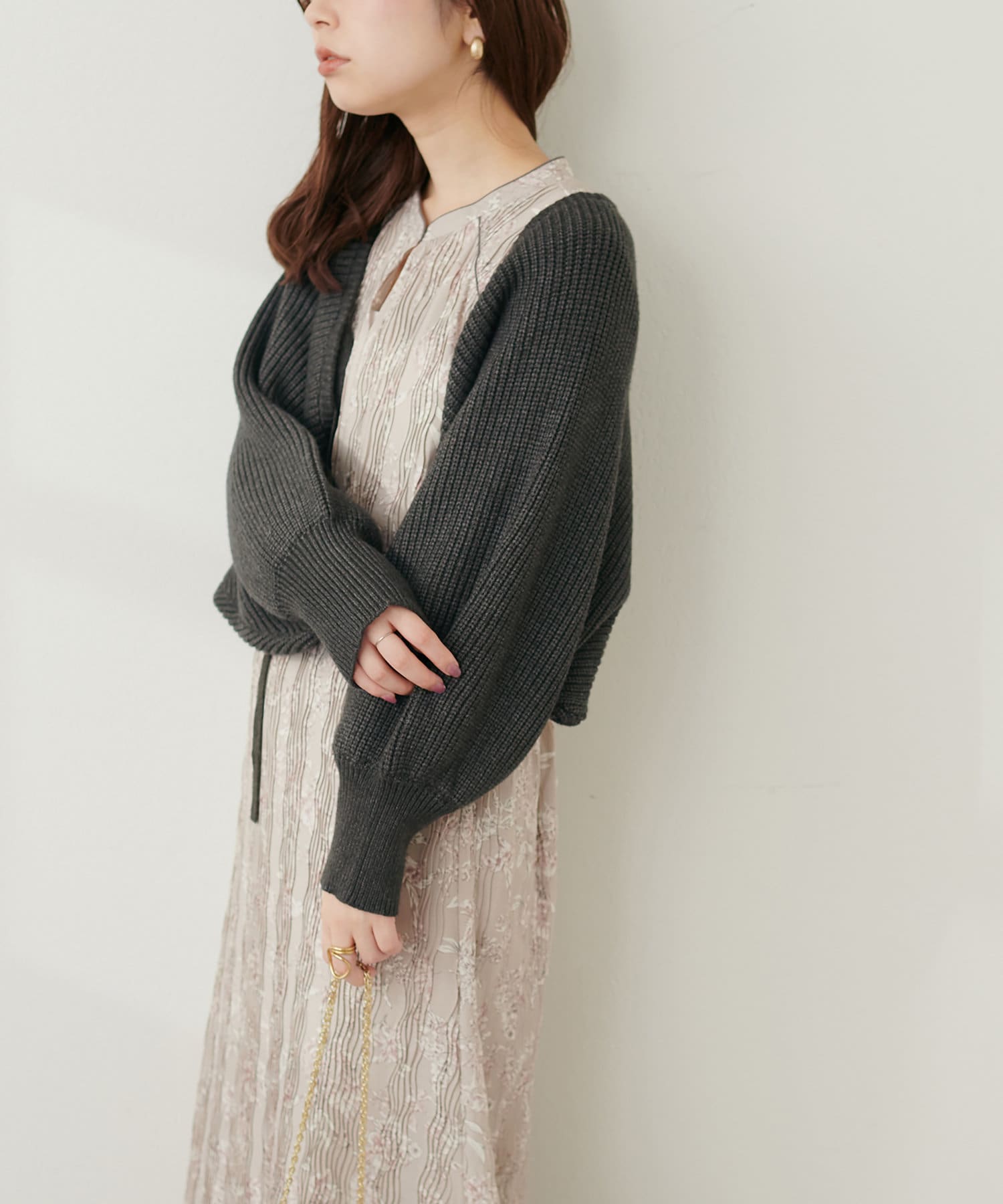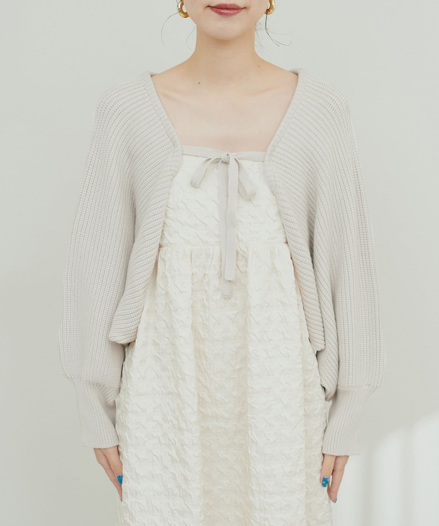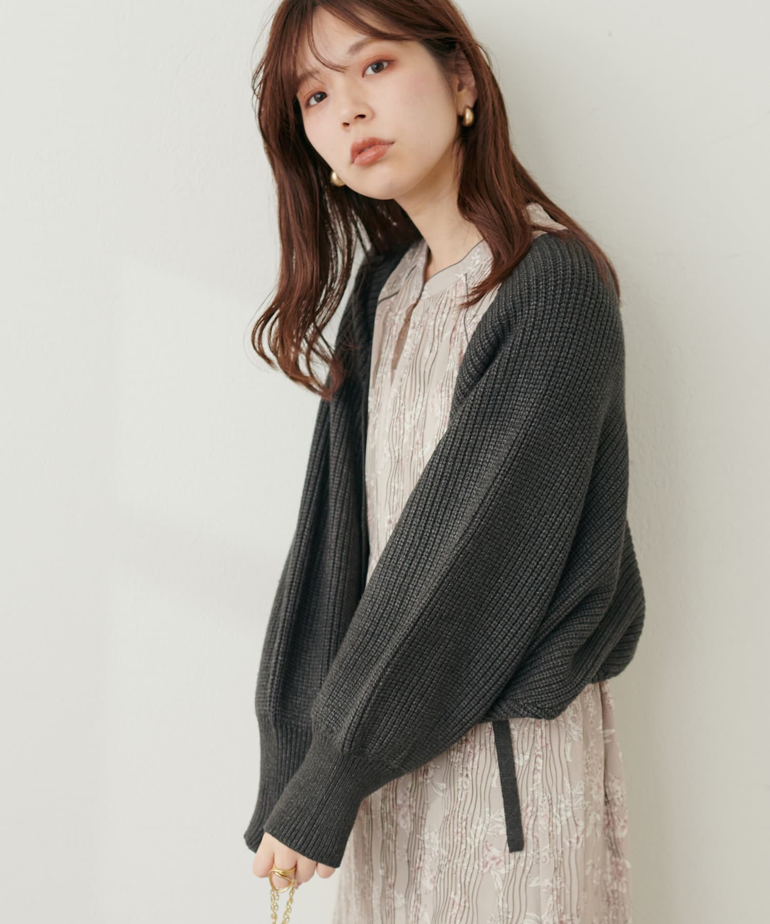 フロント部分はボタンなどなく、さらっと羽織れる一枚です。