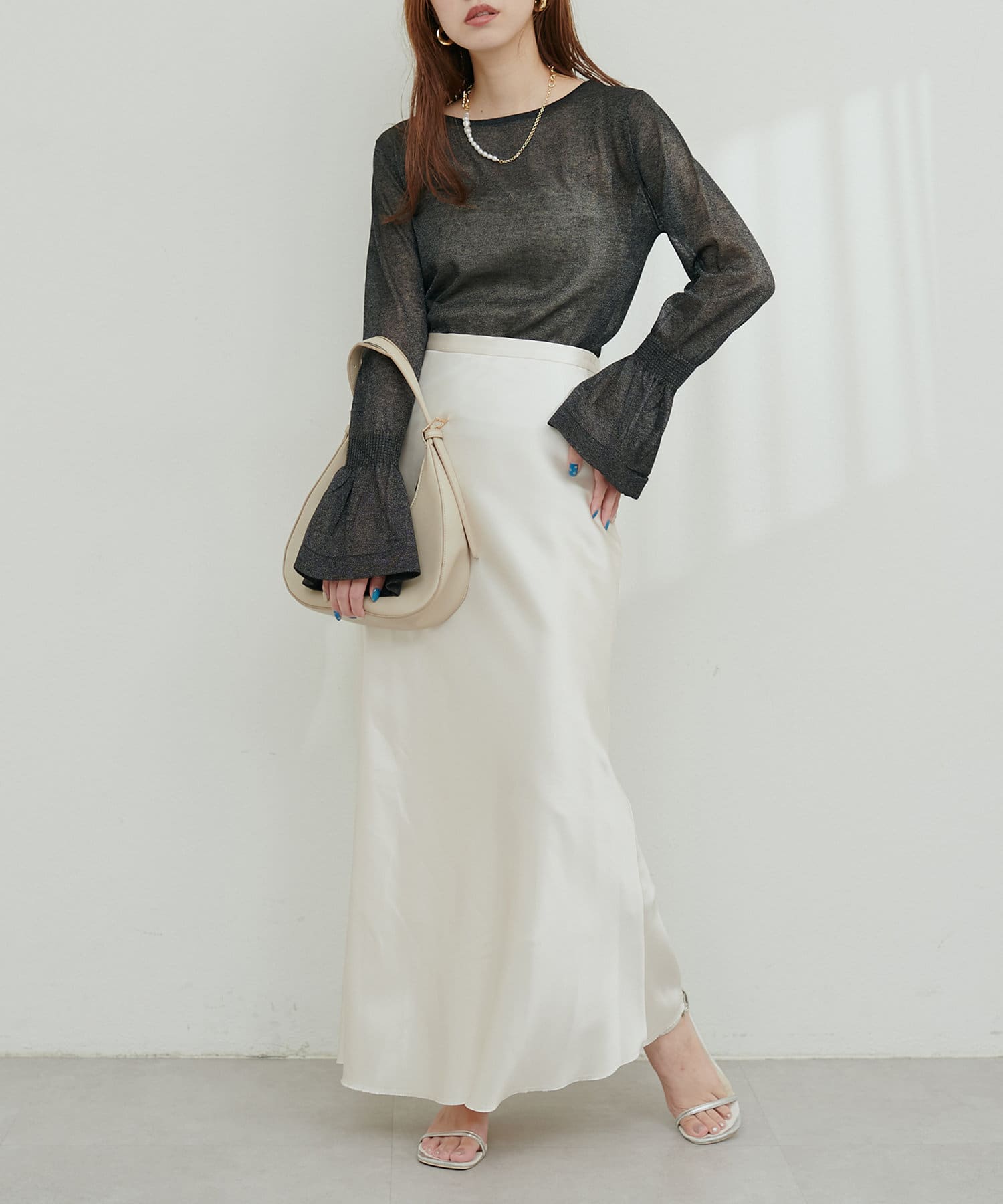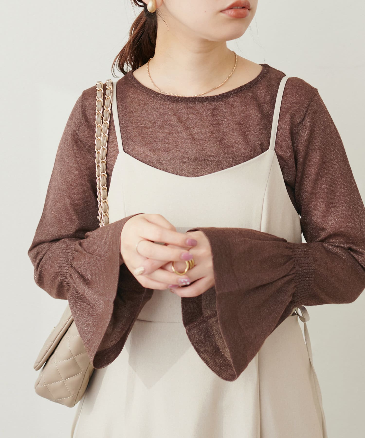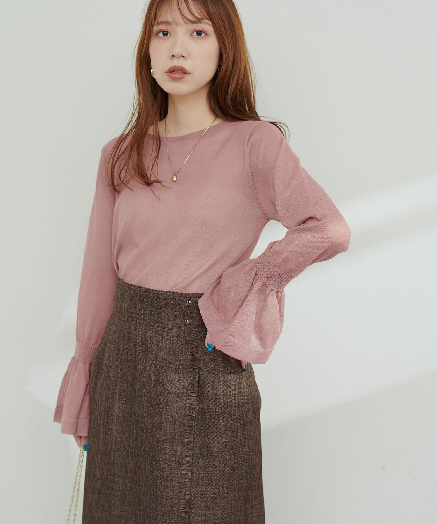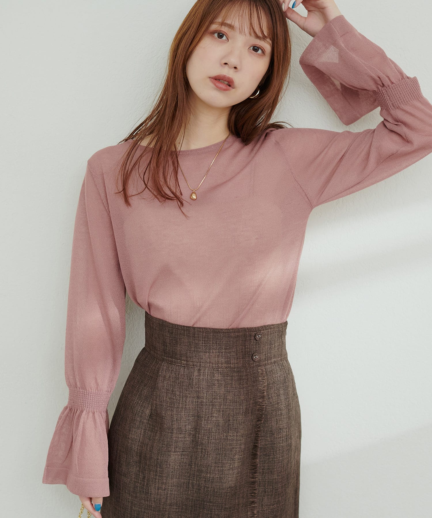 フレアスリーブで、フェミニンで女性らしい印象に。