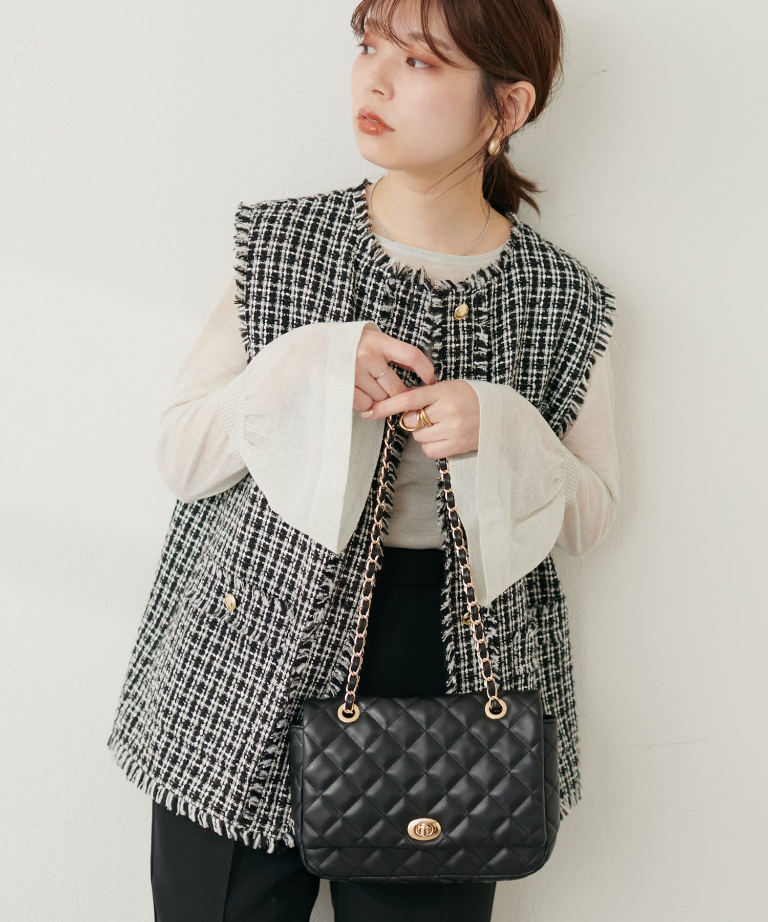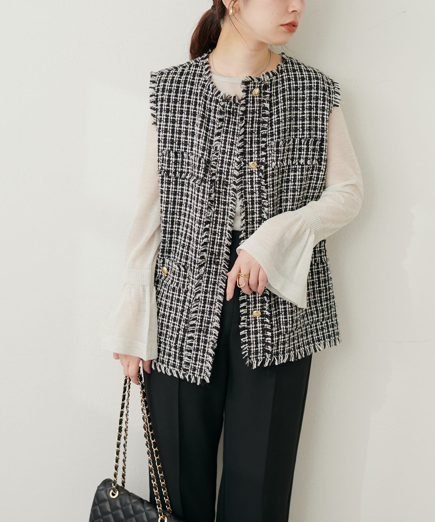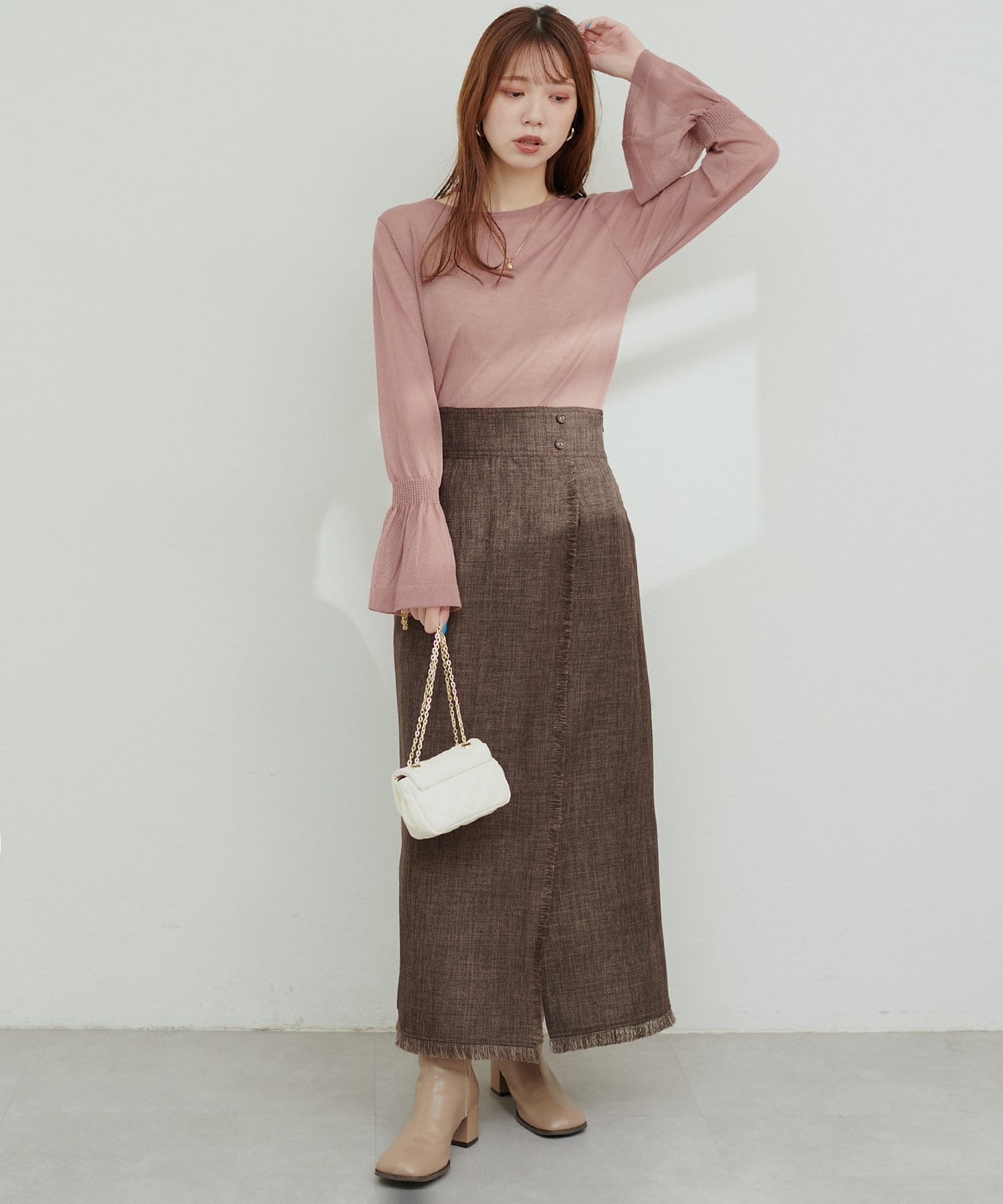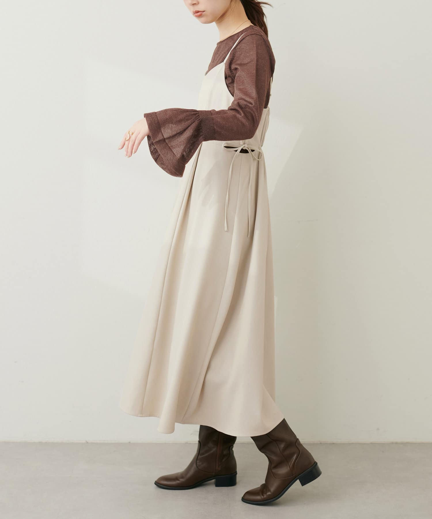 フレアスリーブで、フェミニンで女性らしい印象に。