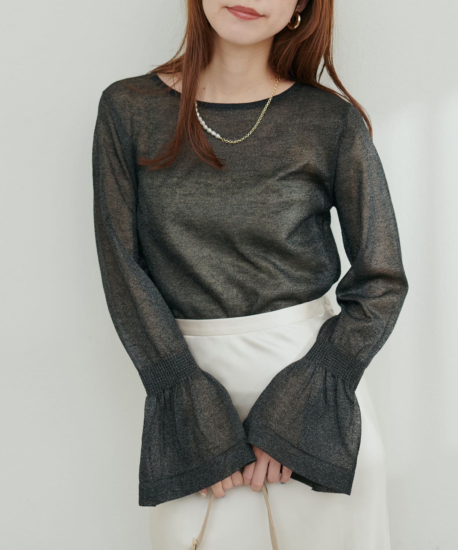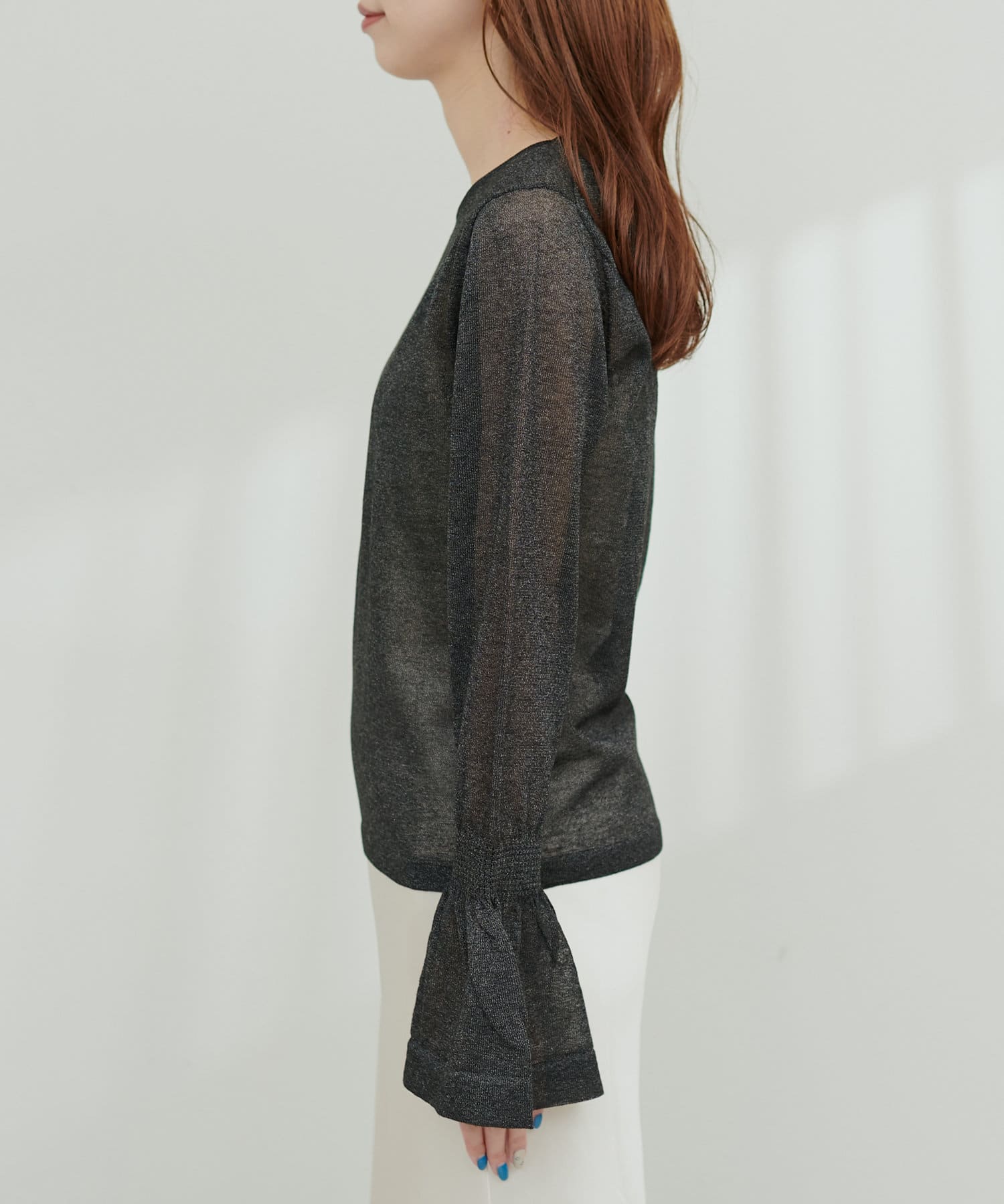 フレアスリーブラメシアーニット