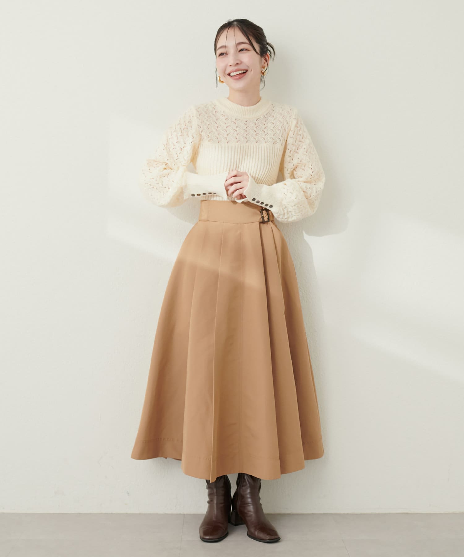 マーメイドシルエットやフレアラインのスカートにウエストインして頂くと、シンプルながらも大人レディな印象のコーディネートに仕上がります。