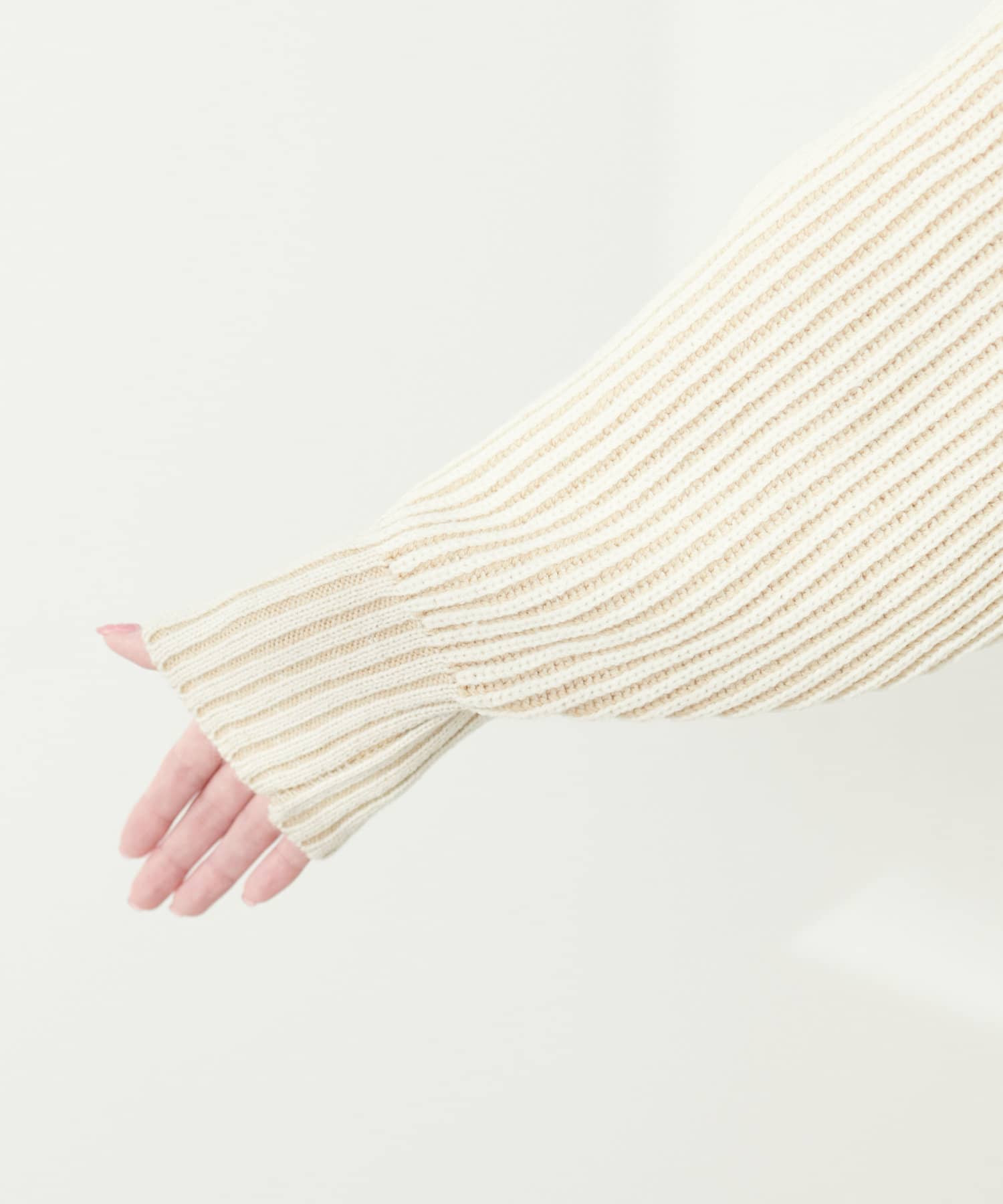 さり気ないストライプ柄とシーズンムードを盛り上げる畦編みが大人可愛いショートニット。