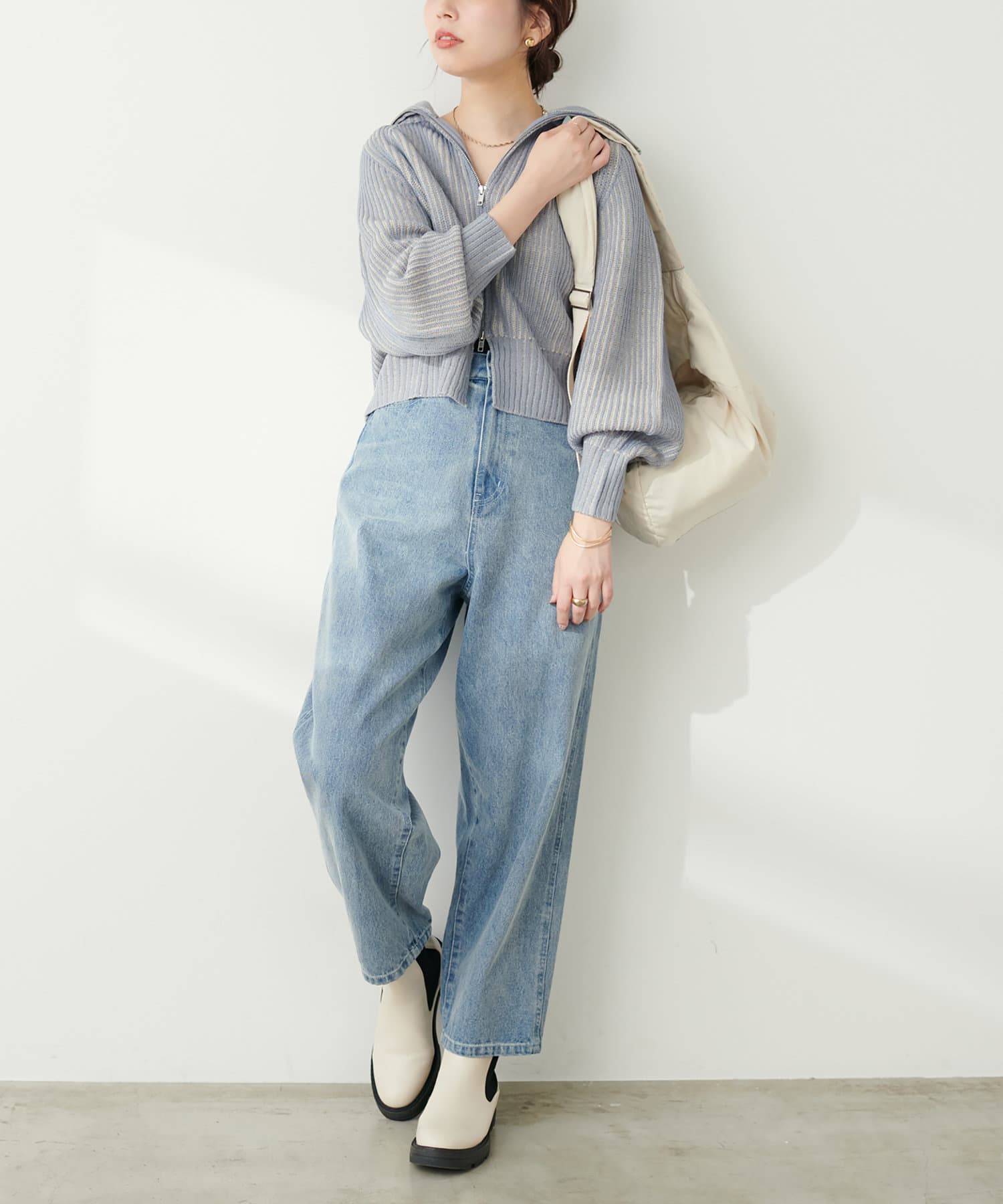 すっきりとした着丈のため、ボトムはタイトなものからボリュームのあるものまで相性抜群◎