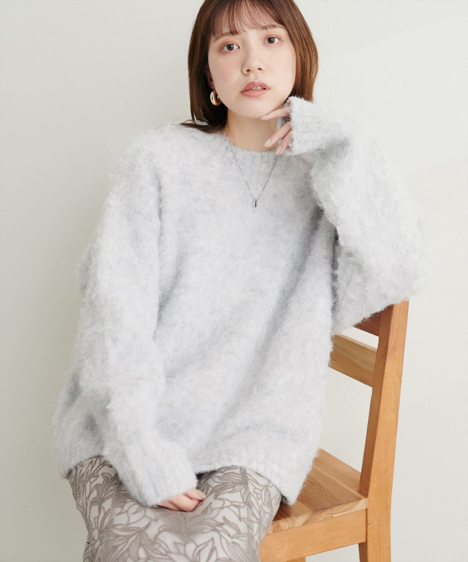 エアリーなモヘアタッチの生地を使用した表情のあるニットプルオーバー。