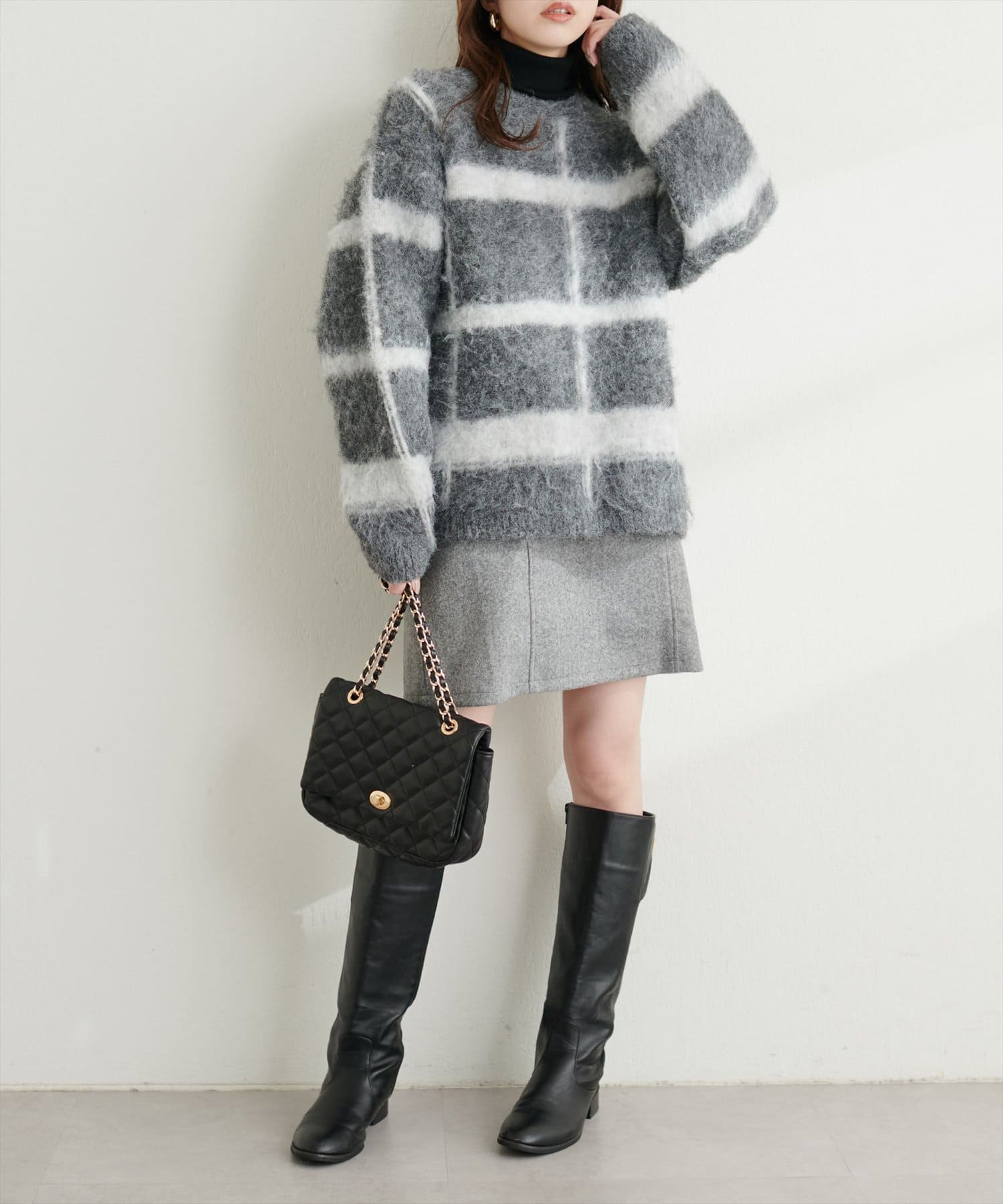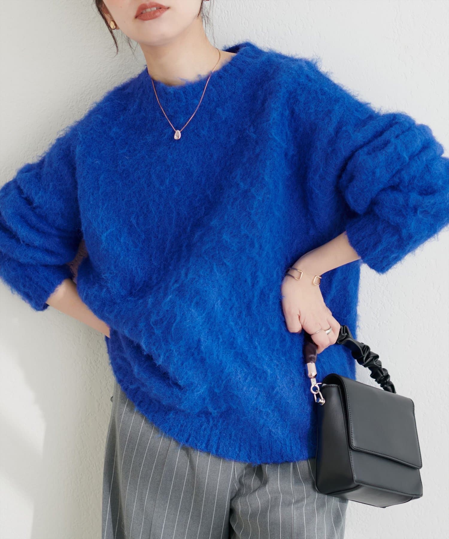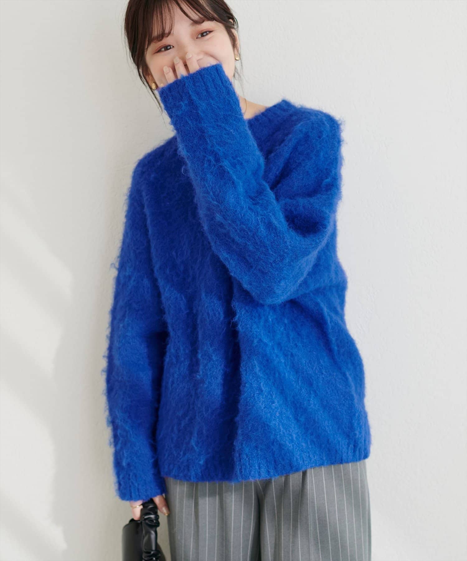 ふわふわとした見た目ですが、内側はハイゲージニットになっており、しっかりとした厚