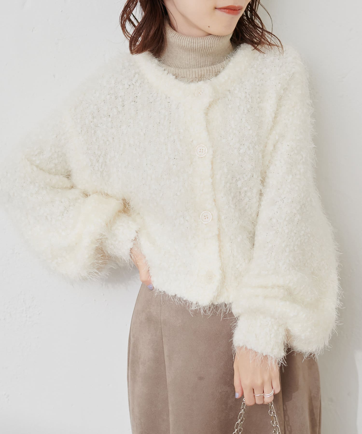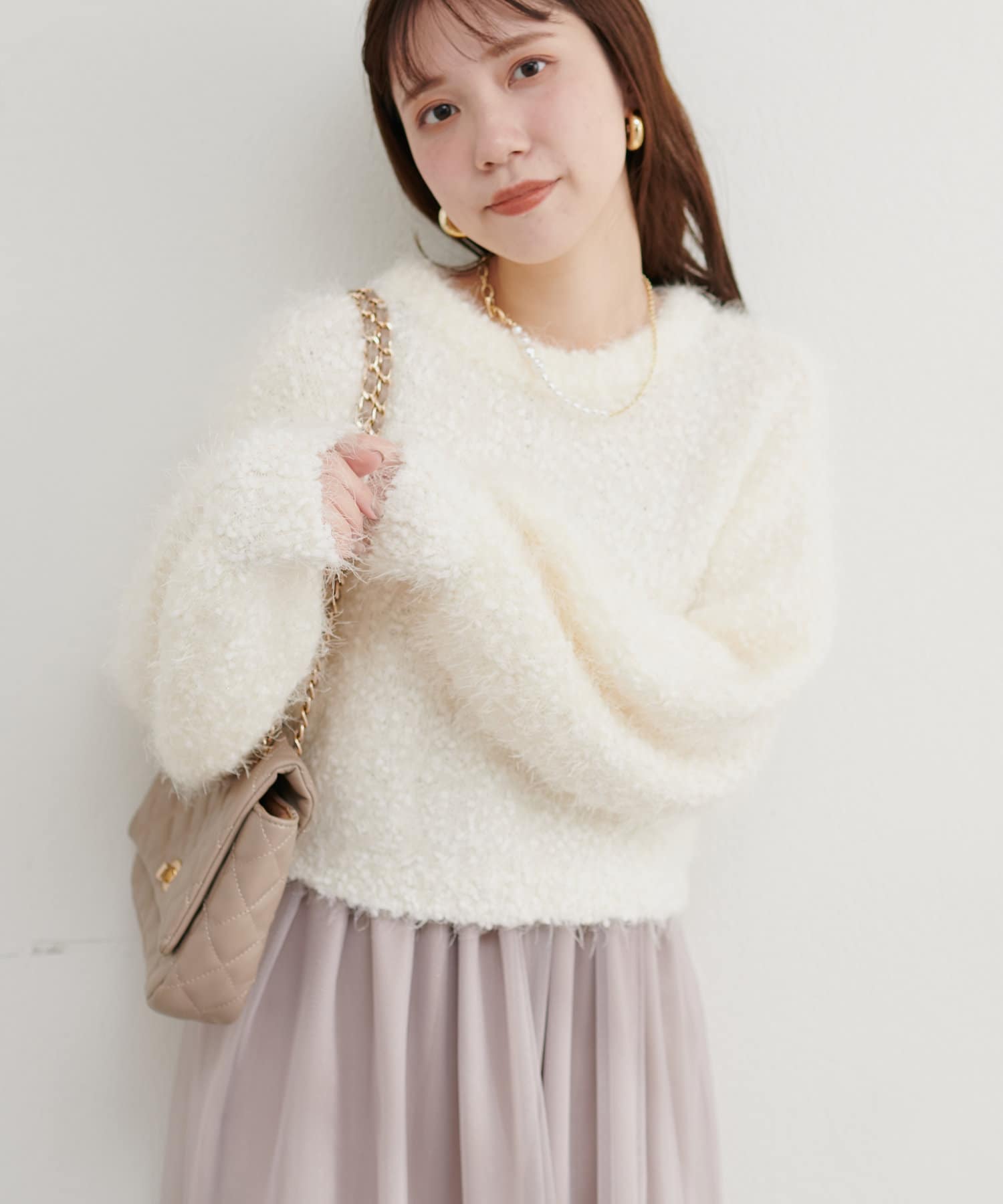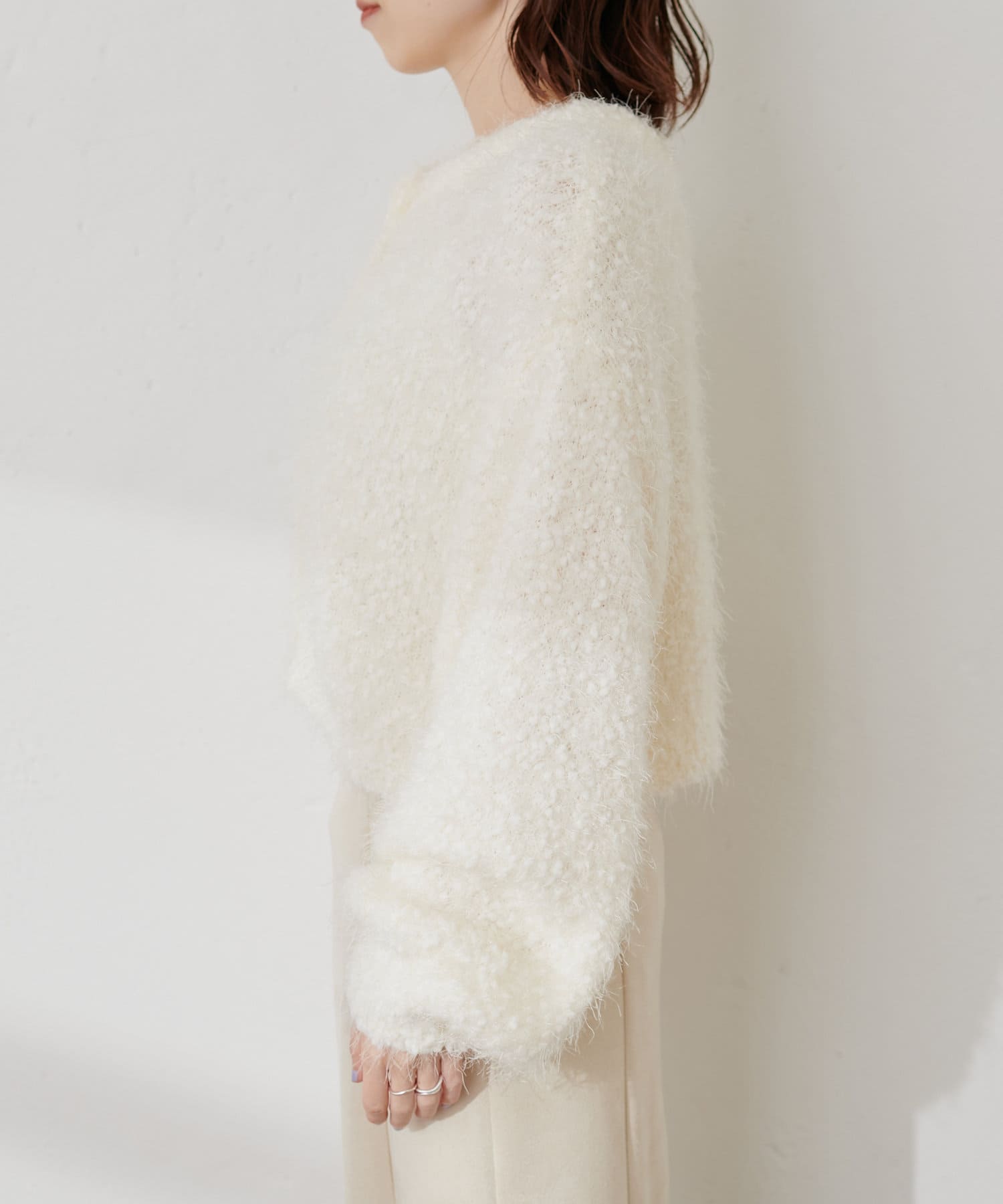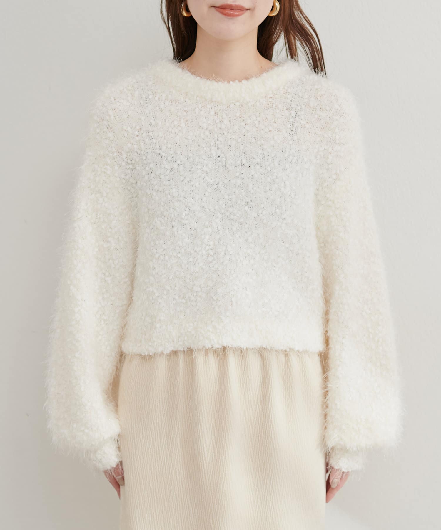 【プチナチュ】WEB限定/ポップコーンフェザーショート丈ニット