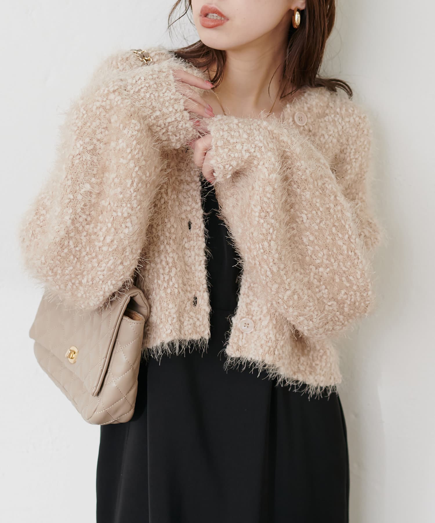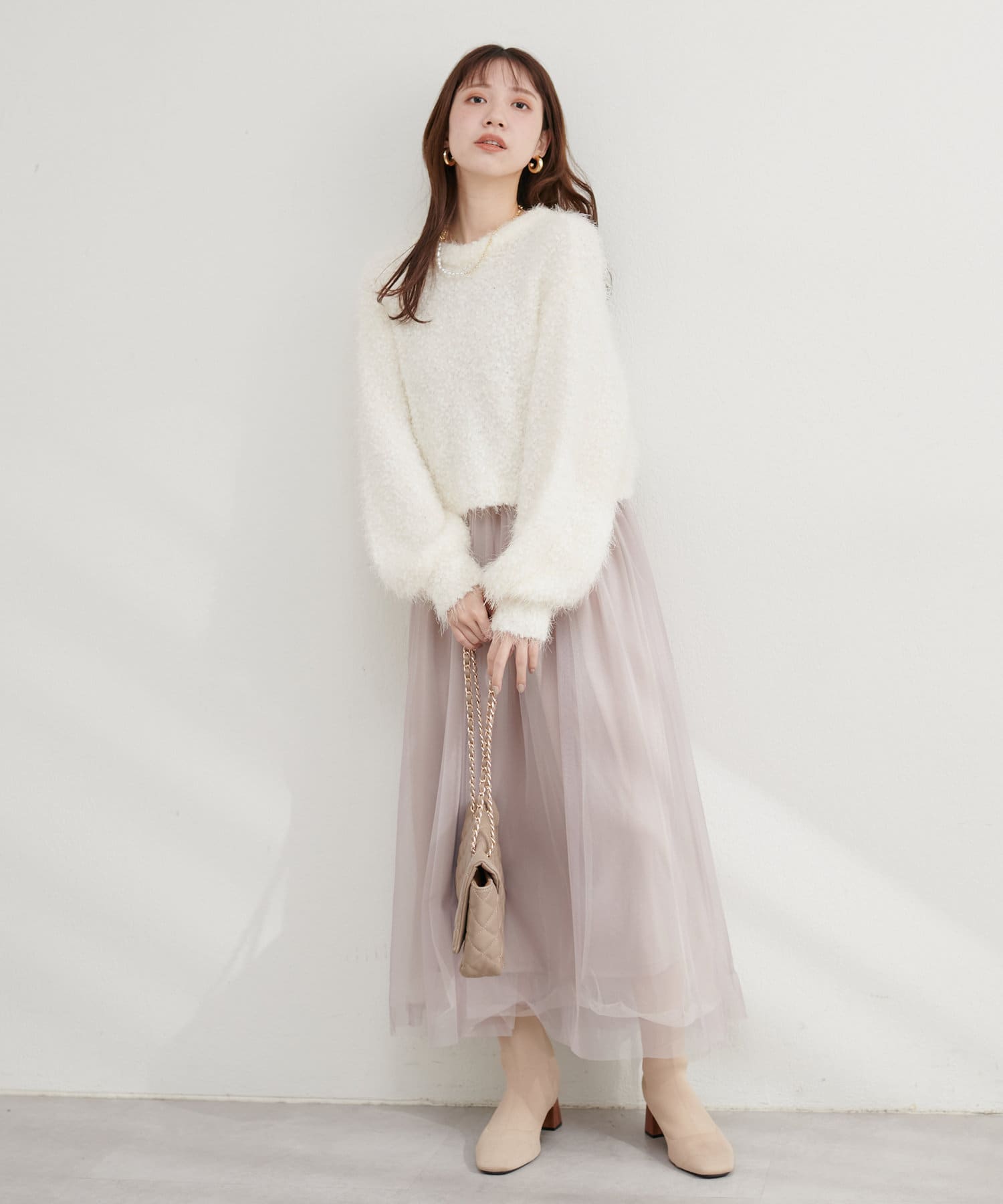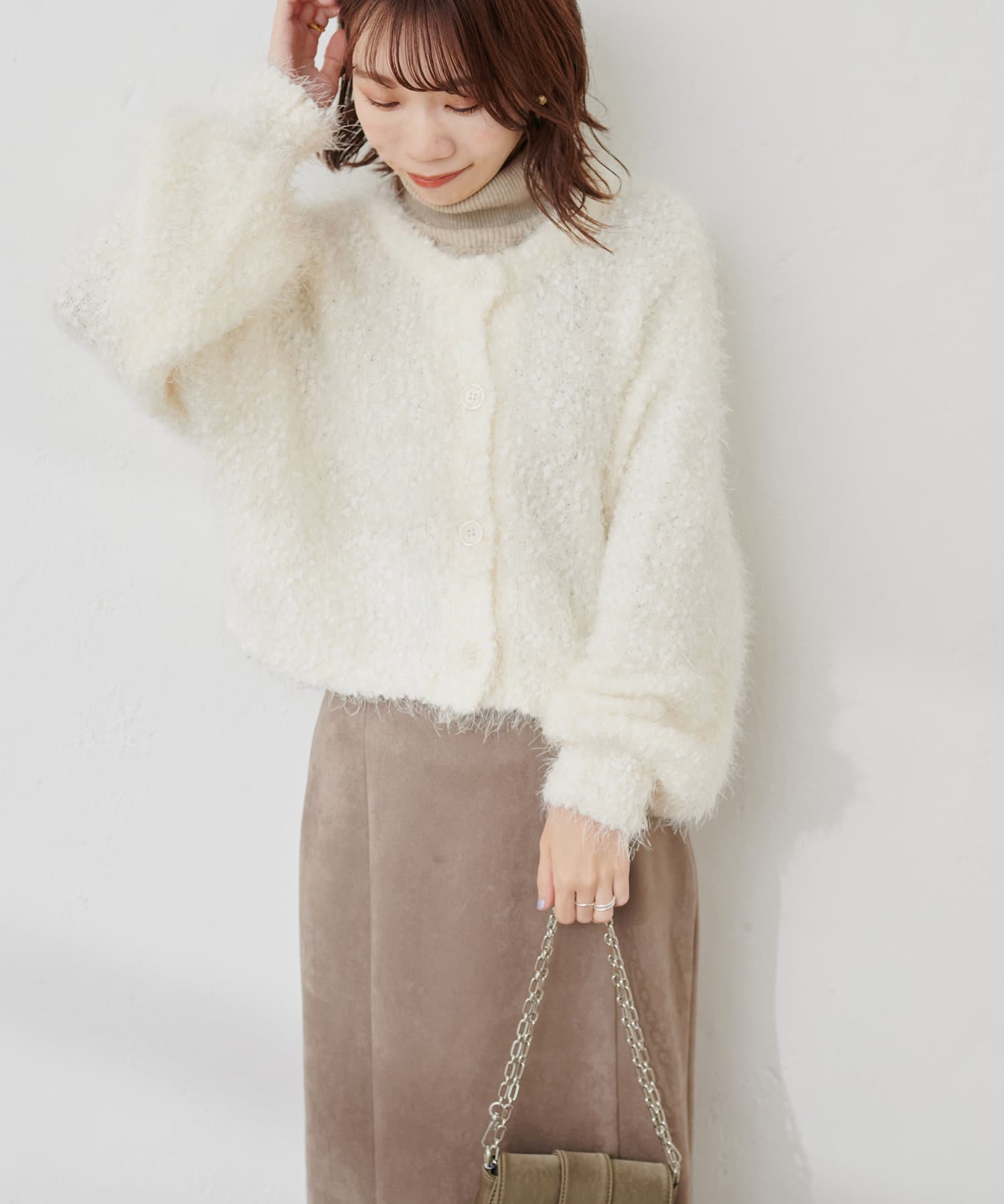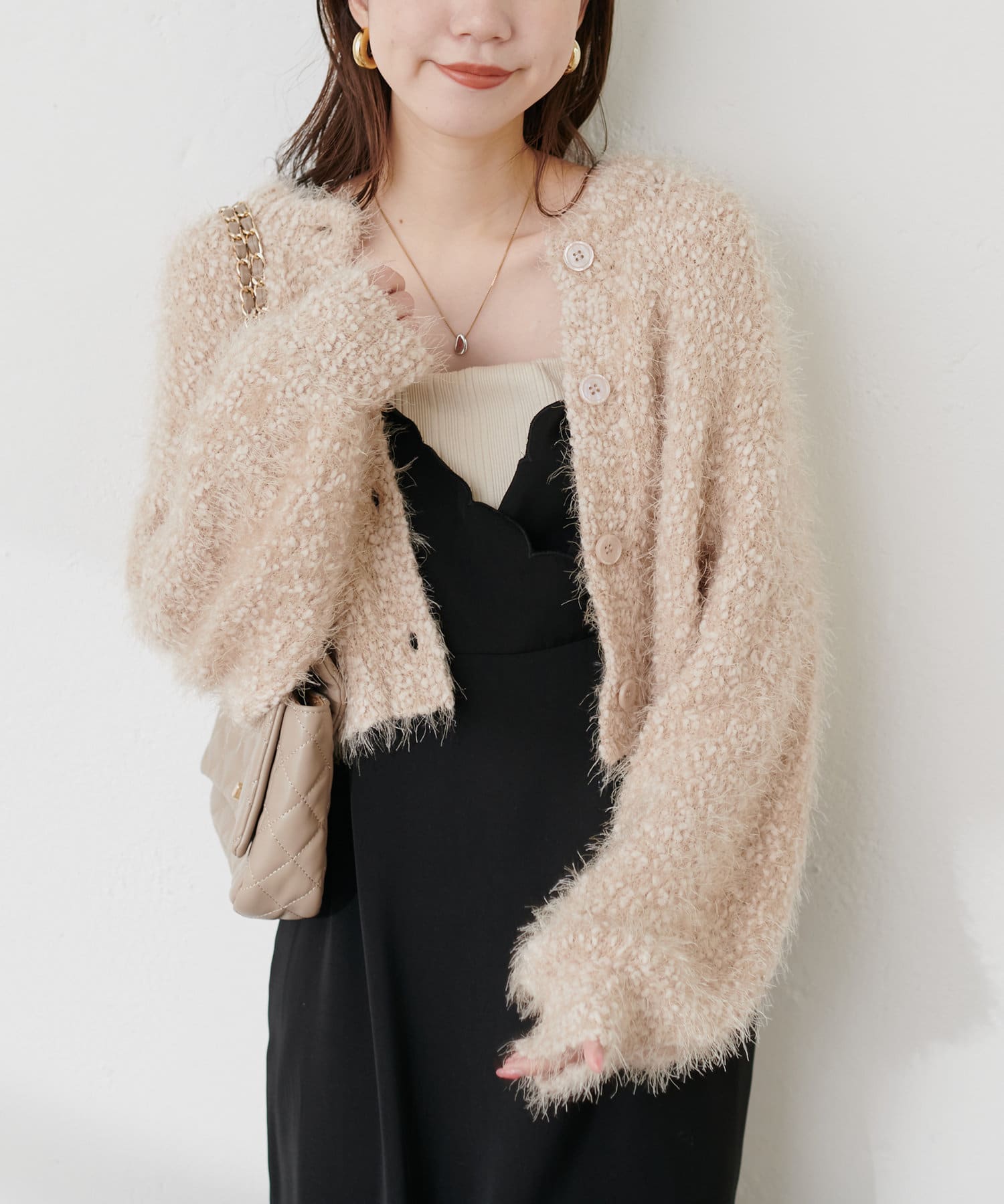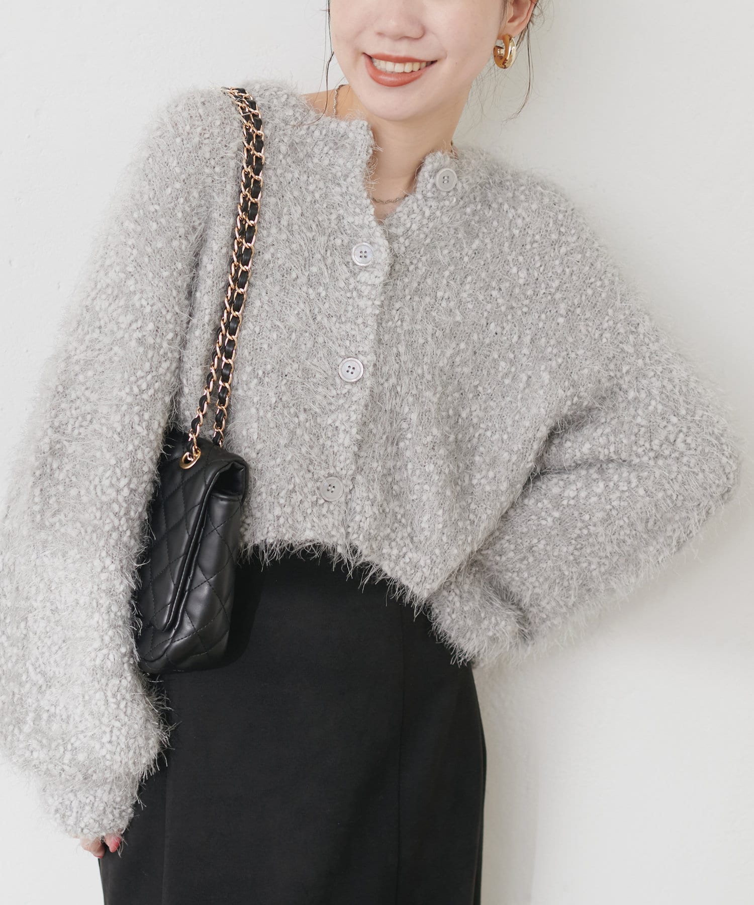 【プチナチュ】WEB限定/ポップコーンフェザーショート丈ニット