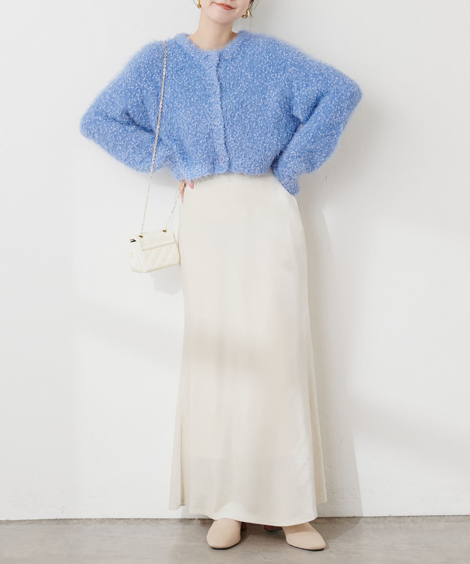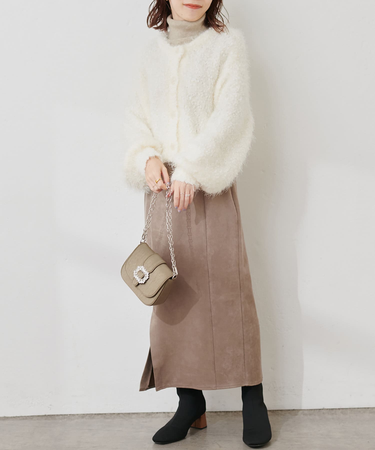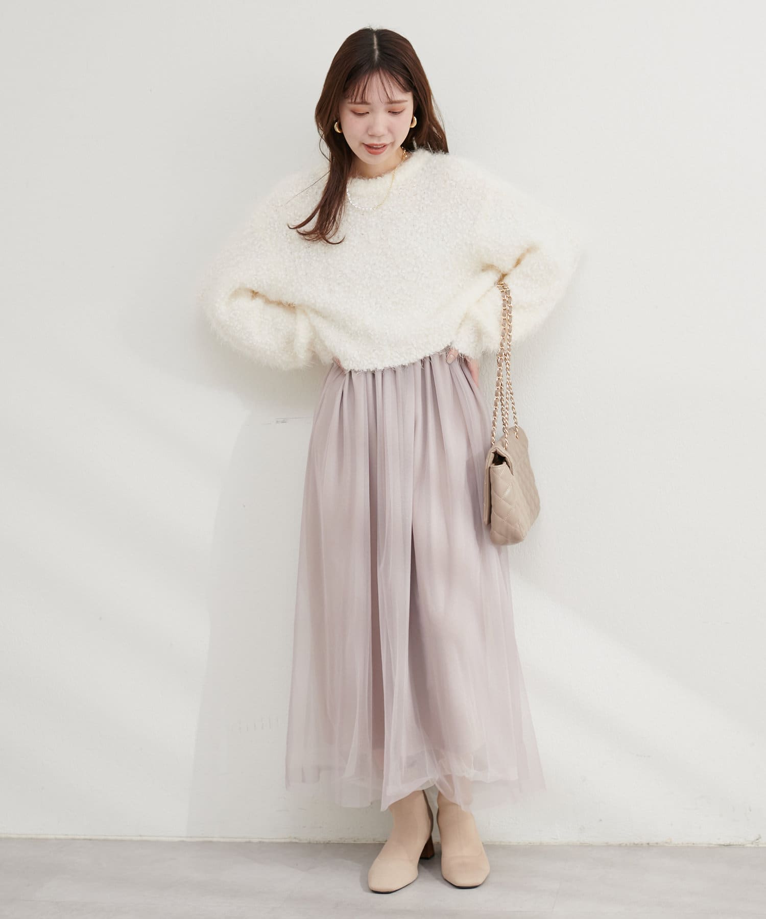 同じくプチナチュから展開している 品番:0332010470 ポンチスエードハイウエストスカートと合わせるのがおすすめ。