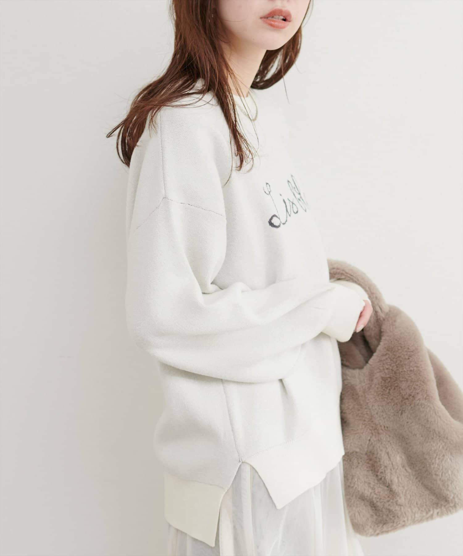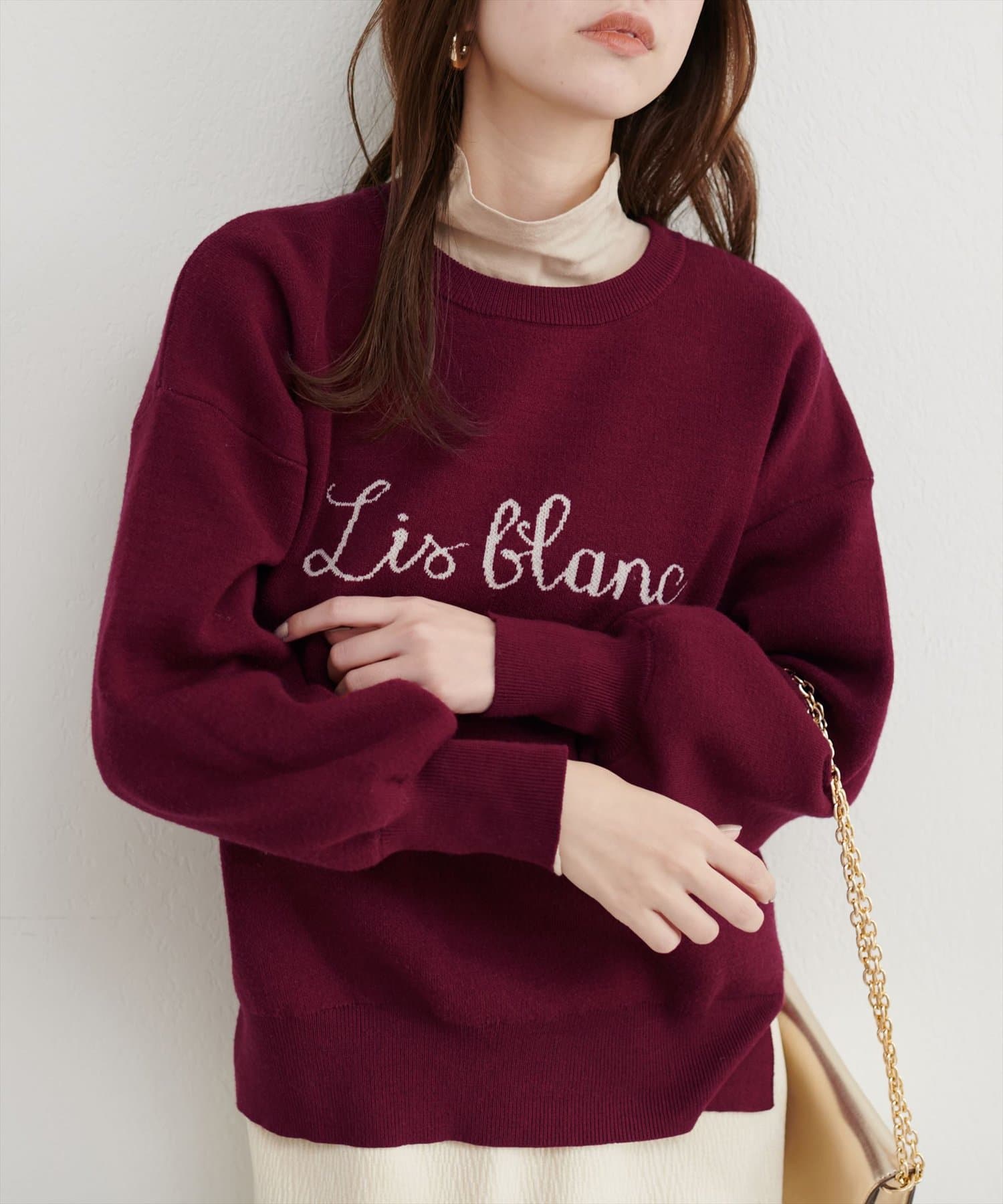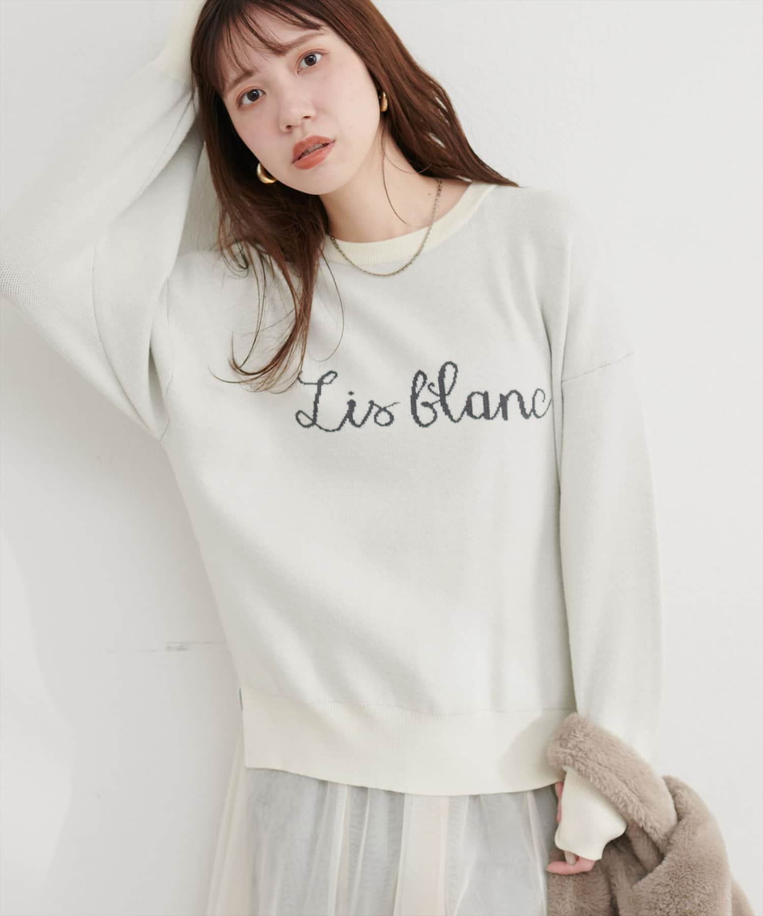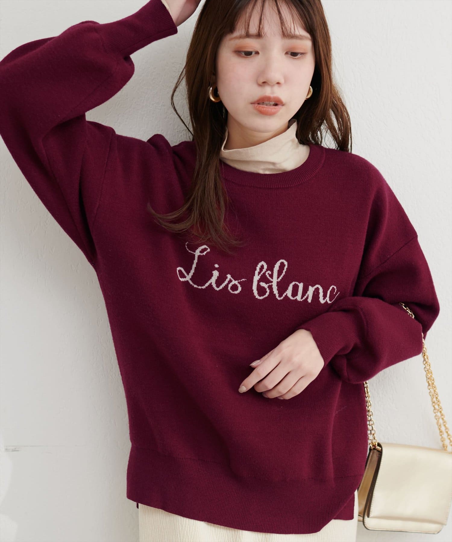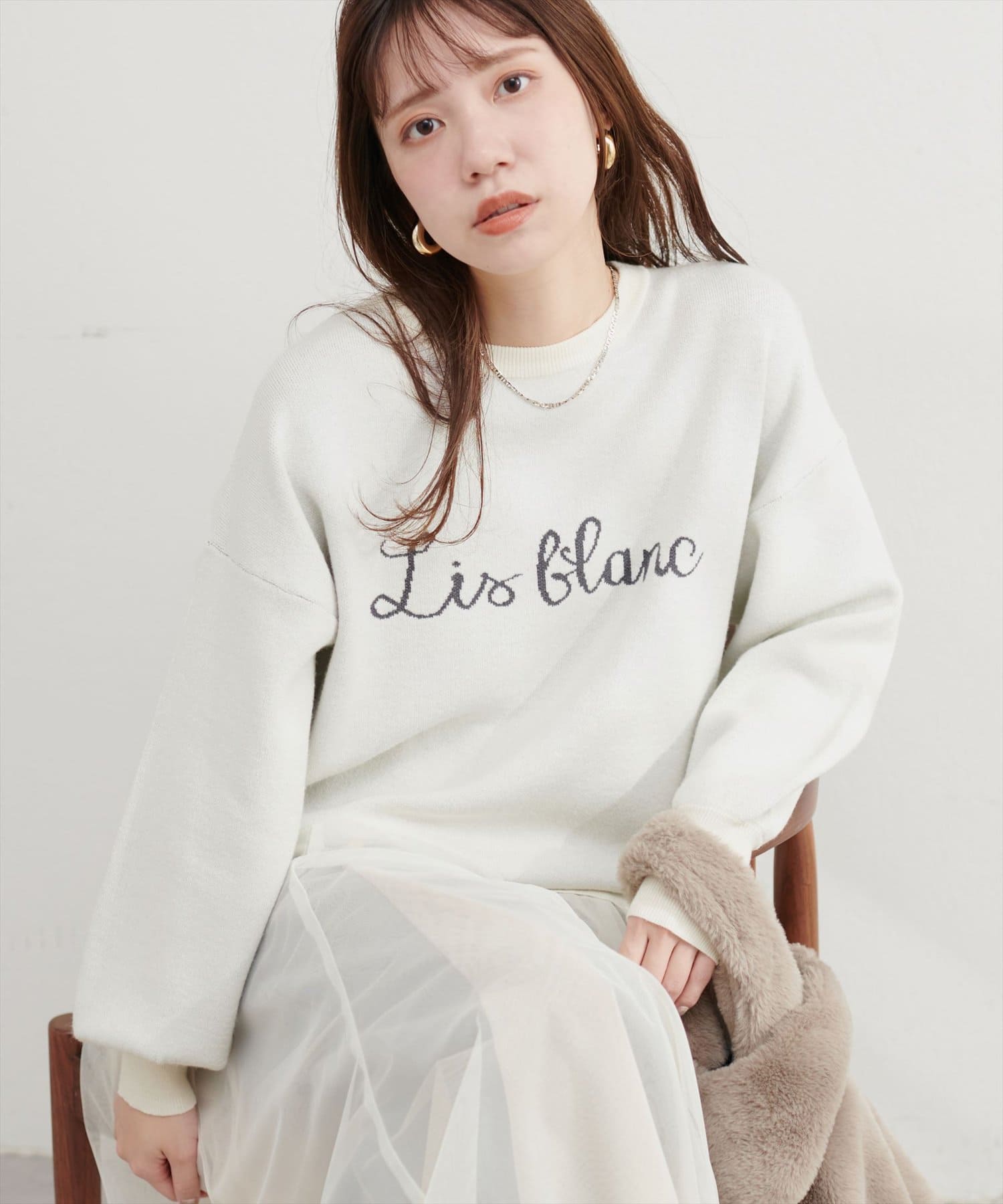 もちもち柔らかなシンプルニットに編み込まれたロゴがカジュアル見せしてくれます。