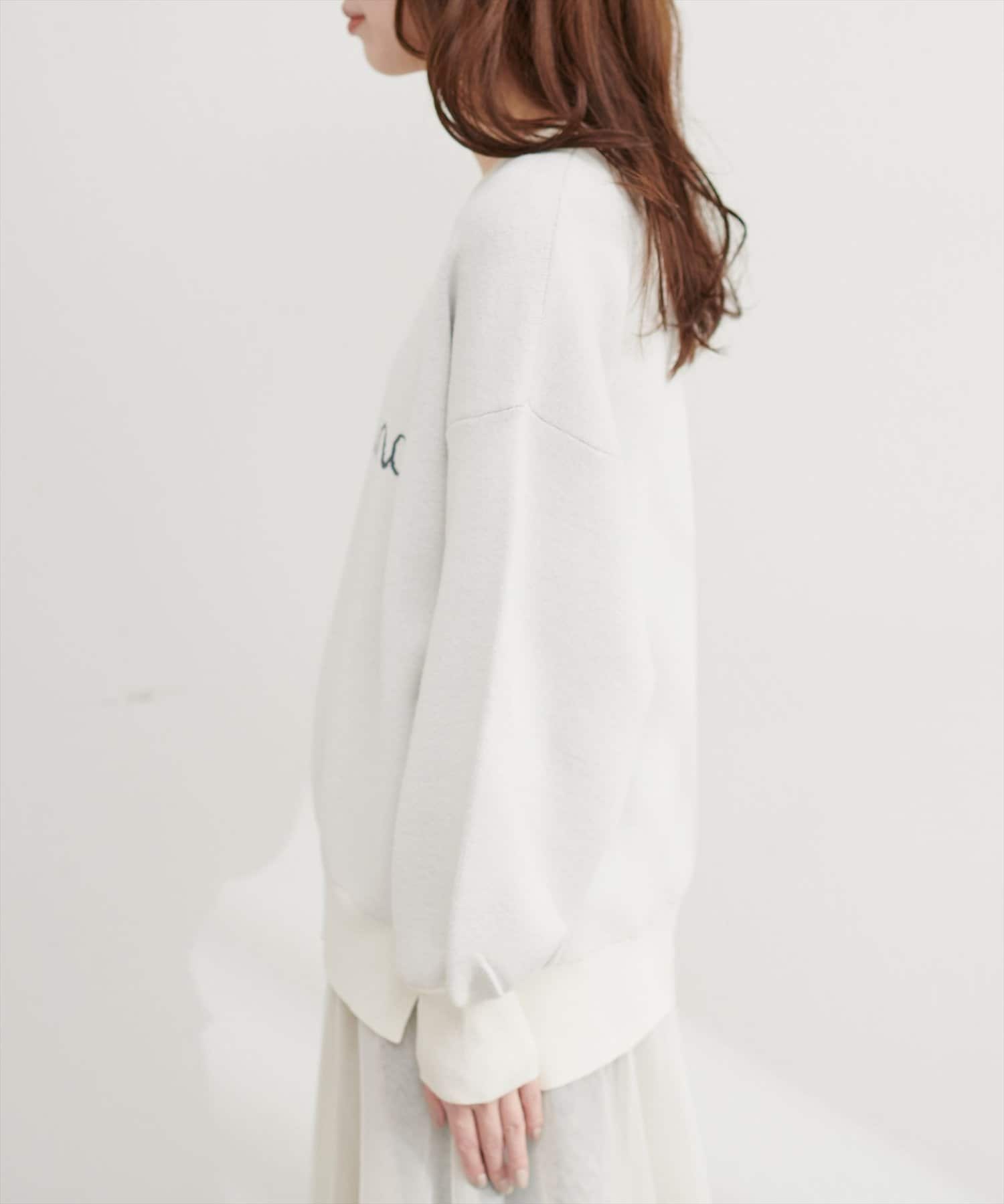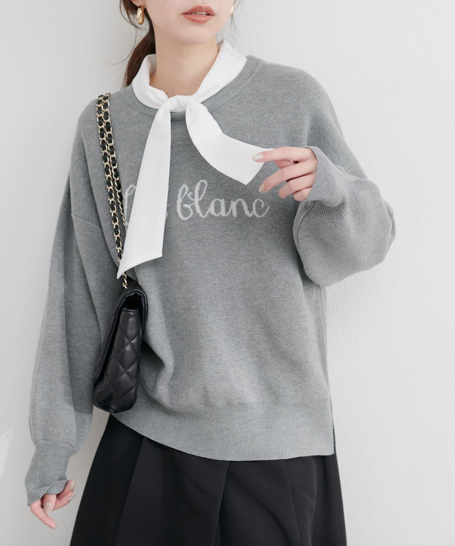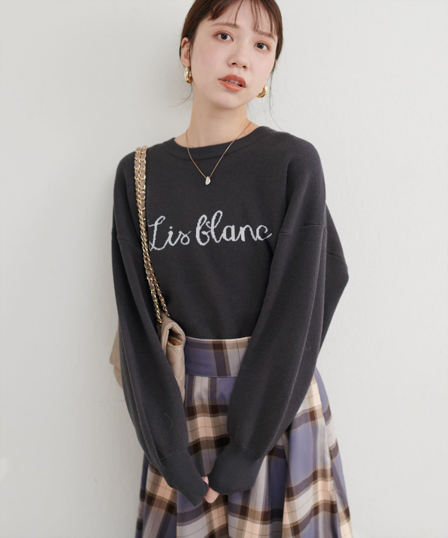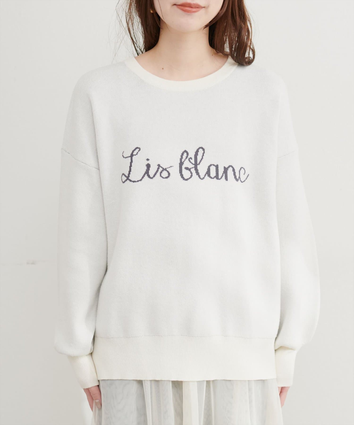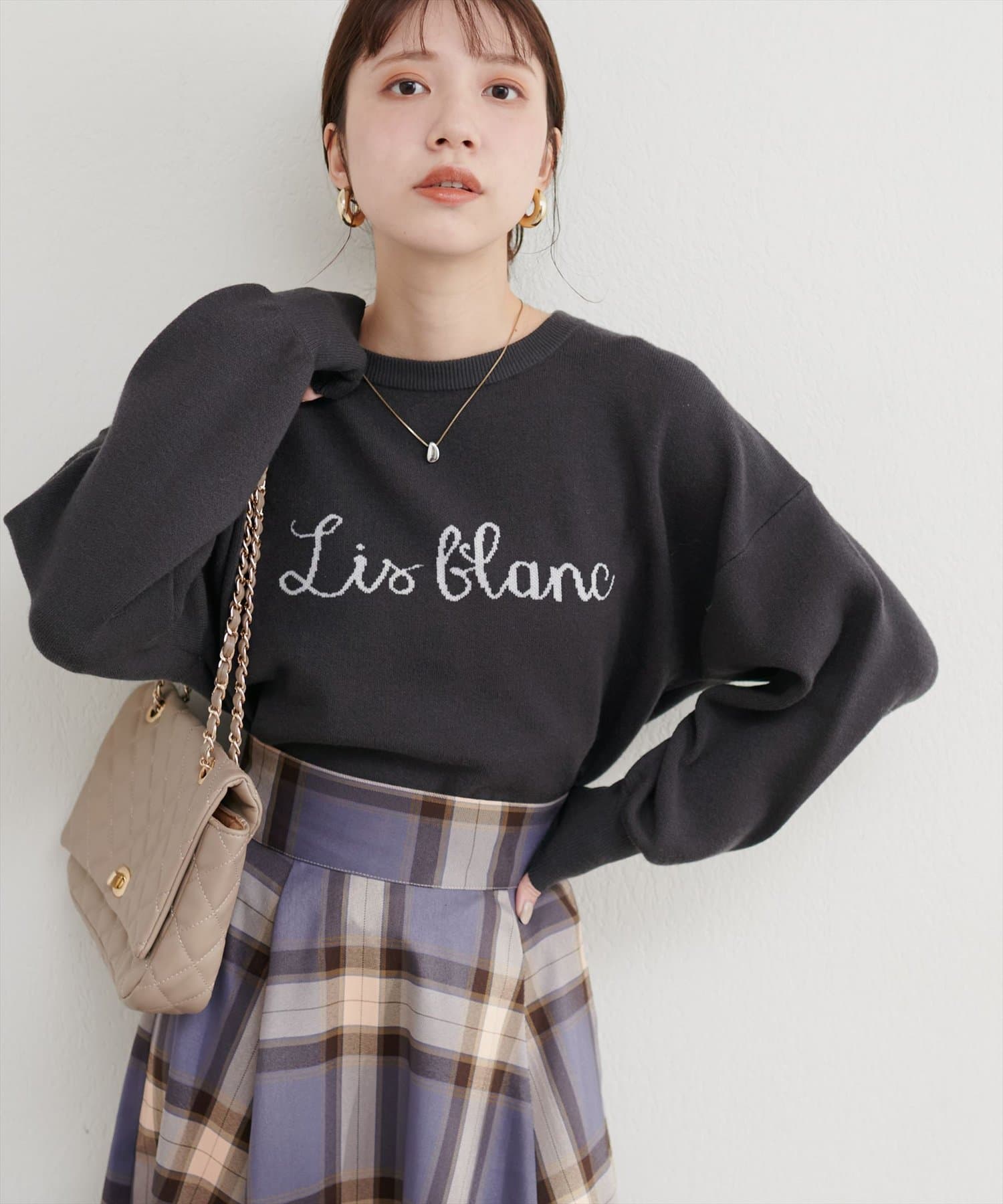 もちもち柔らかなシンプルニットに編み込まれたロゴがカジュアル見せしてくれます。