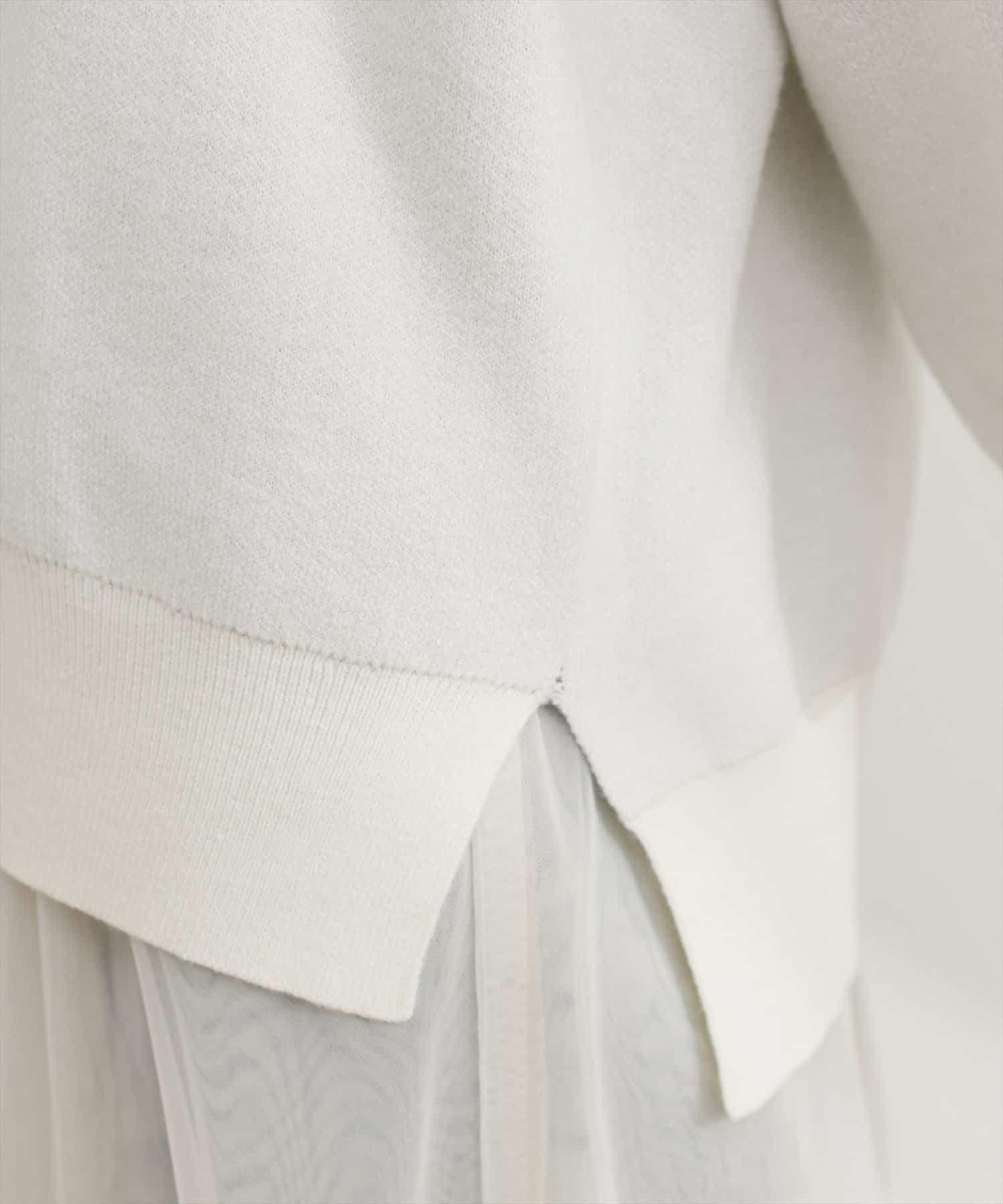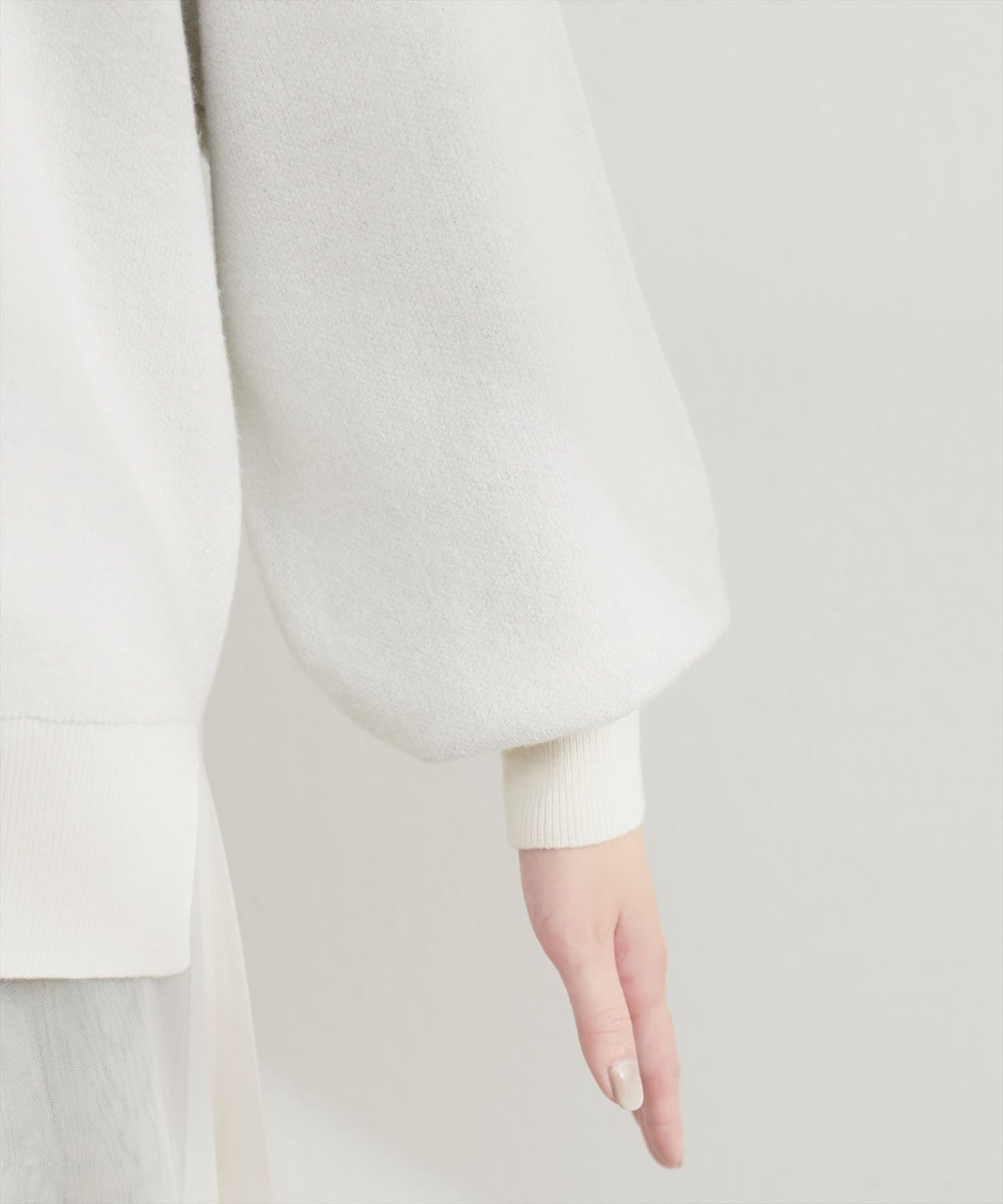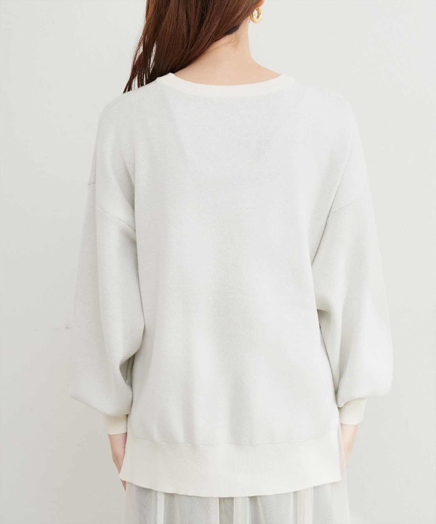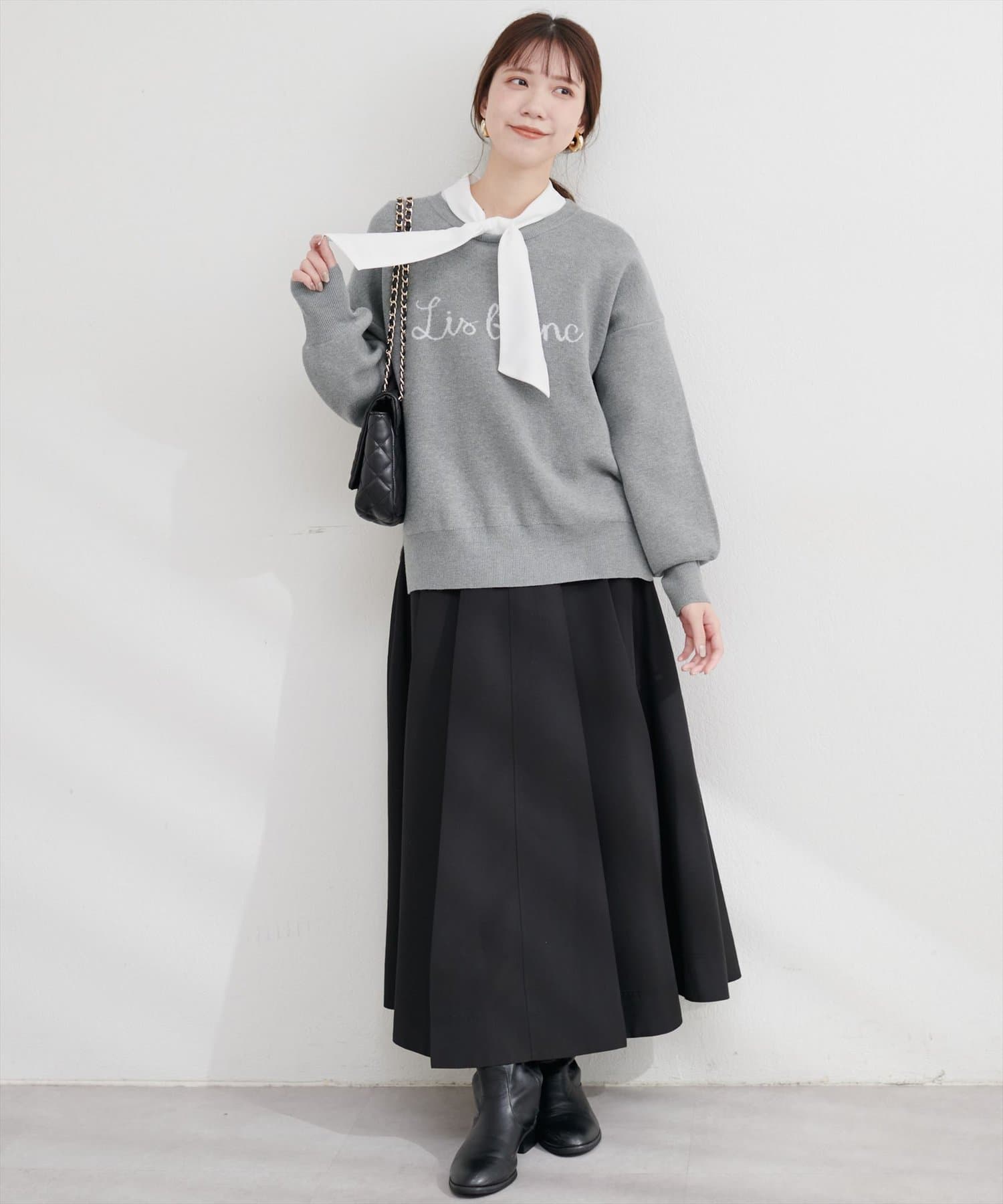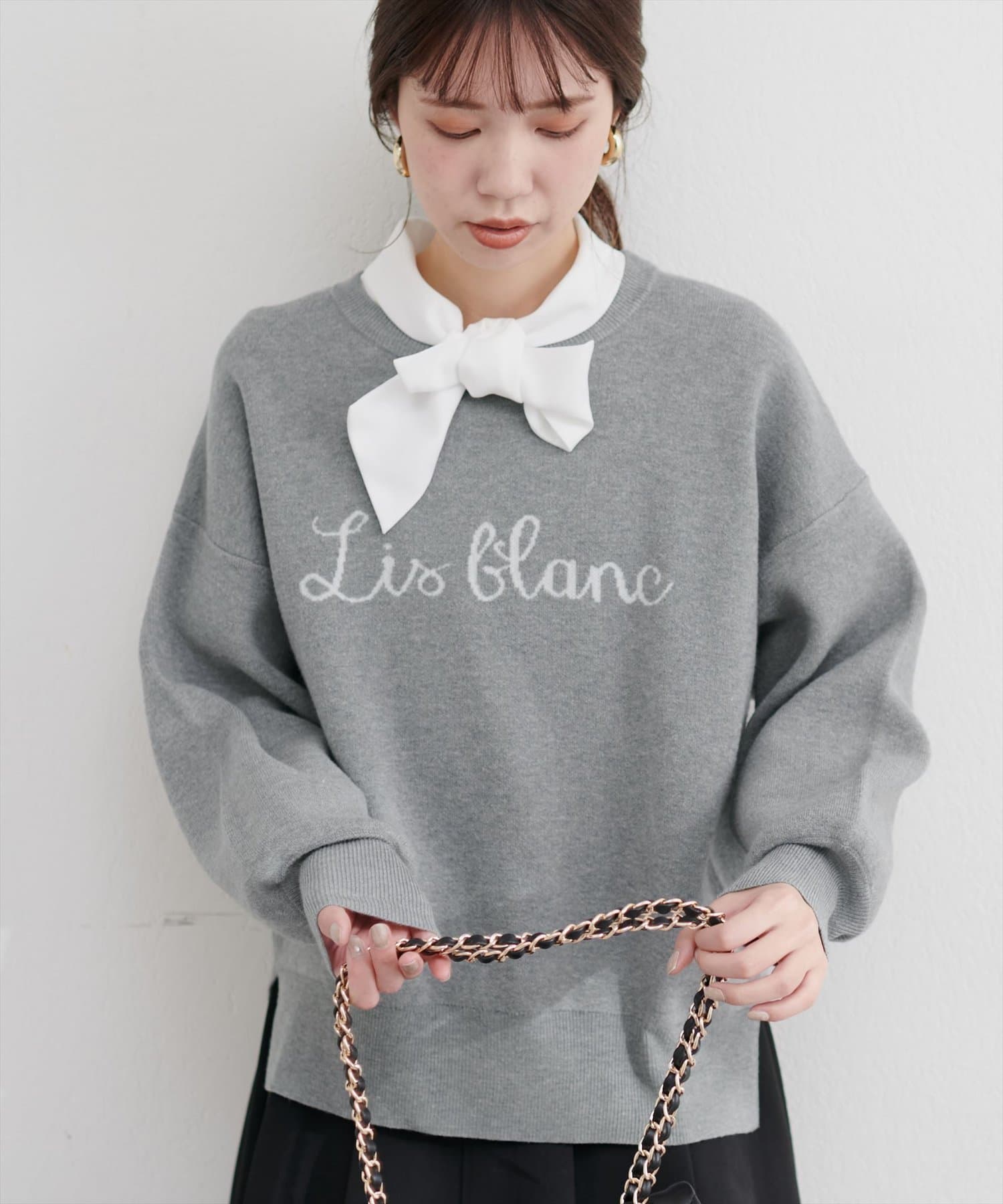 もちもち柔らかなシンプルニットに編み込まれたロゴがカジュアル見せしてくれます。