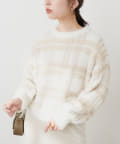 • natural couture(ナチュラルクチュール) ラインチェックフェザーニット