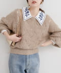 やや肩を落としたドロップショルダーデザインと、ゆとりのあるネックラインが女性らしさを引き立ててくれます。