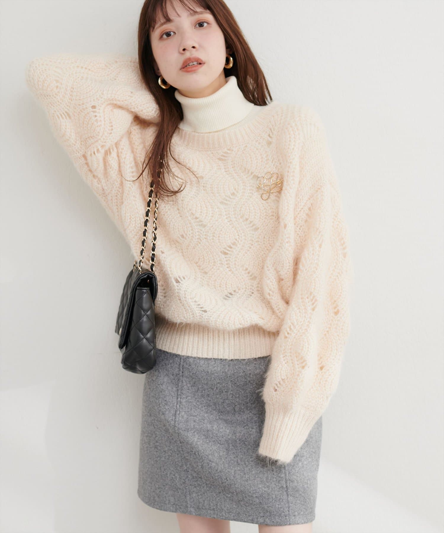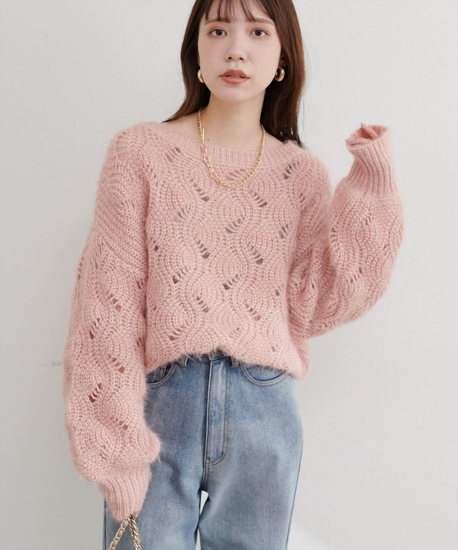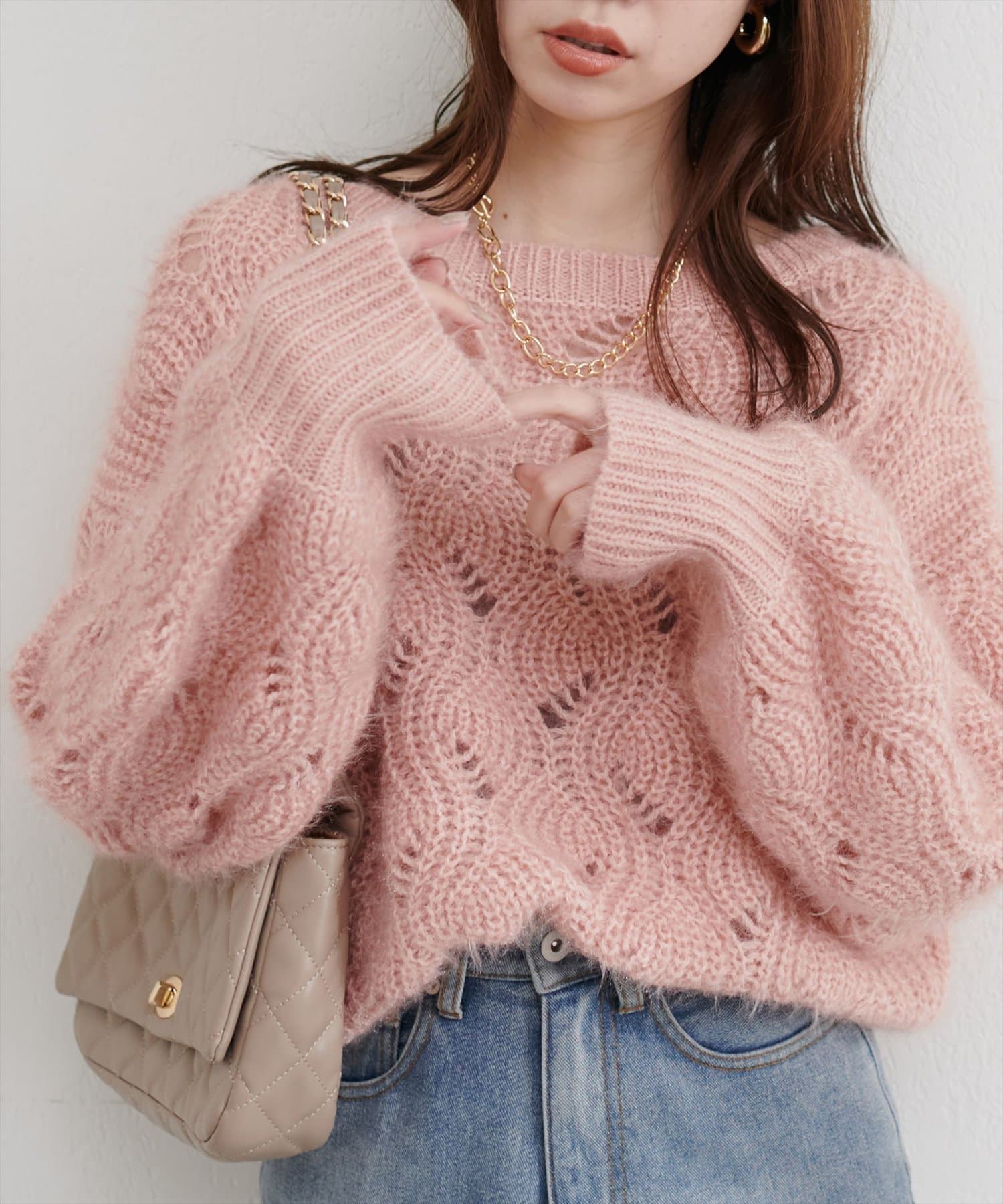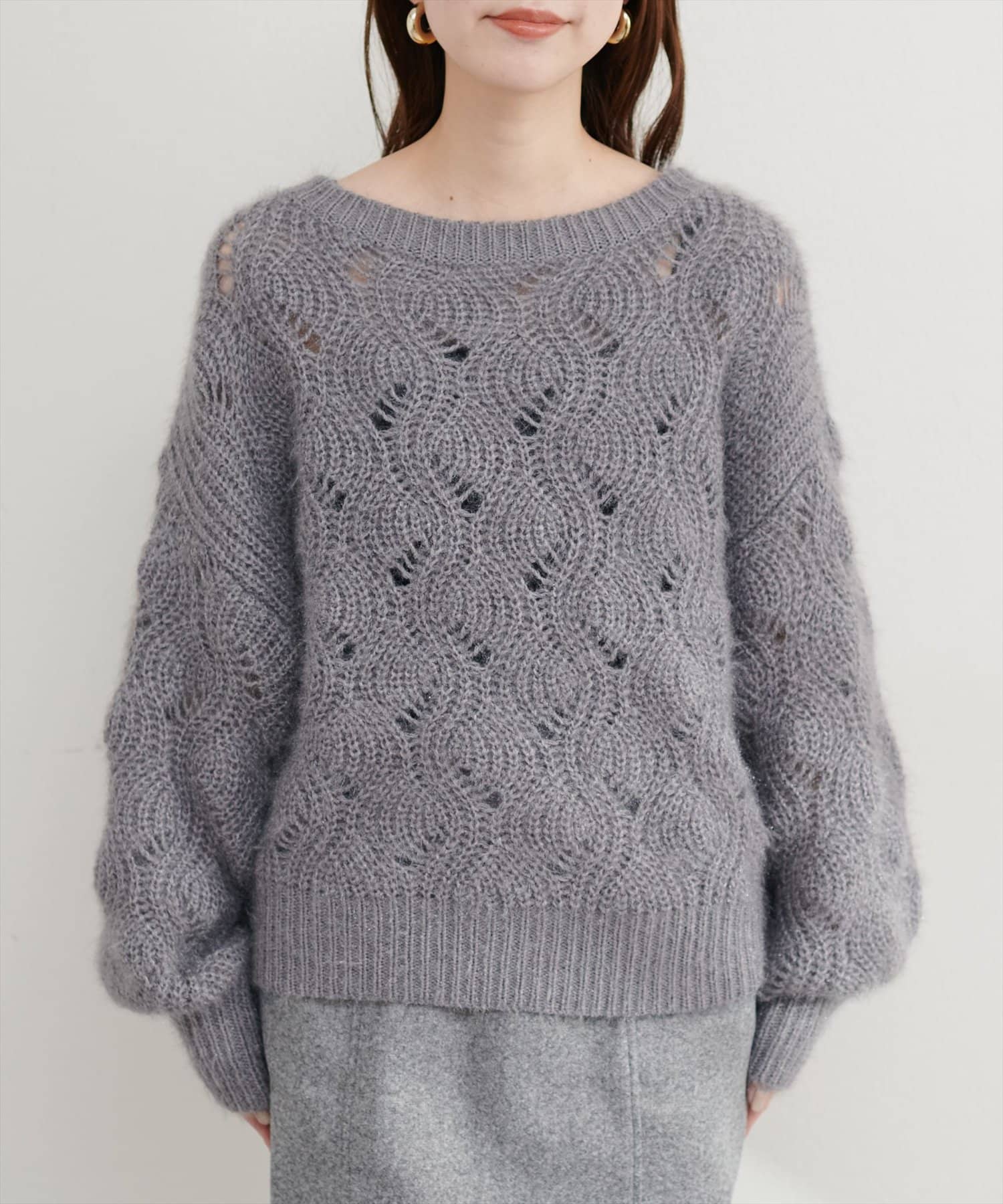大ぶりのケーブル柄と透かし編みのふわふわ感がシーズンムードを盛り上げ、冬のワードローブに欠かせない1着です。