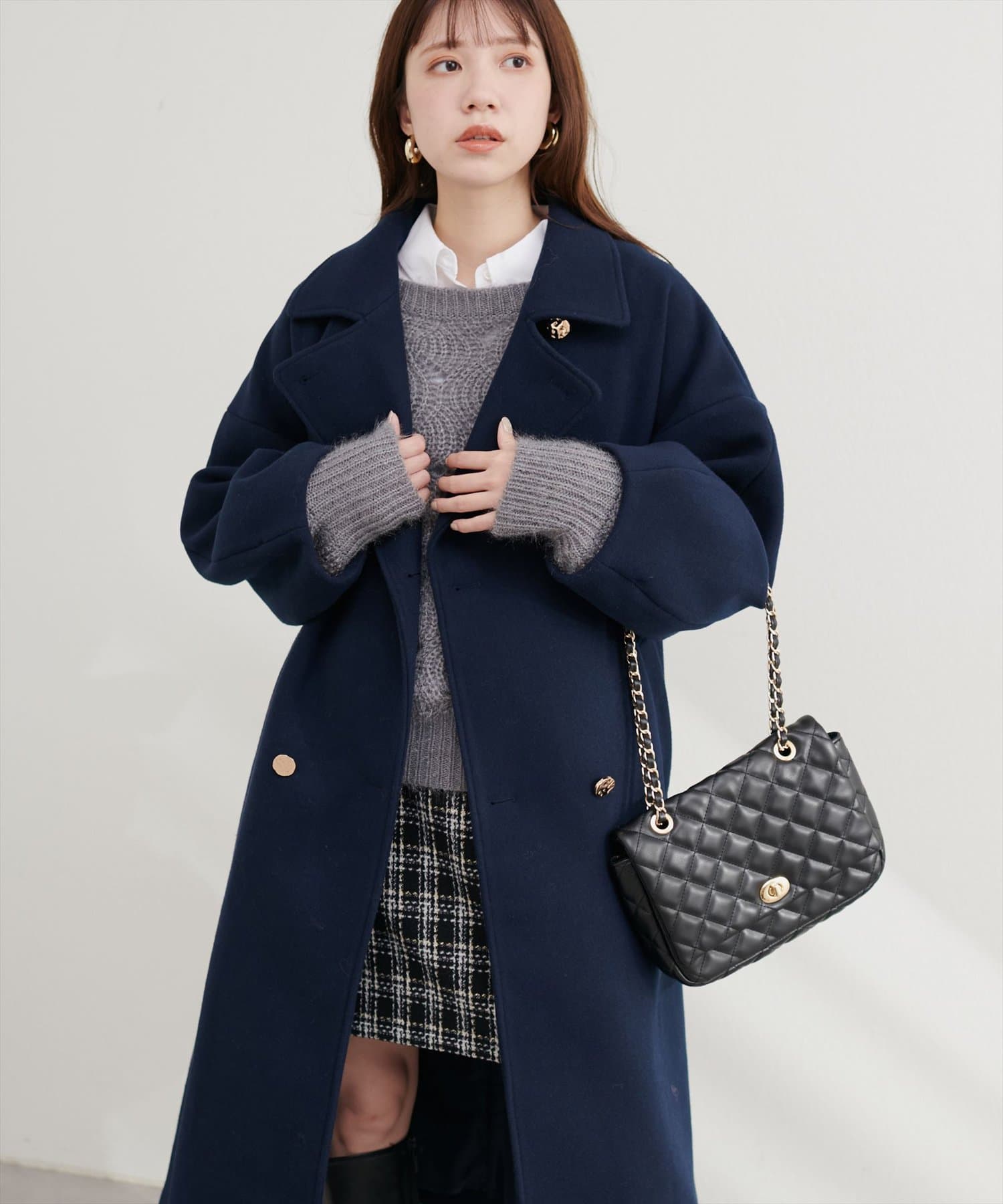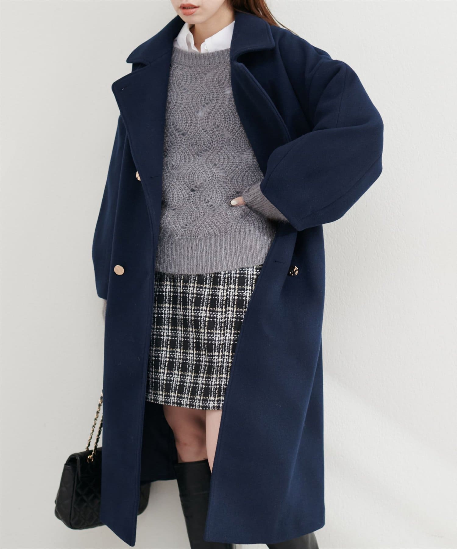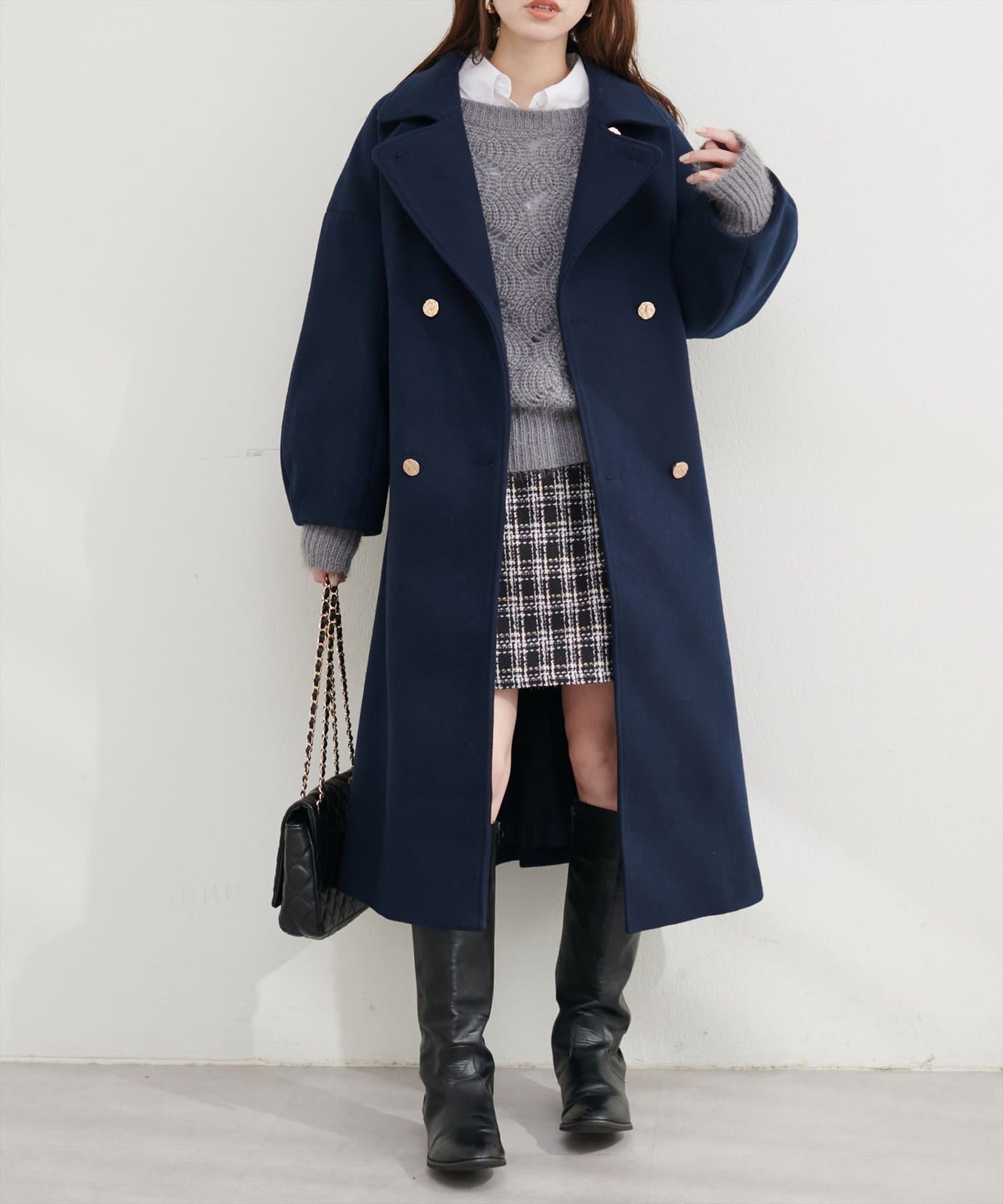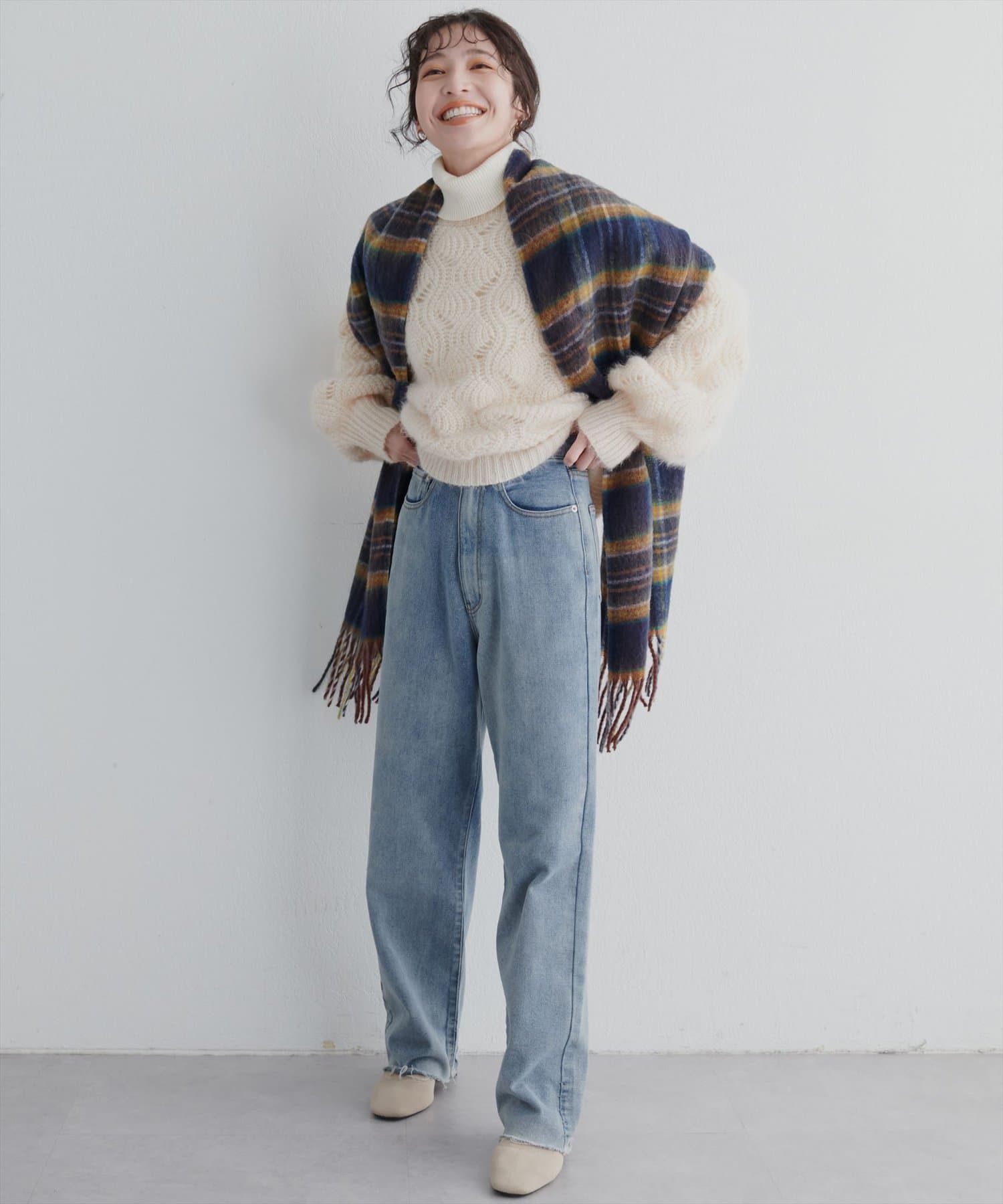ネックラインが広めなので、真冬はハイネックやタートルネックのトップスをレイヤードするのがおすすめです。