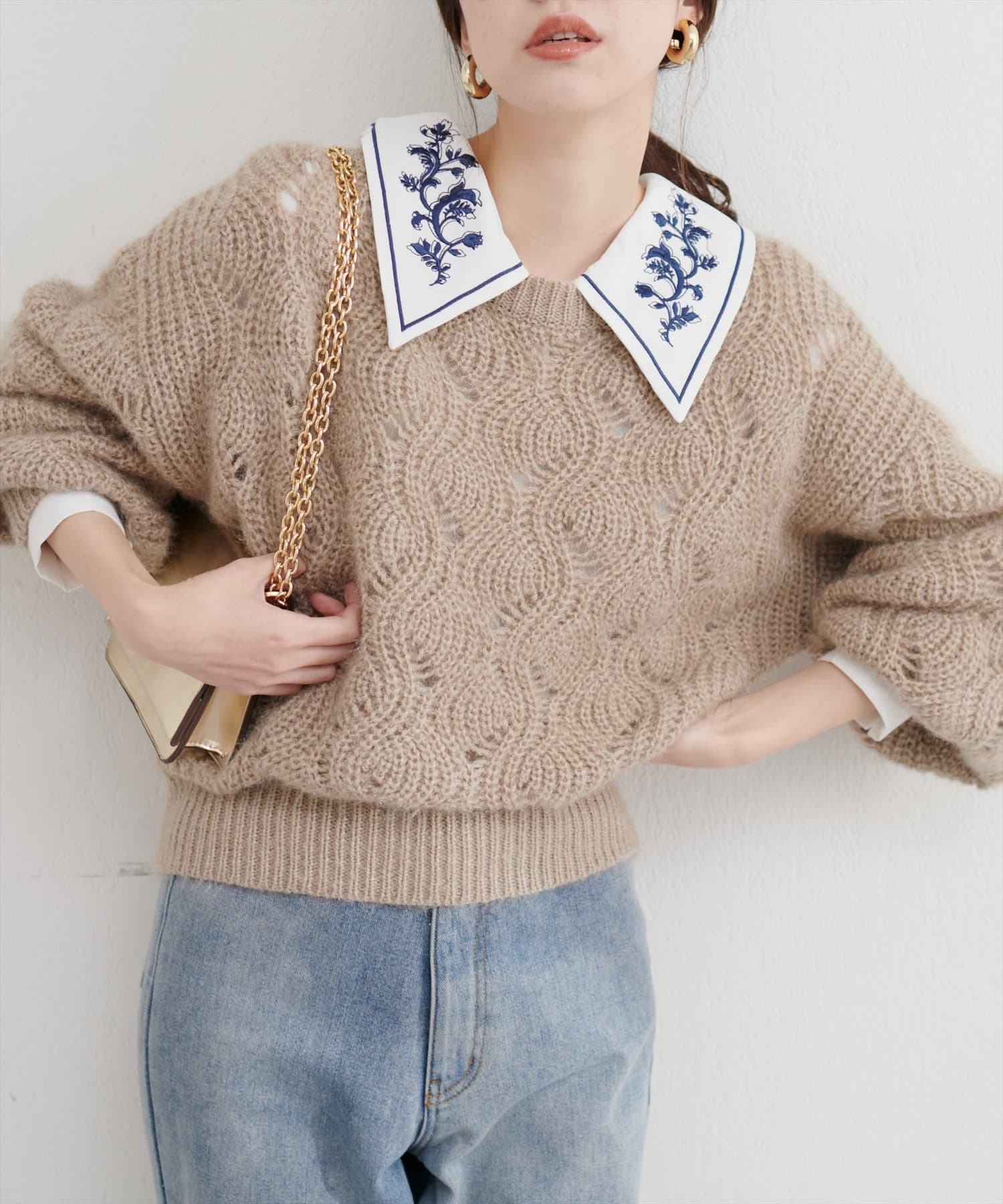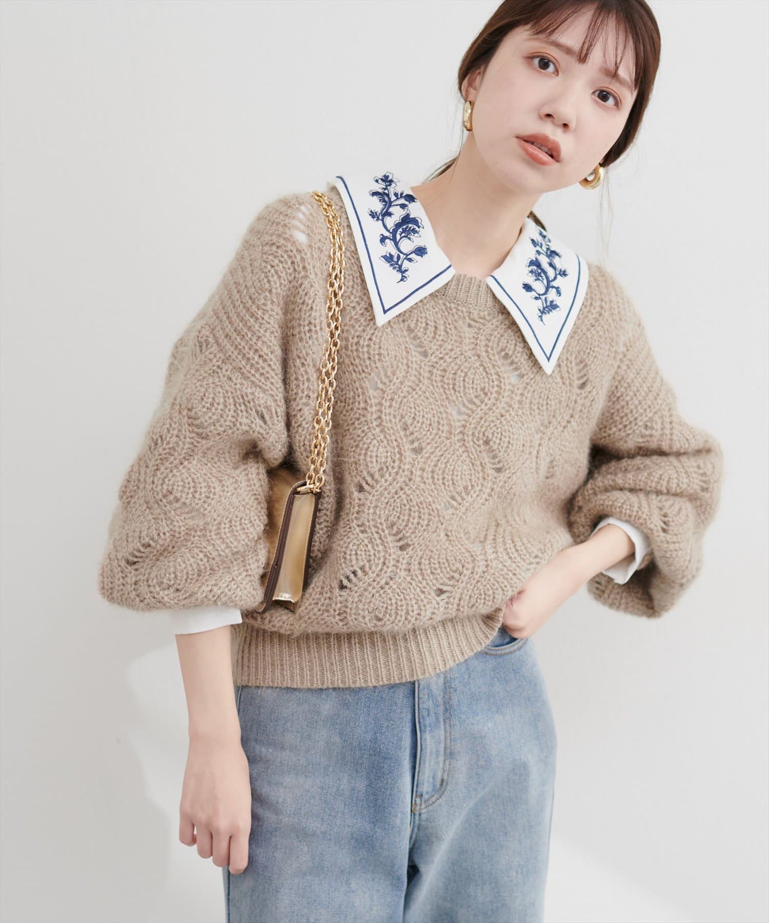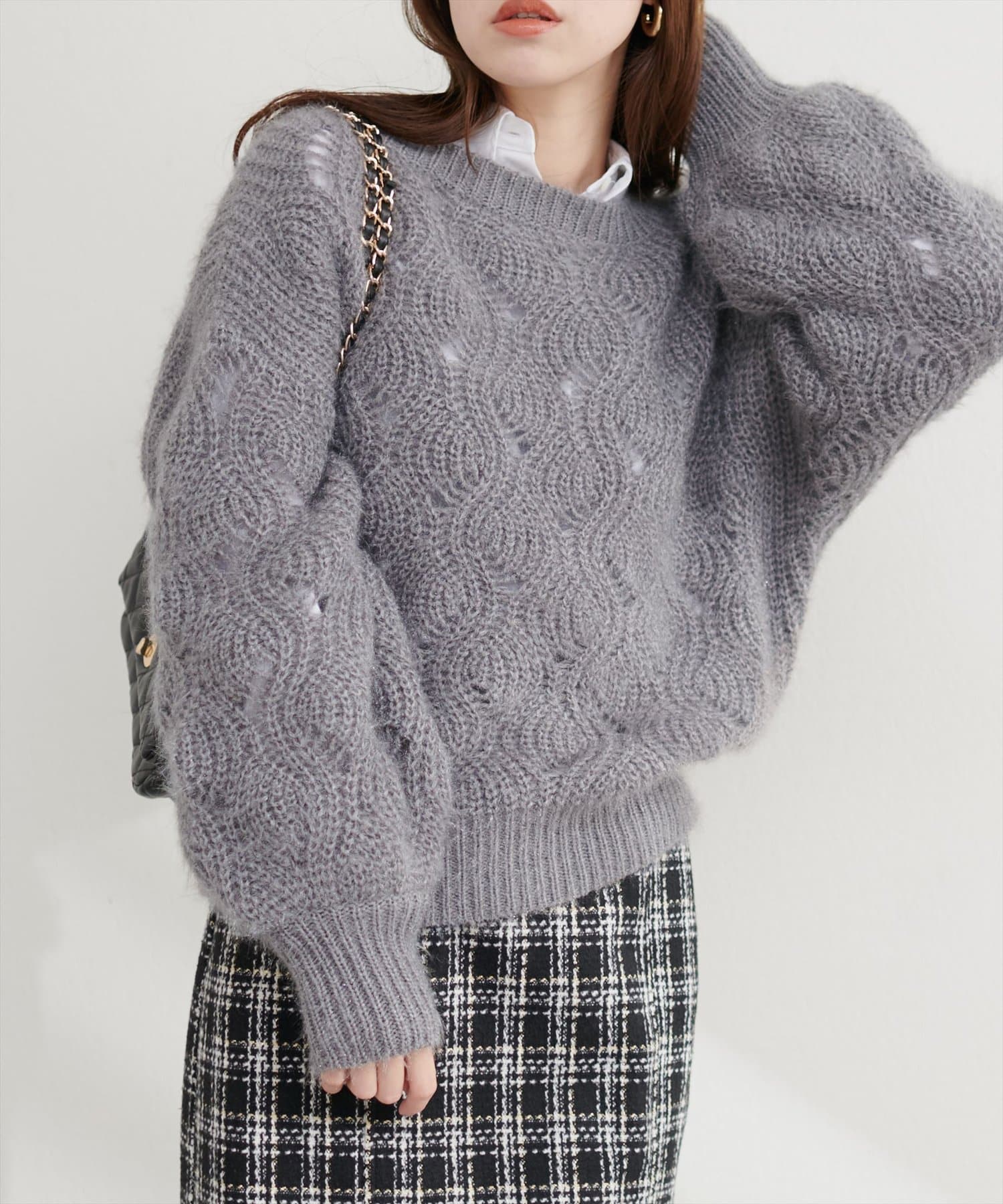 モヘアタッチのふわっとした起毛感と柔らかな肌触りが魅力のニット。