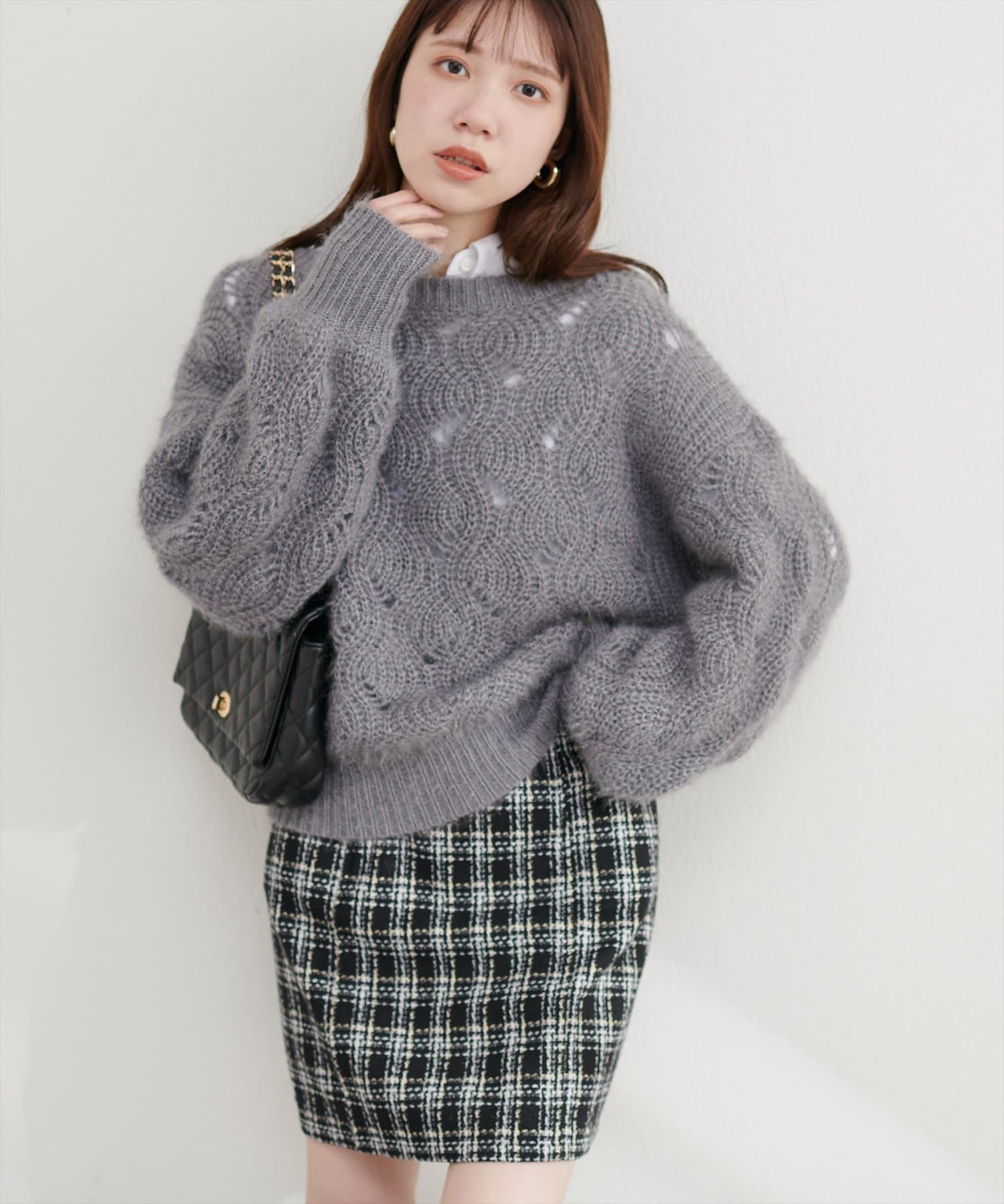 生地感:モヘアタッチのふわっとした起毛感のあるニット生地