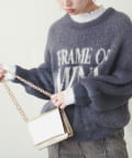 フロントの大きめロゴがポイントのフェザーヤーンニット。