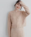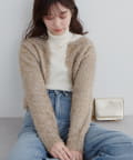 存在感のあるラメフィルムフェザー素材のコンパクトカーディガン。