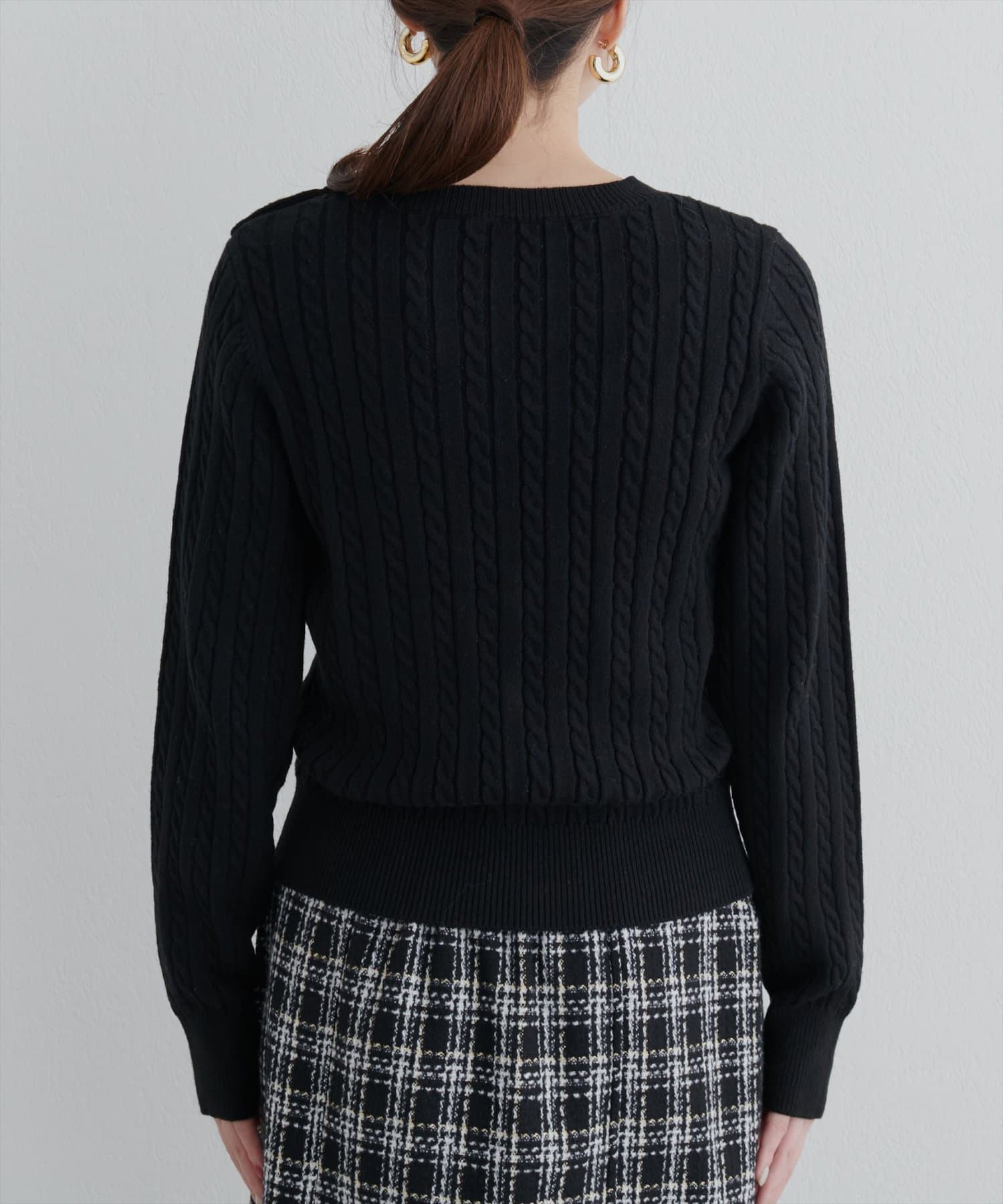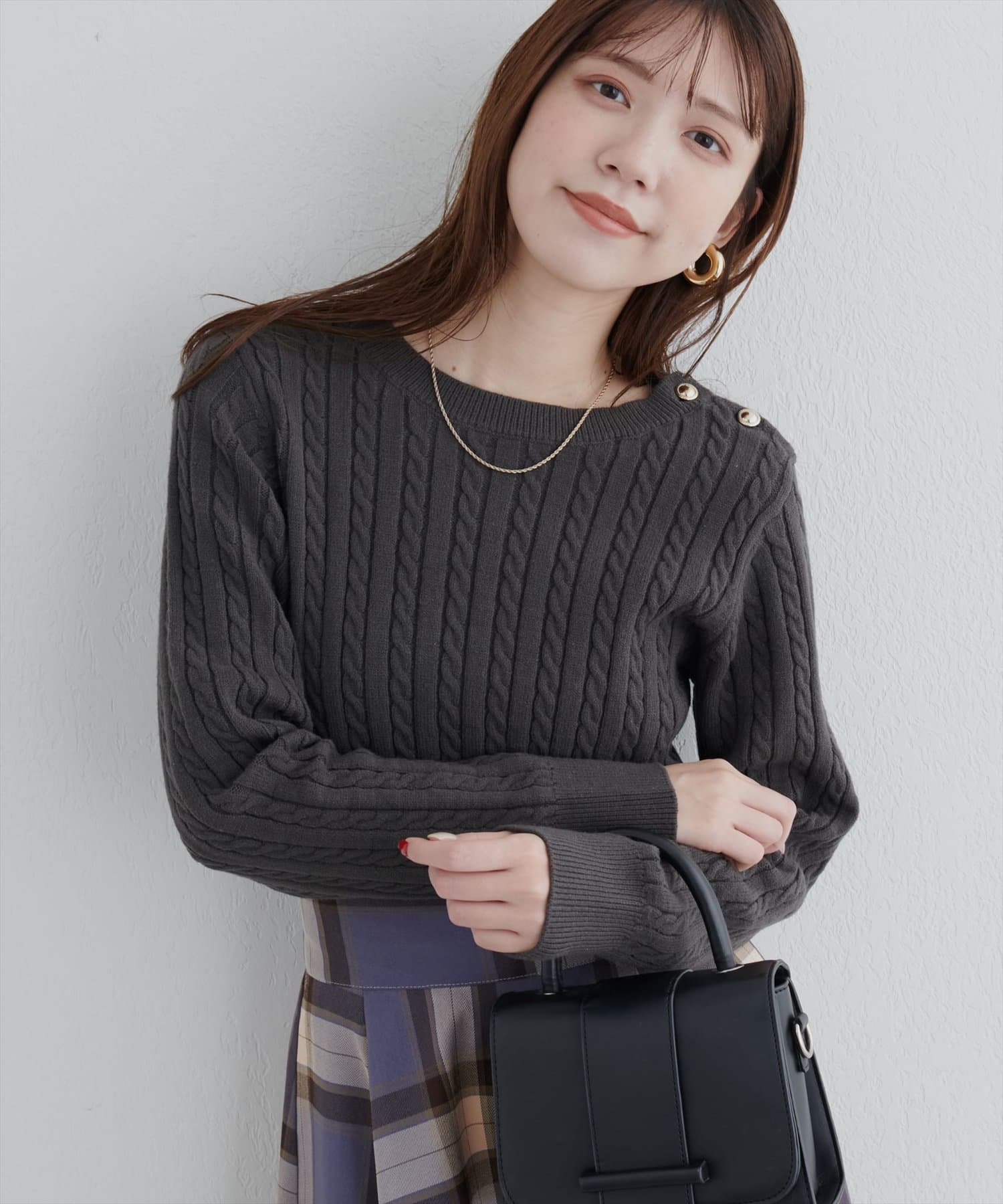 これからの季節にぴったりなケーブル編みデザインがレディーな雰囲気のニットです。