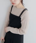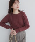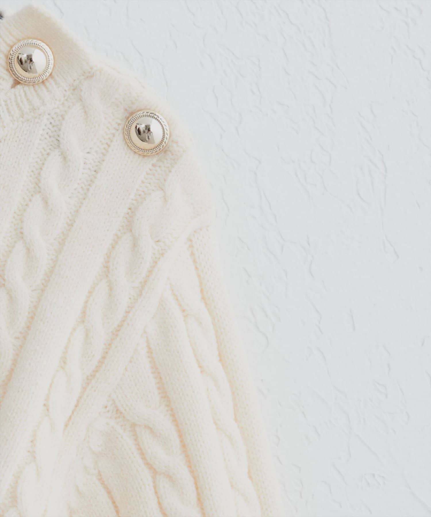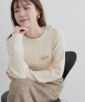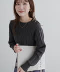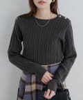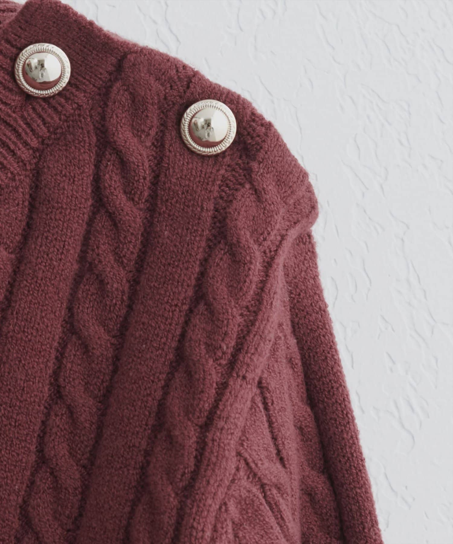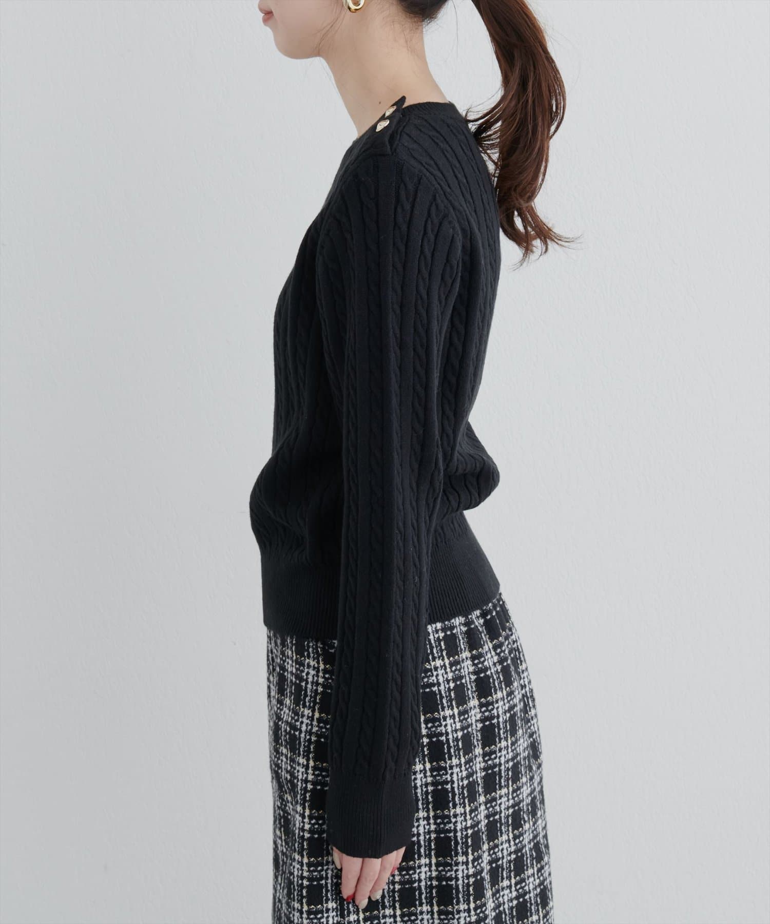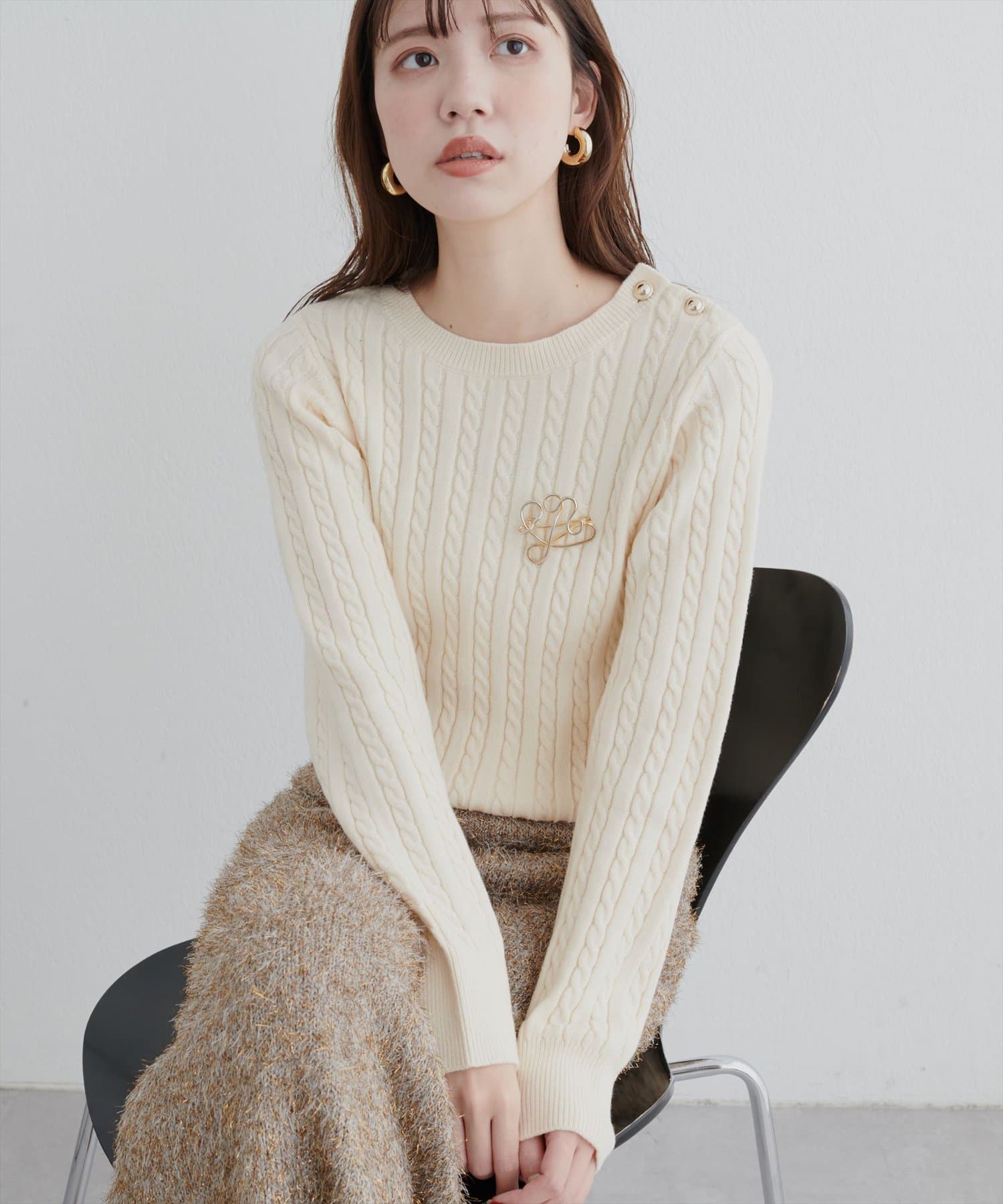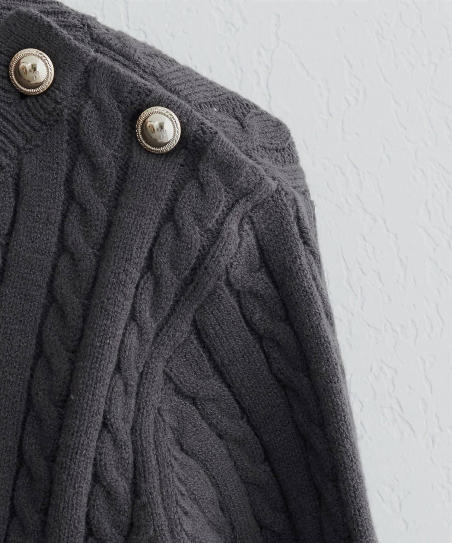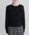 細ケーブル肩釦デザインニット