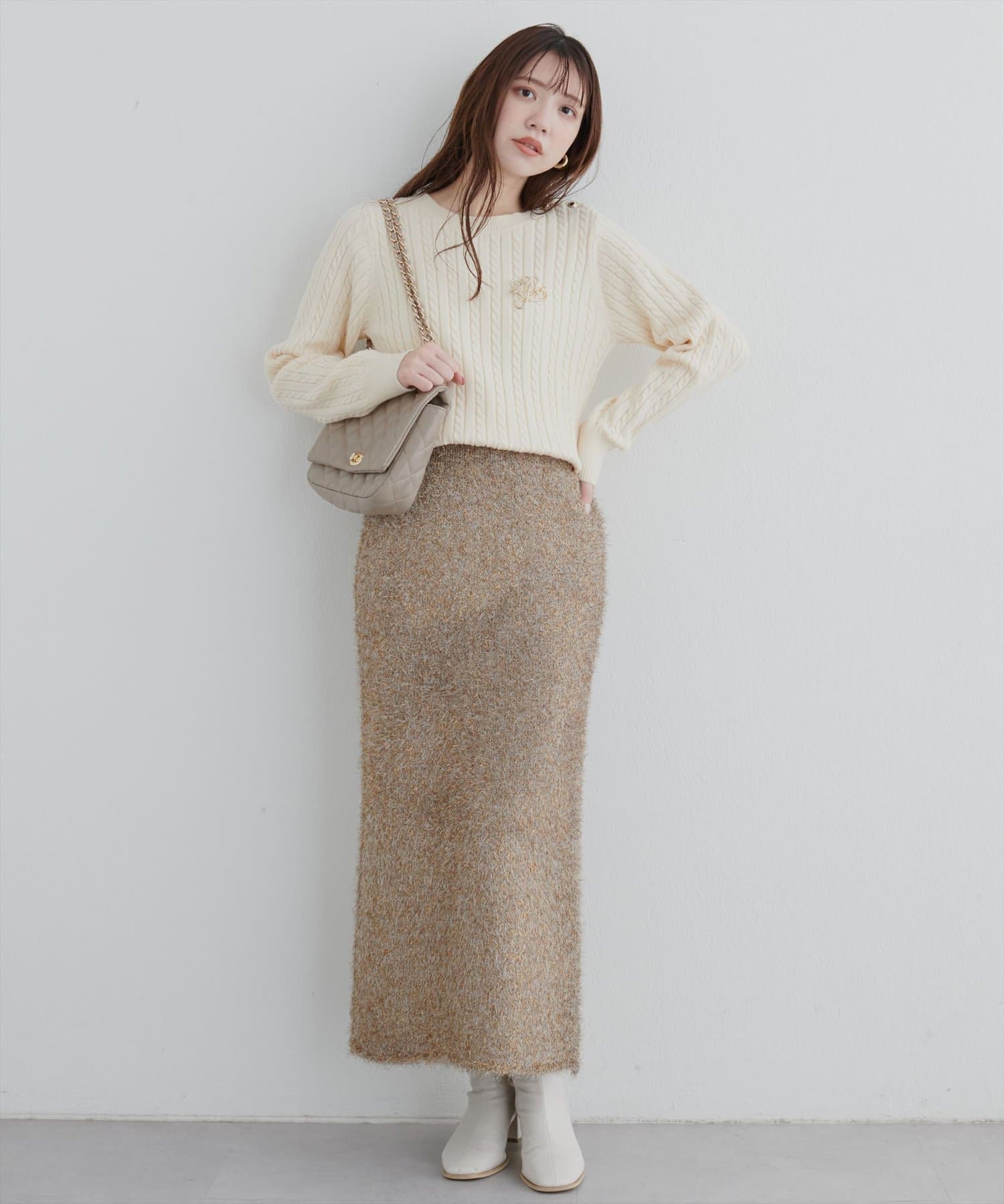これからの季節にぴったりなケーブル編みデザインがレディーな雰囲気のニットです。