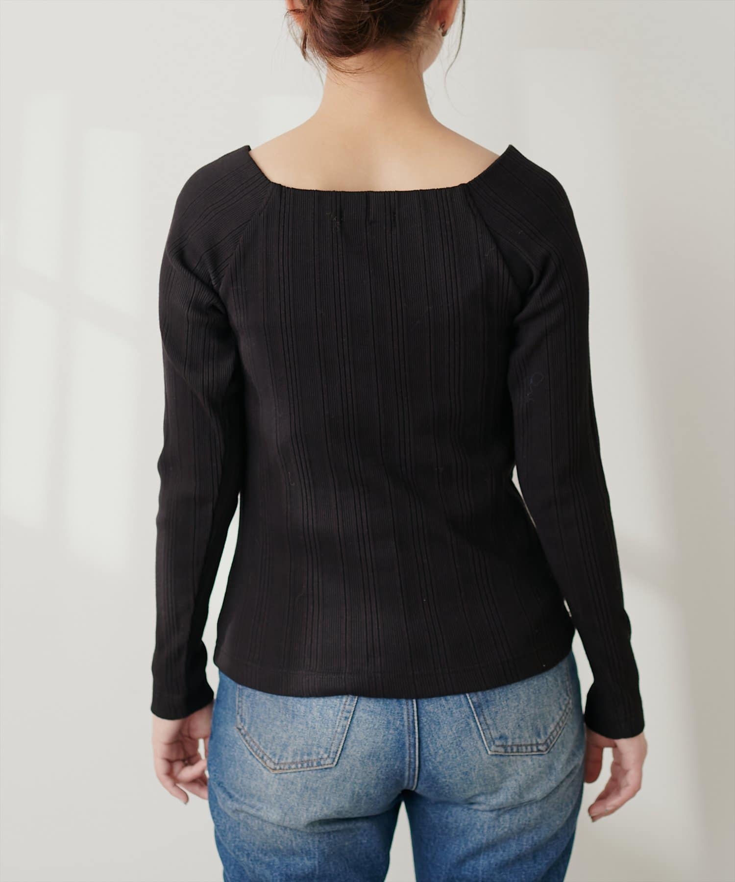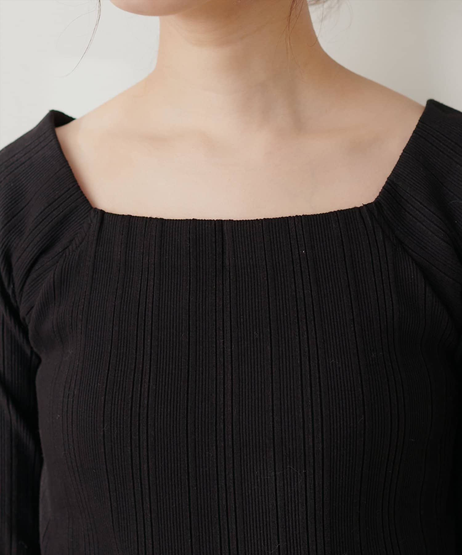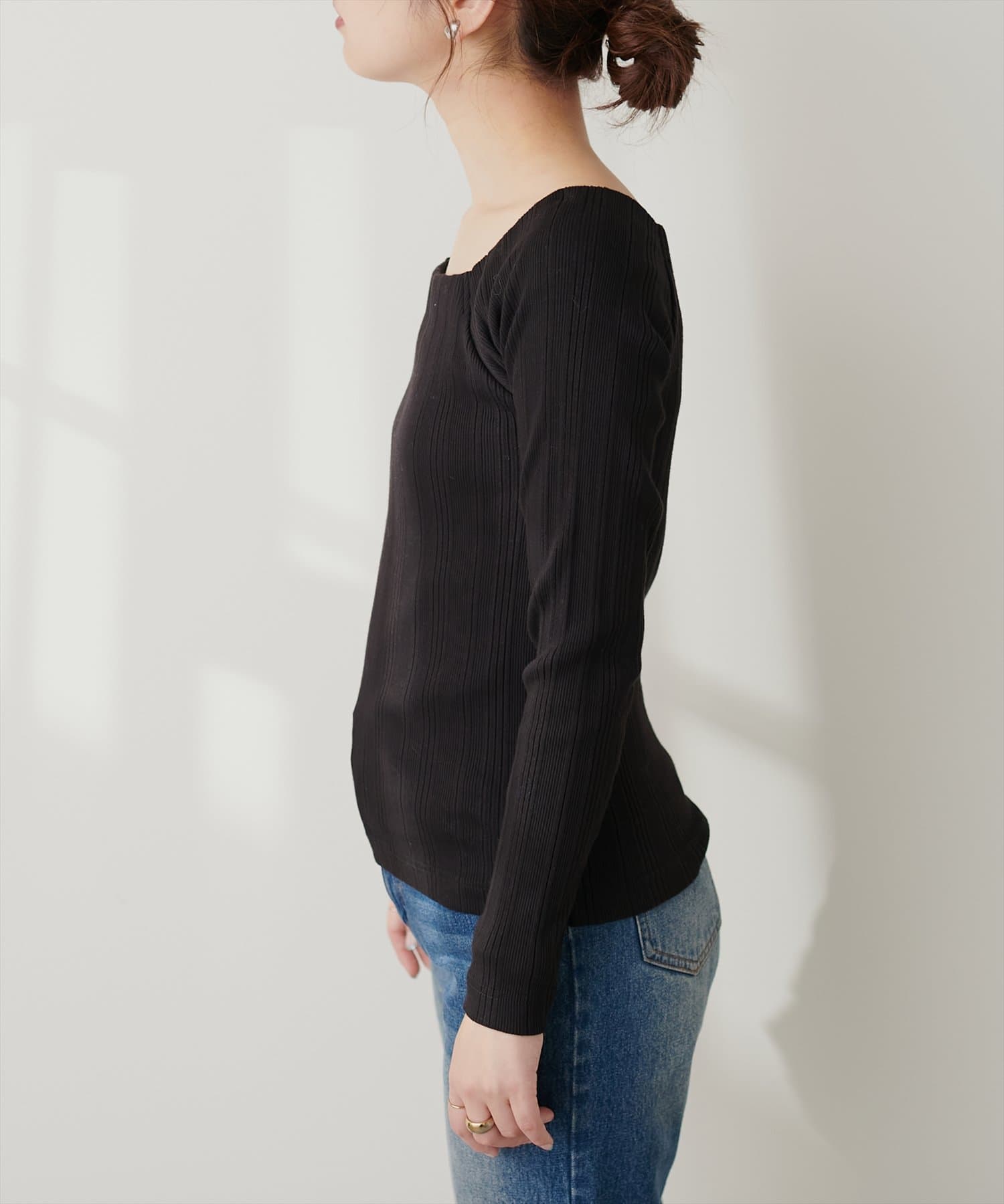 縦に凸凹の筋が入ったストライプ模様のリブカットソー。