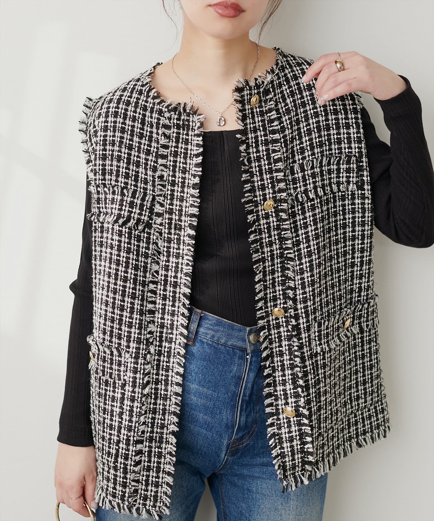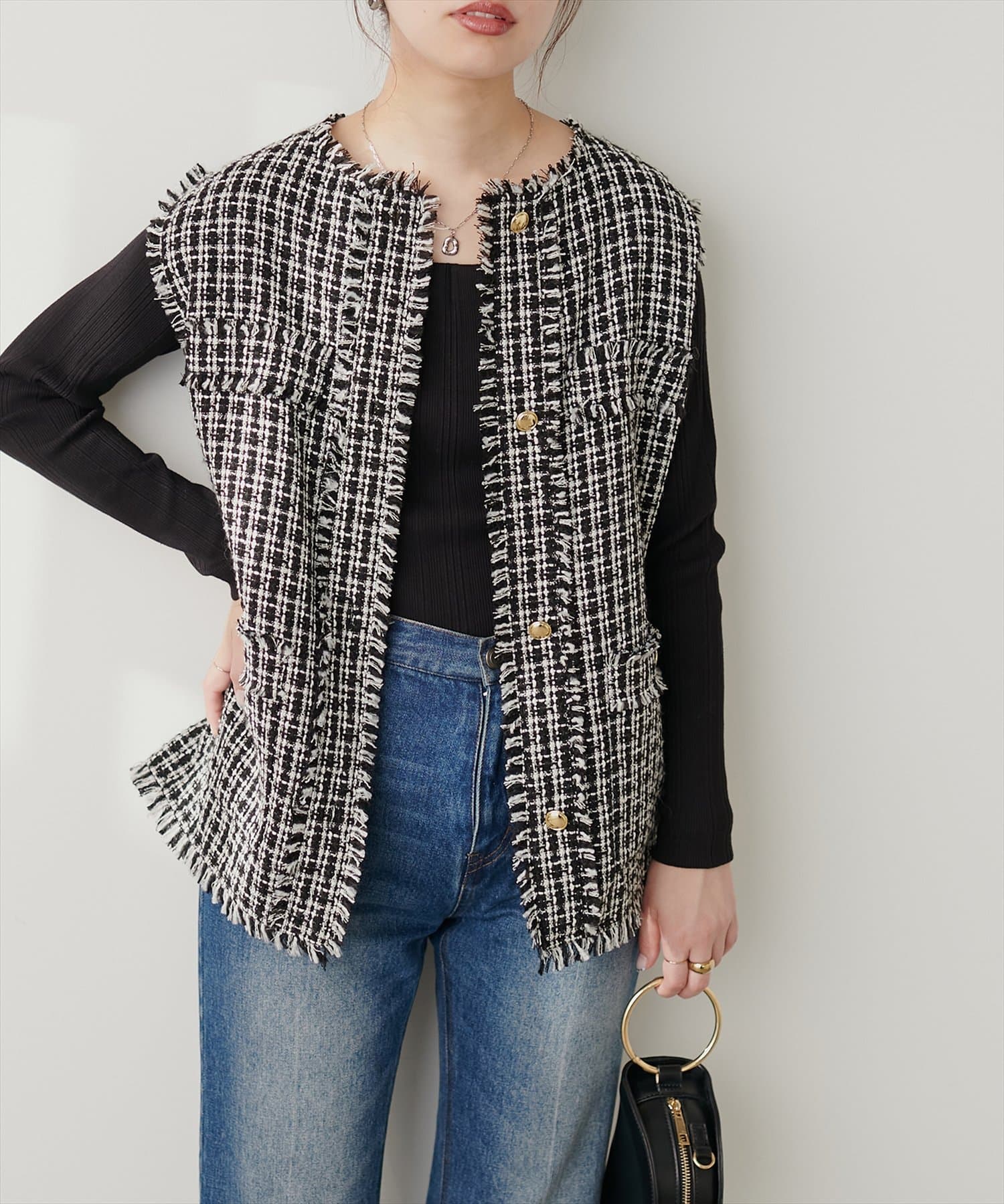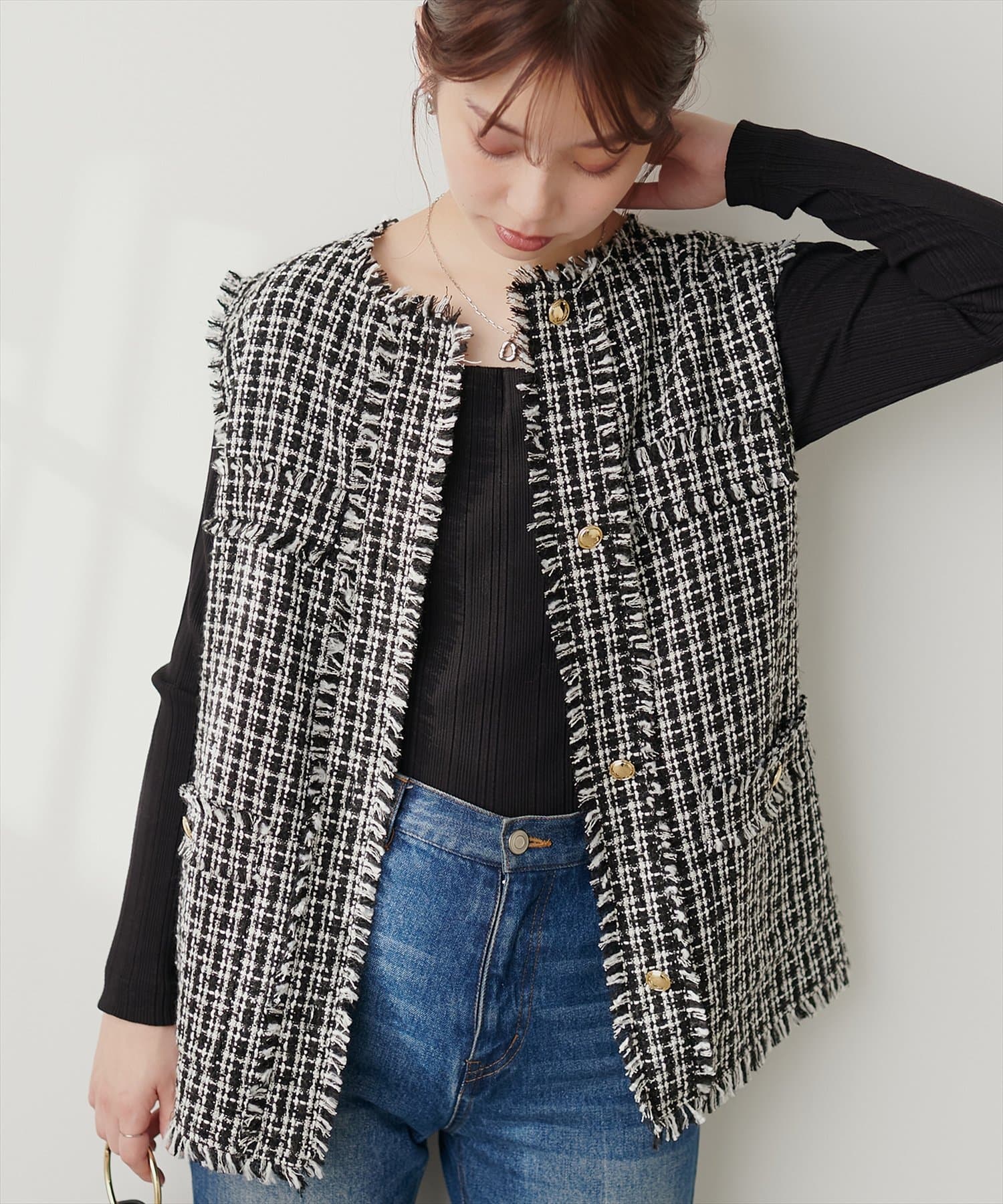 デコルテのヘルシーな肌見せが抜け感のあるレディーな着こなしでお楽しみ頂けます!