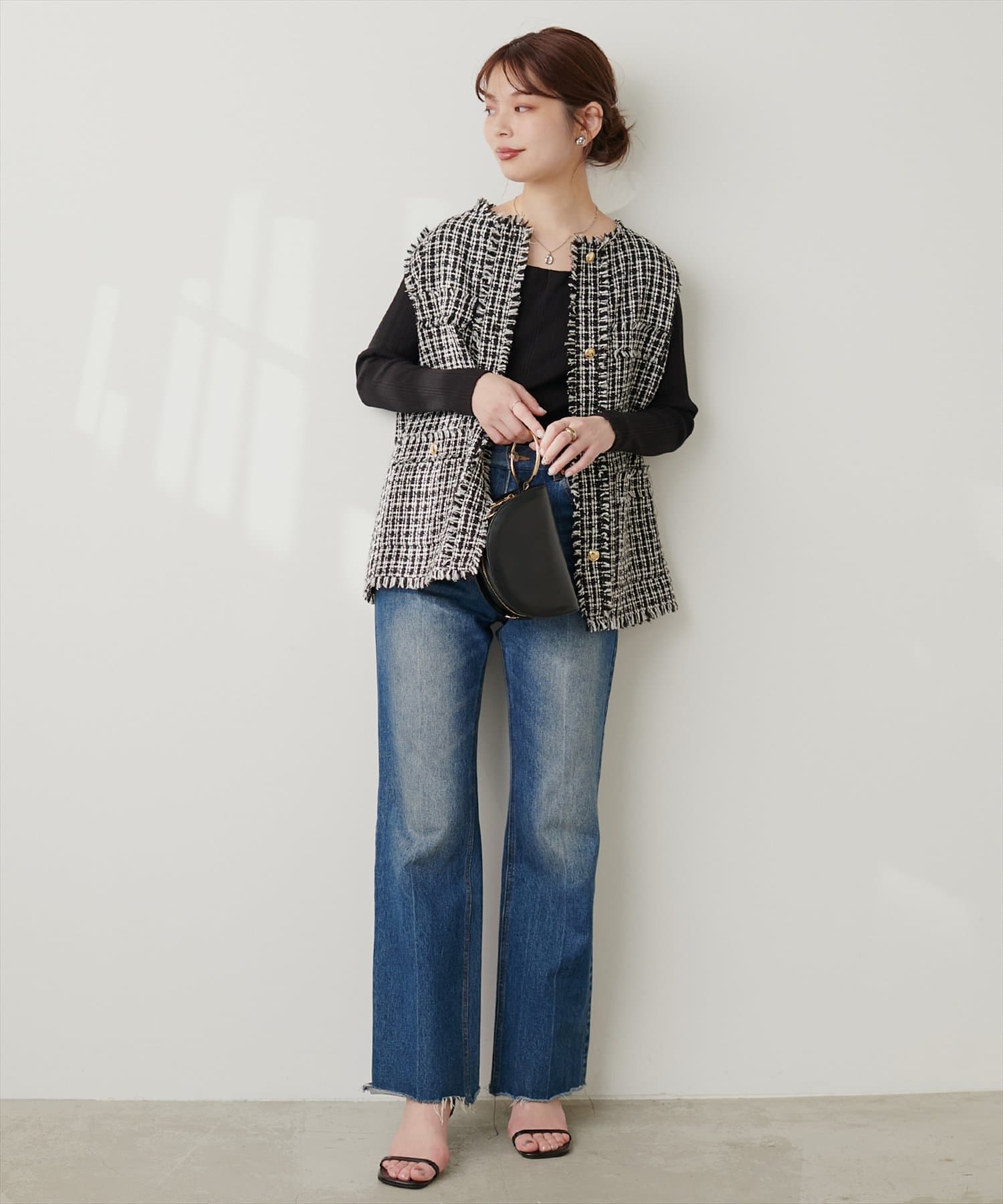 デニムを合わせて頂くと親しみのあるすっきりしたスタイリングになりますし、