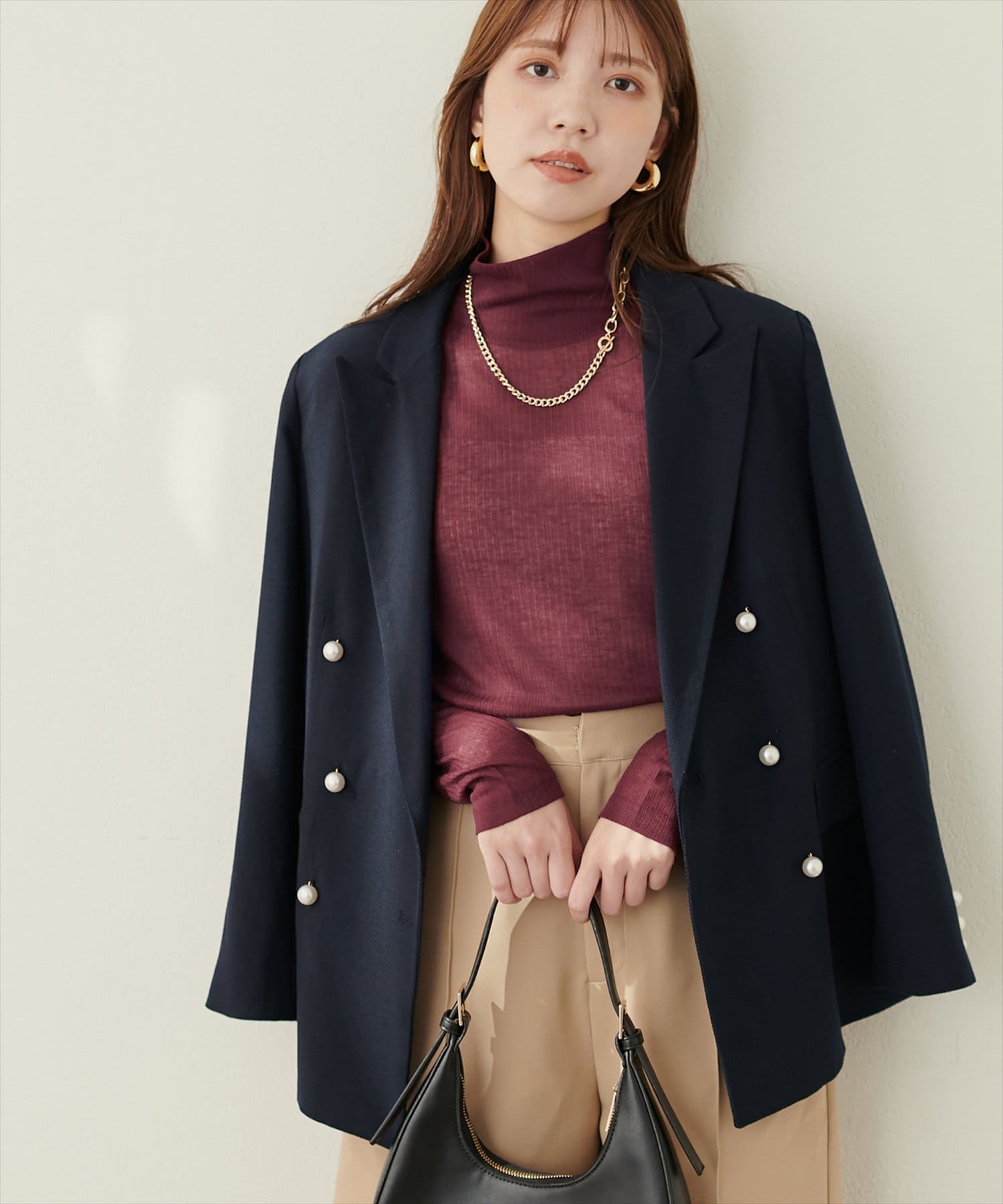 シンプルなデザインで洗練された印象を与え、幅広いシーンに着回せるので一枚持っていると便利です。