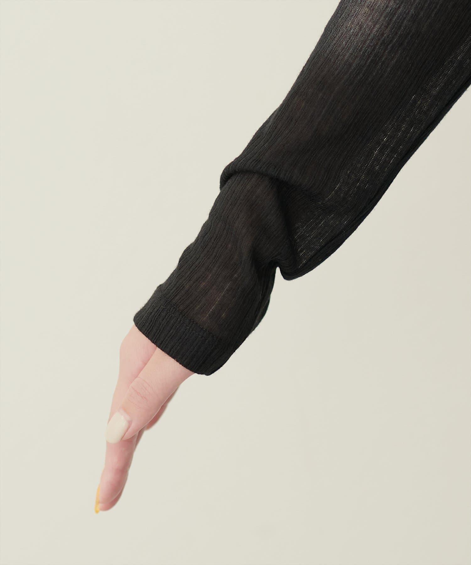 嫌な透け感ではないので、普段シアーのトップスを選ばない方にもおすすめです。